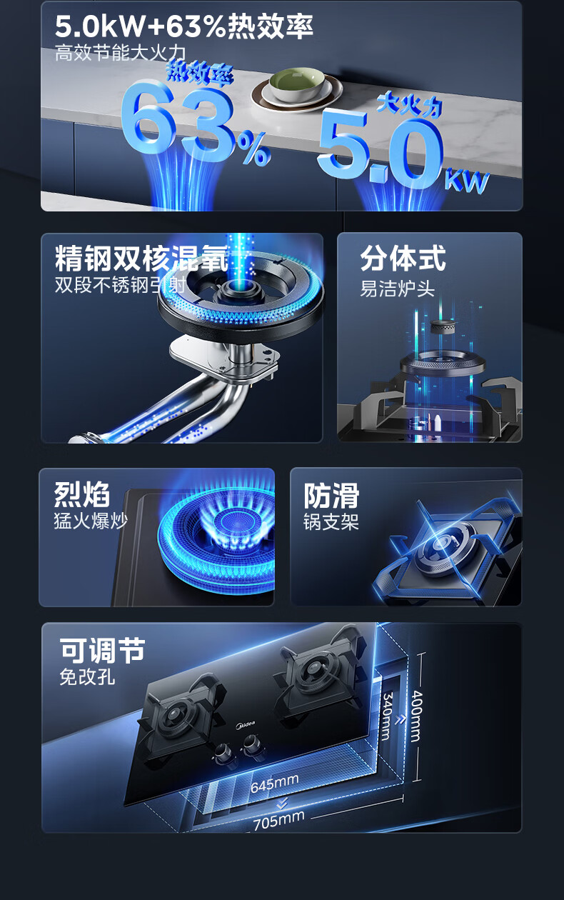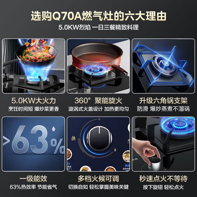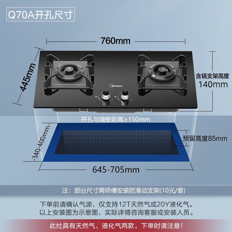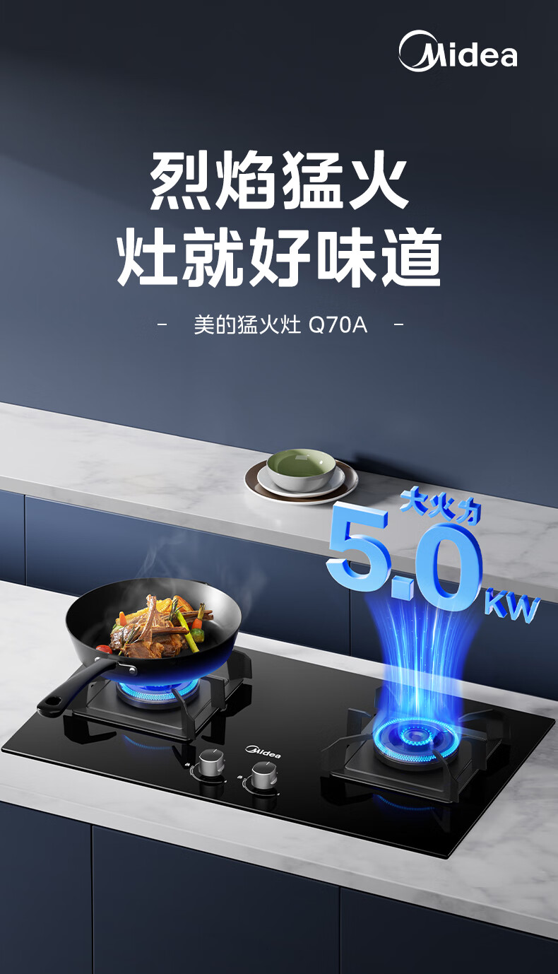美的(Midea)燃气灶罐装煤气灶台嵌式家用双灶 5.0kw炉具双灶可调节开孔灶Q70A 5.0KW聚能旋火