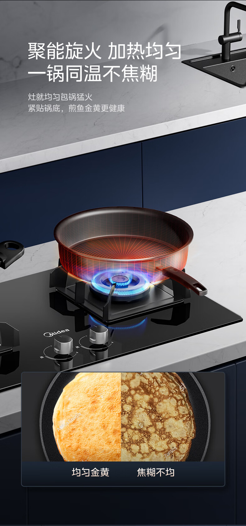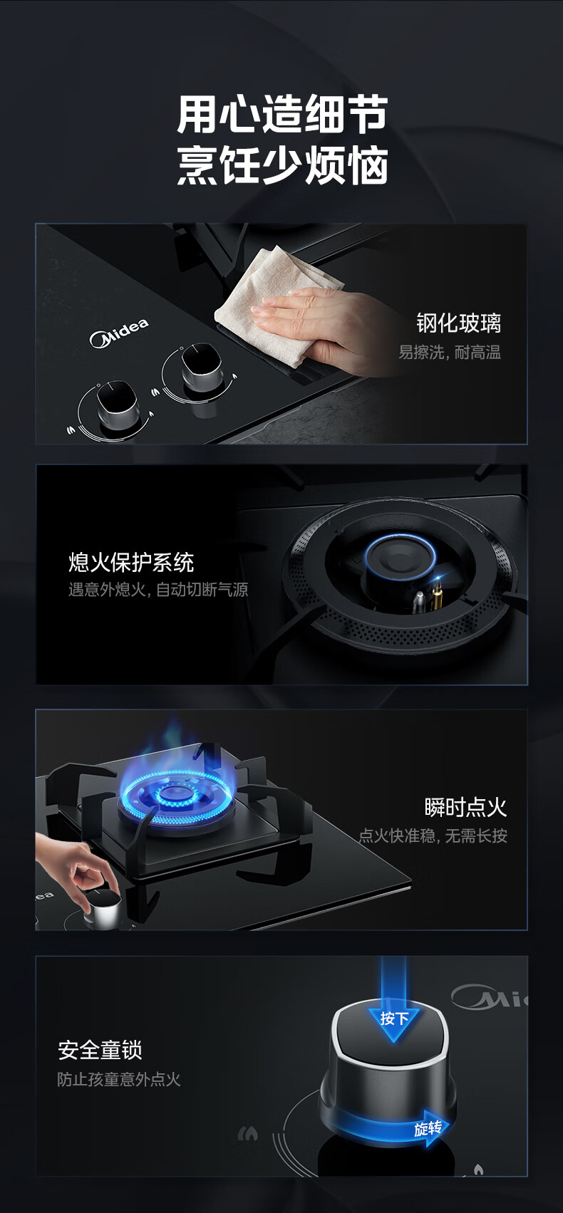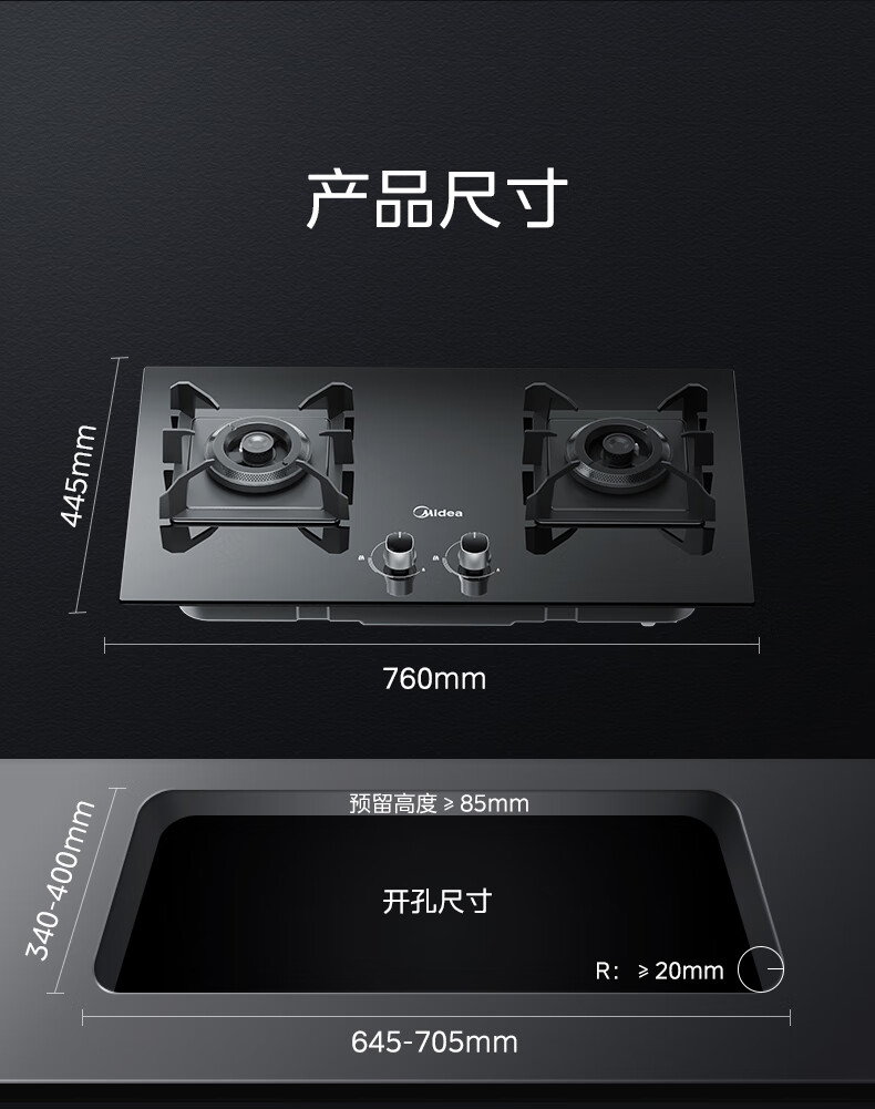 美的(Midea)燃气灶罐装煤气灶台嵌式家用双灶 5.0kw炉具双灶可调节开孔灶Q70A 5.0KW聚能旋火
