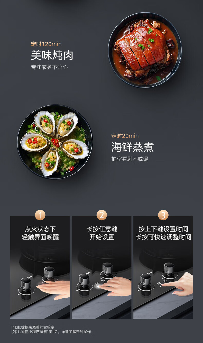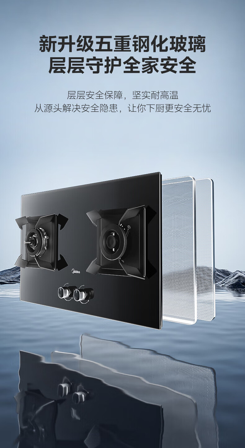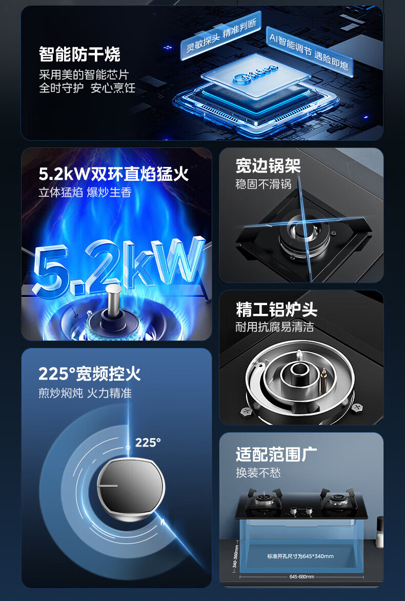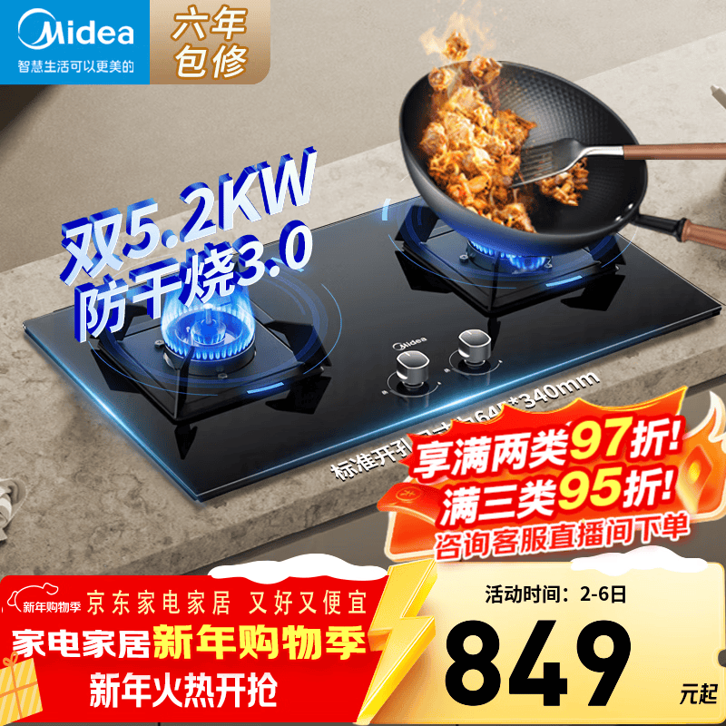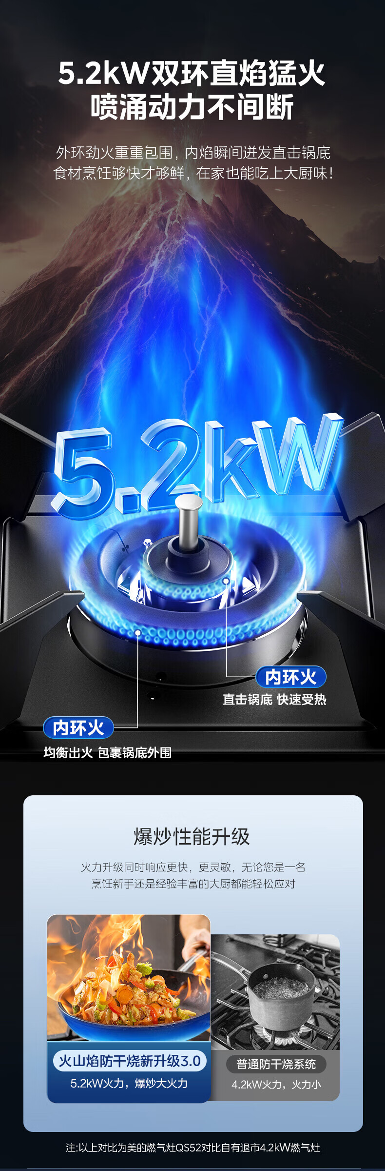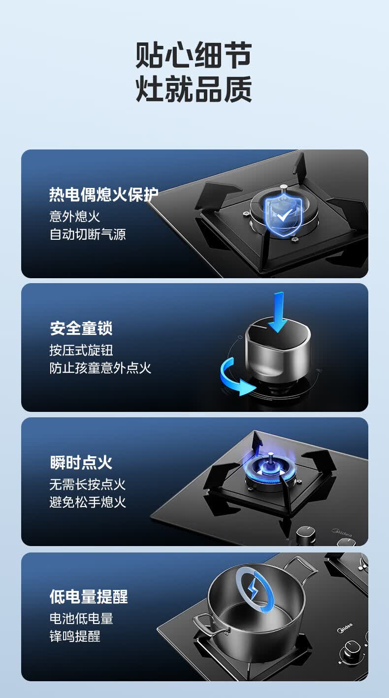 美的(Midea)燃气灶家用5.2KW大火力 双边定时灶/防干烧灶可选 烟灶联动精铸铜火盖 台嵌两用双灶天然气灶