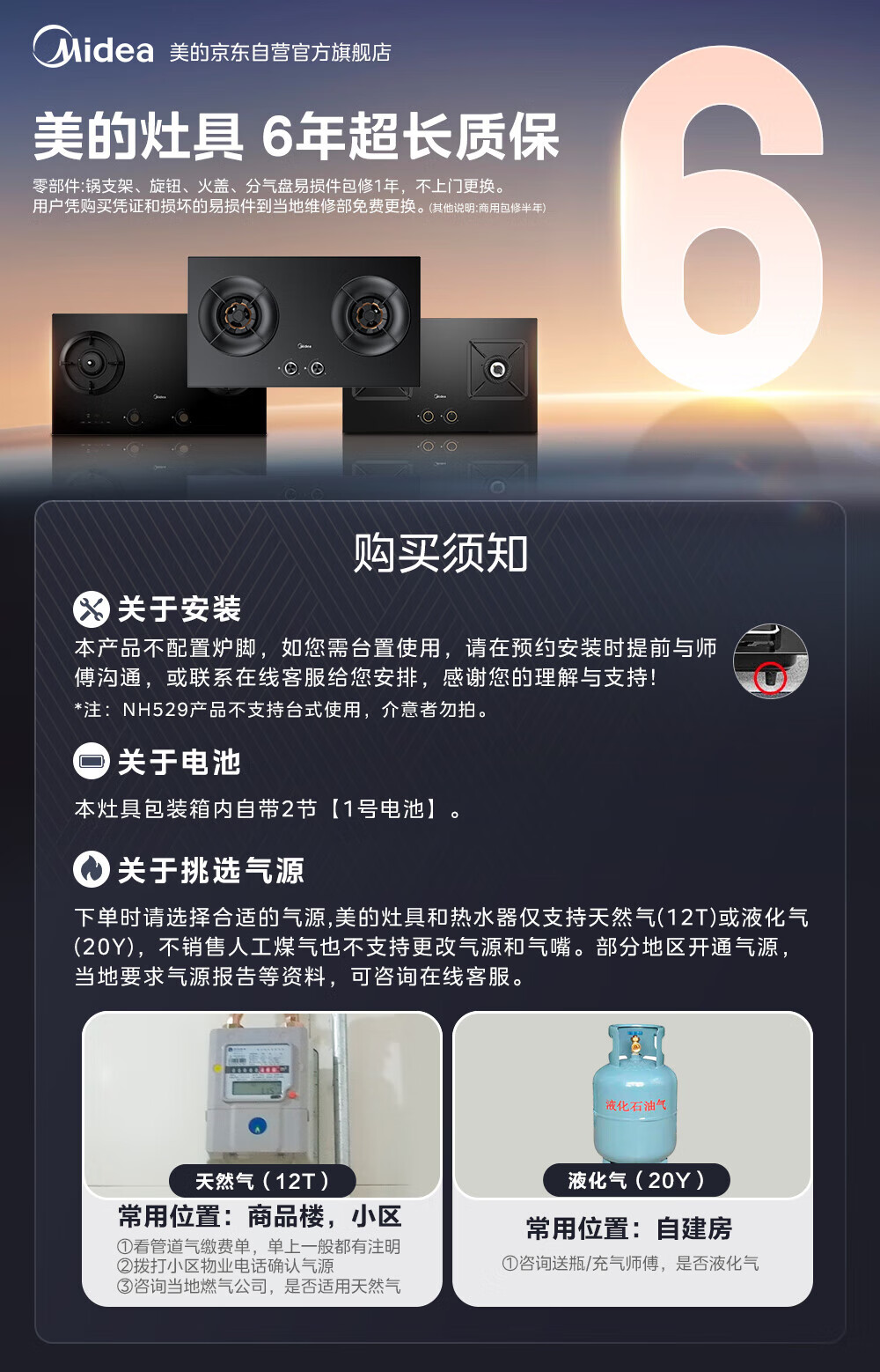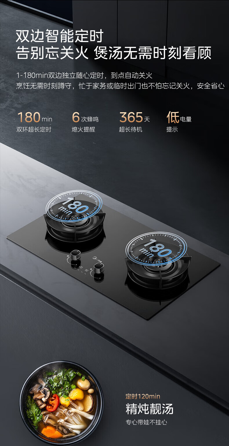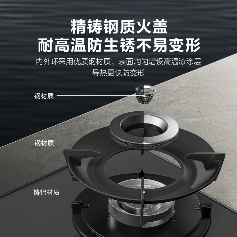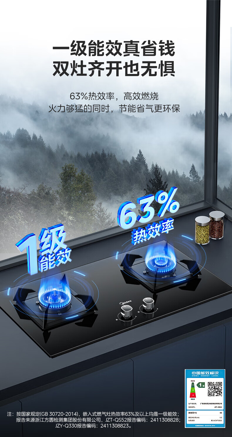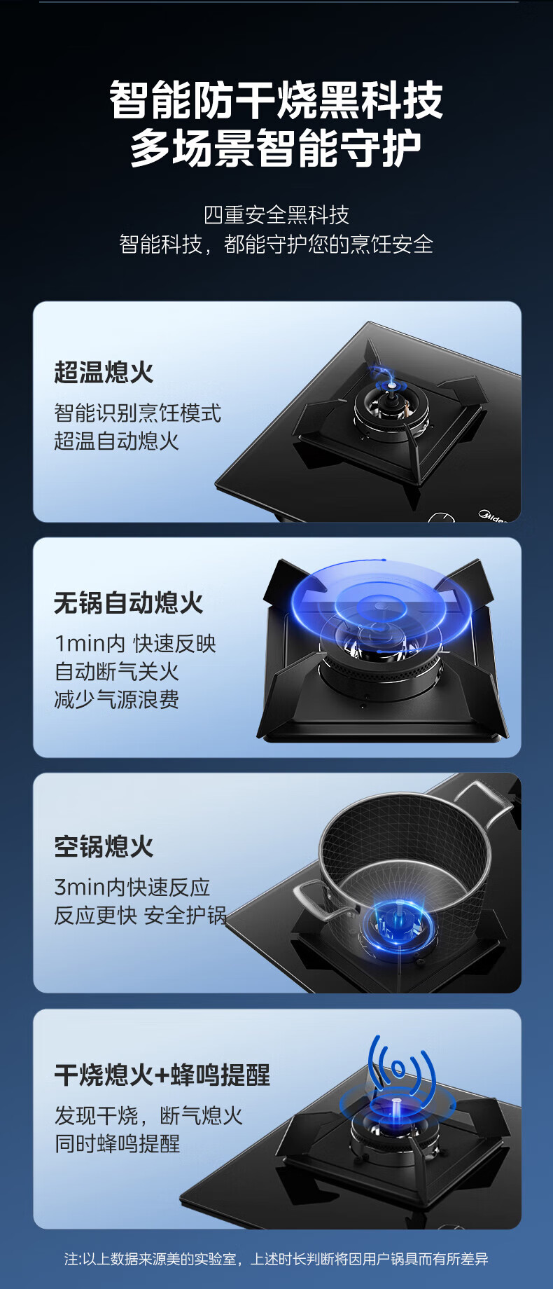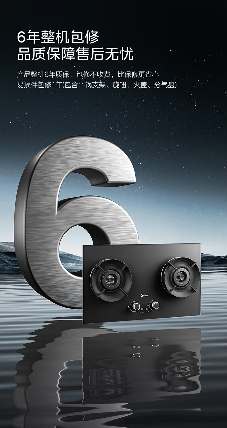 美的(Midea)燃气灶家用5.2KW大火力 双边定时灶/防干烧灶可选 烟灶联动精铸铜火盖 台嵌两用双灶天然气灶