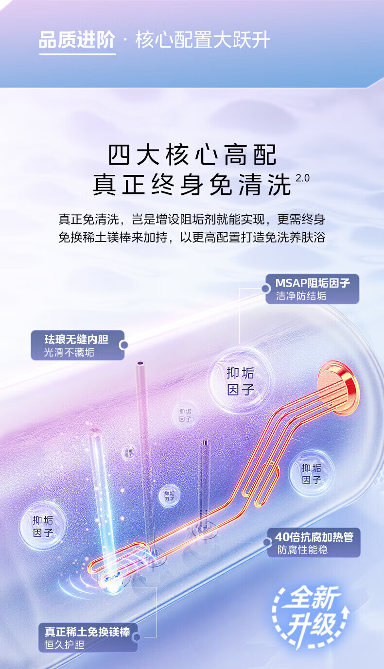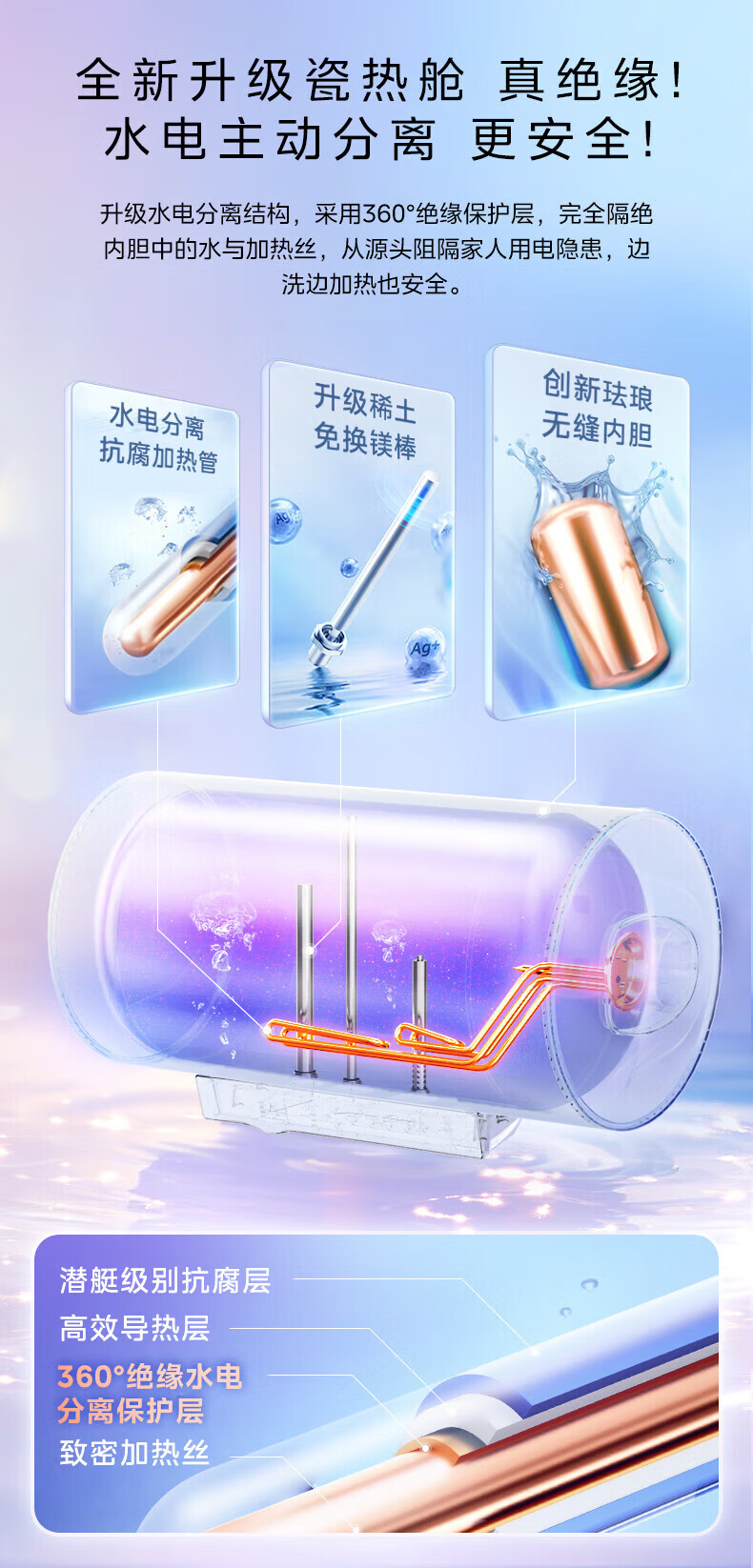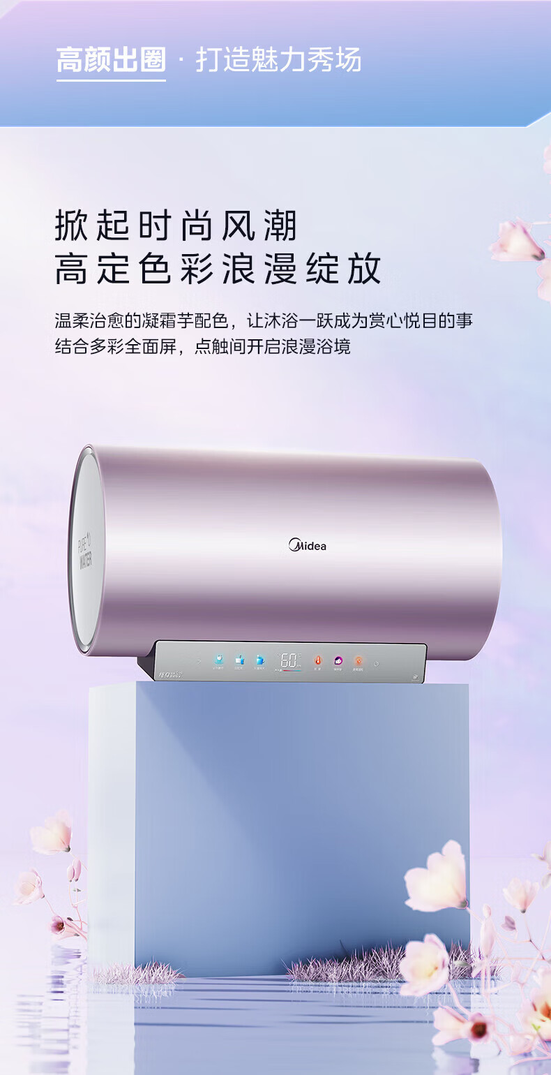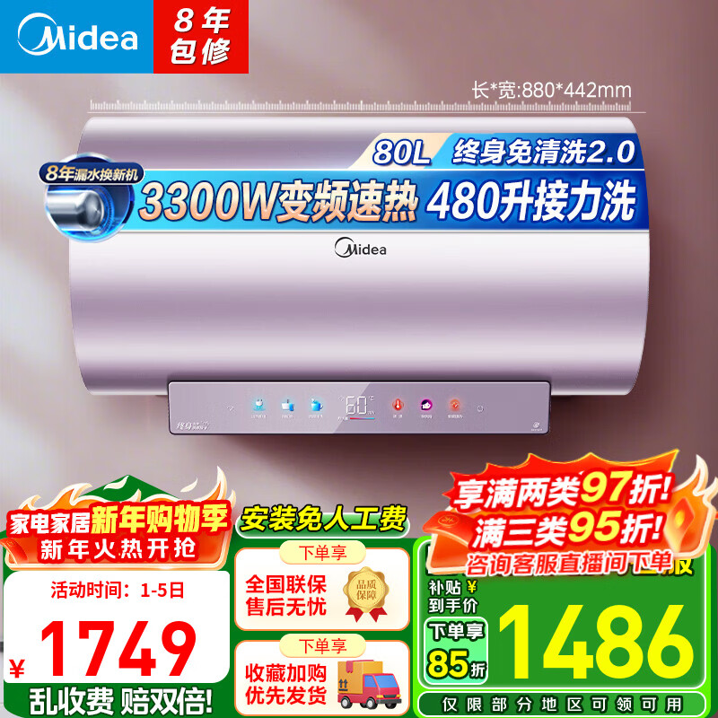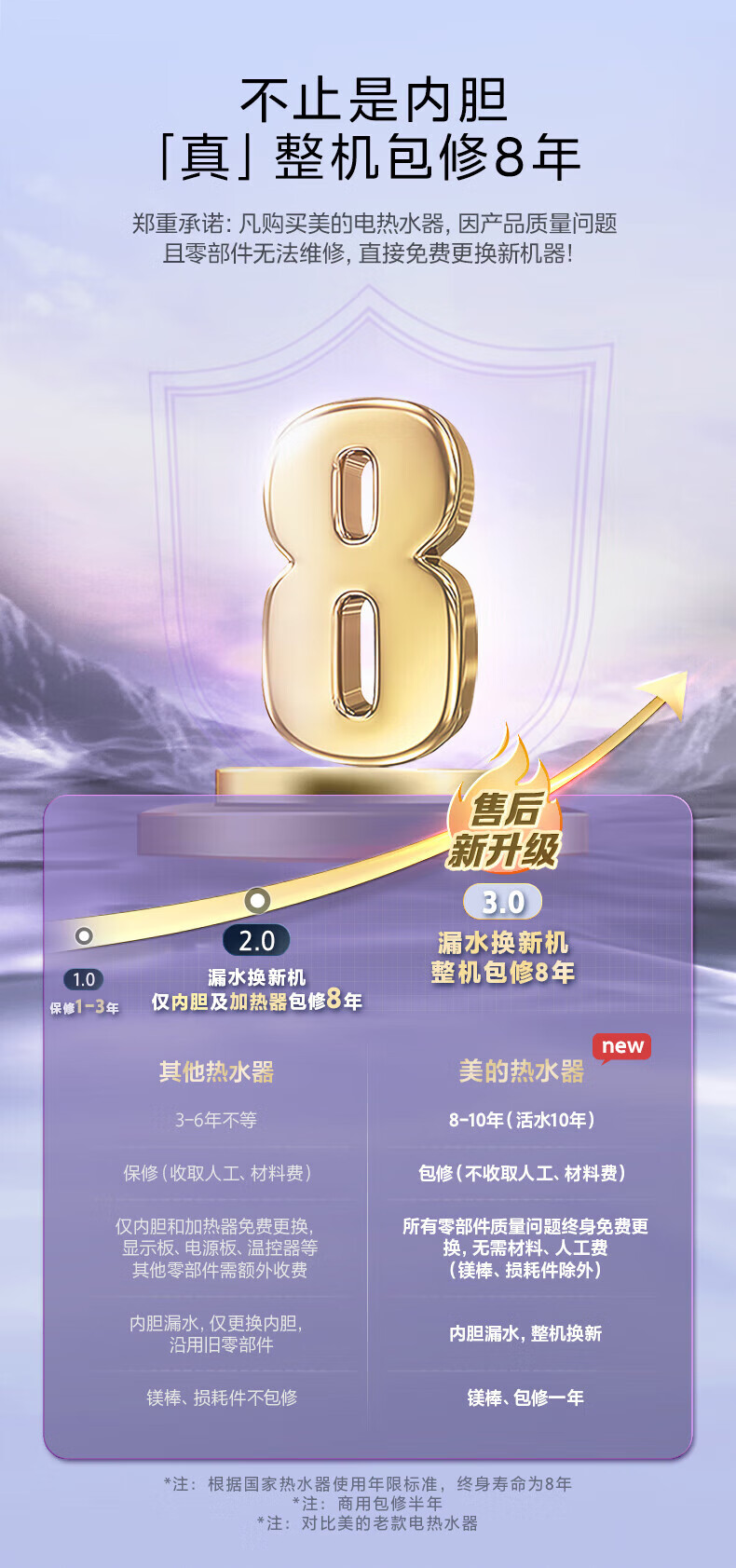 美的(Midea)【终身免清洗2.0】电热水器家用60/80升3300W变频速热出水断电镁棒免更换一级能效补贴立减20%JE8