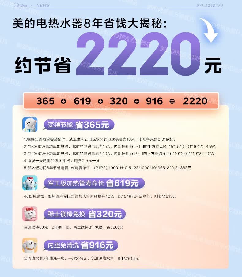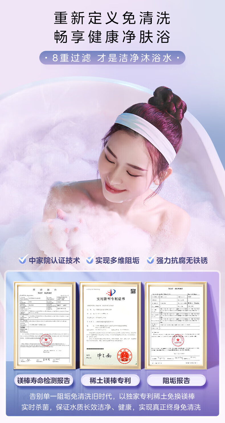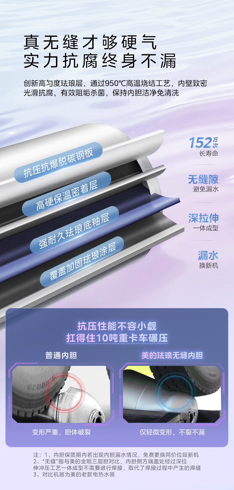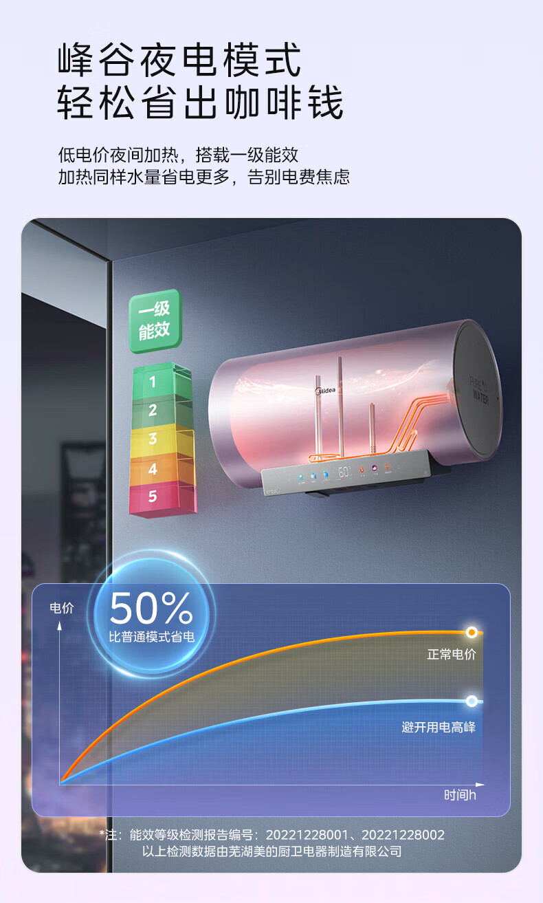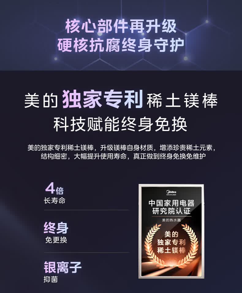 美的(Midea)【终身免清洗2.0】电热水器家用60/80升3300W变频速热出水断电镁棒免更换一级能效补贴立减20%JE8