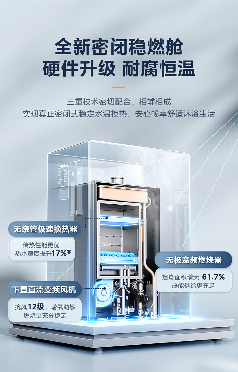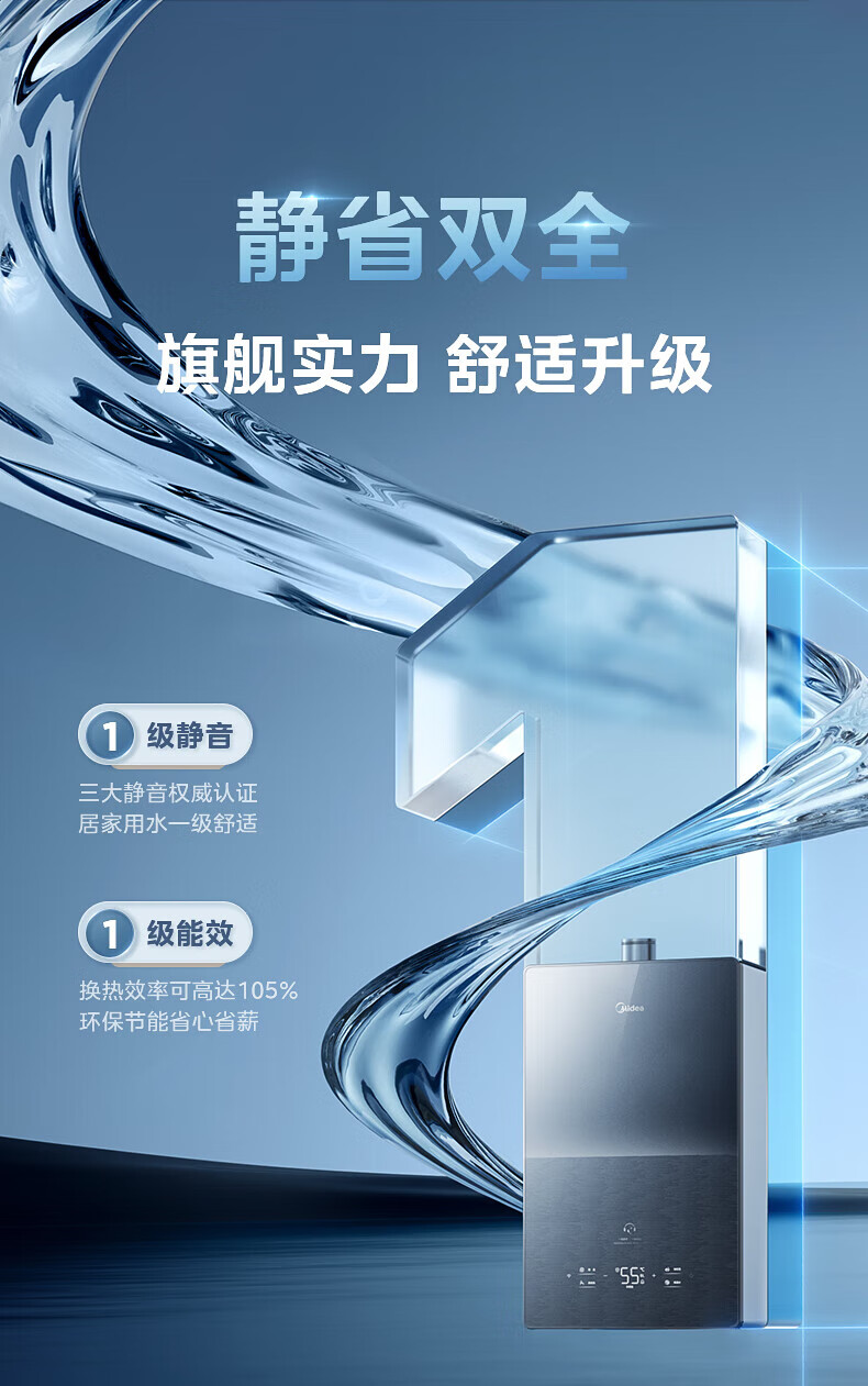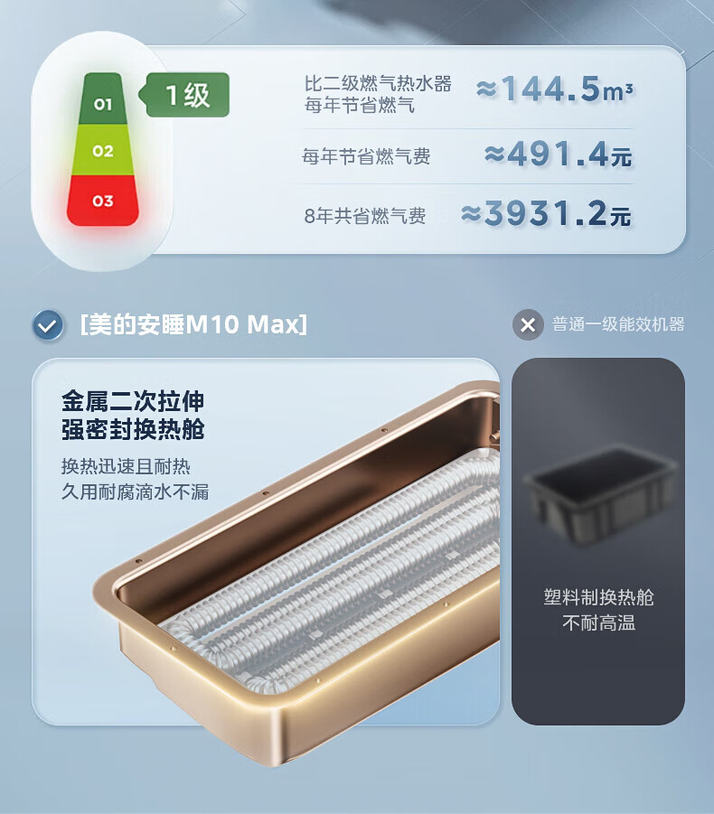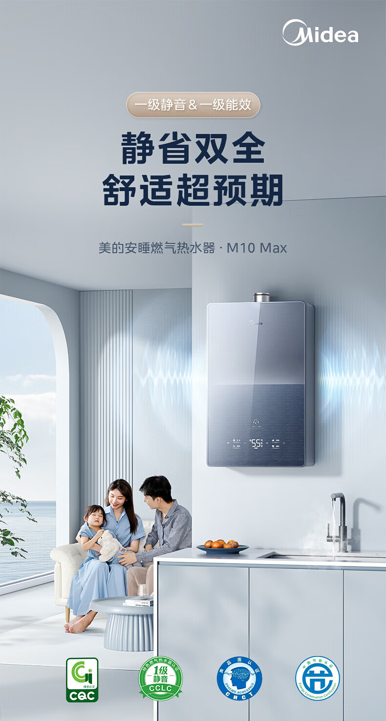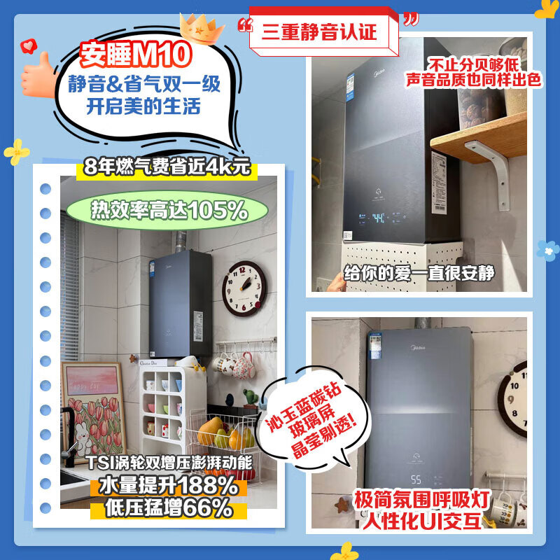 美的(Midea)燃气热水器安睡M10天然气热水器强排式恒温超一级能效静音增压水伺服以旧换新 16L 【安睡M10 Max】节能TSI增压
