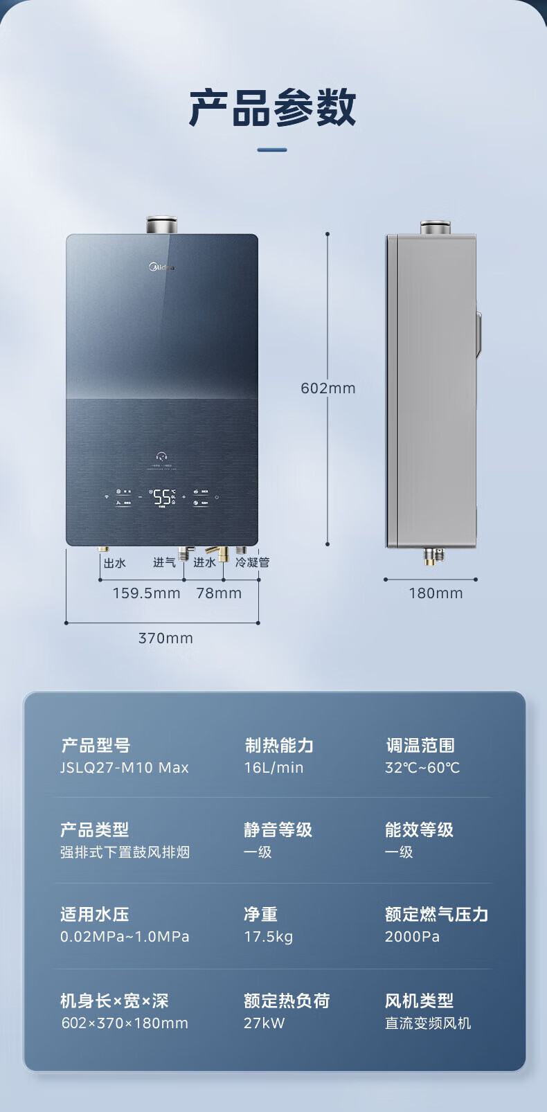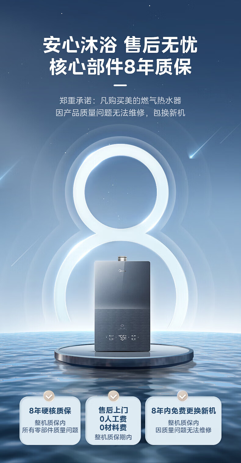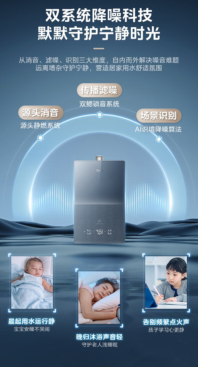 美的(Midea)燃气热水器安睡M10天然气热水器强排式恒温超一级能效静音增压水伺服以旧换新 16L 【安睡M10 Max】节能TSI增压