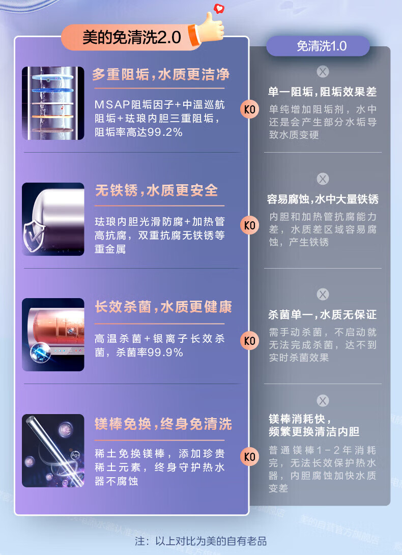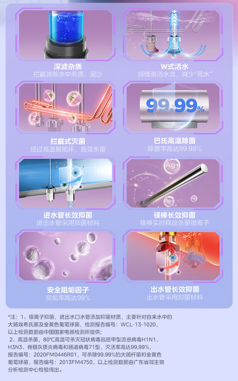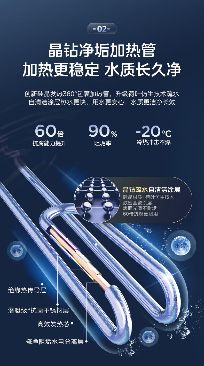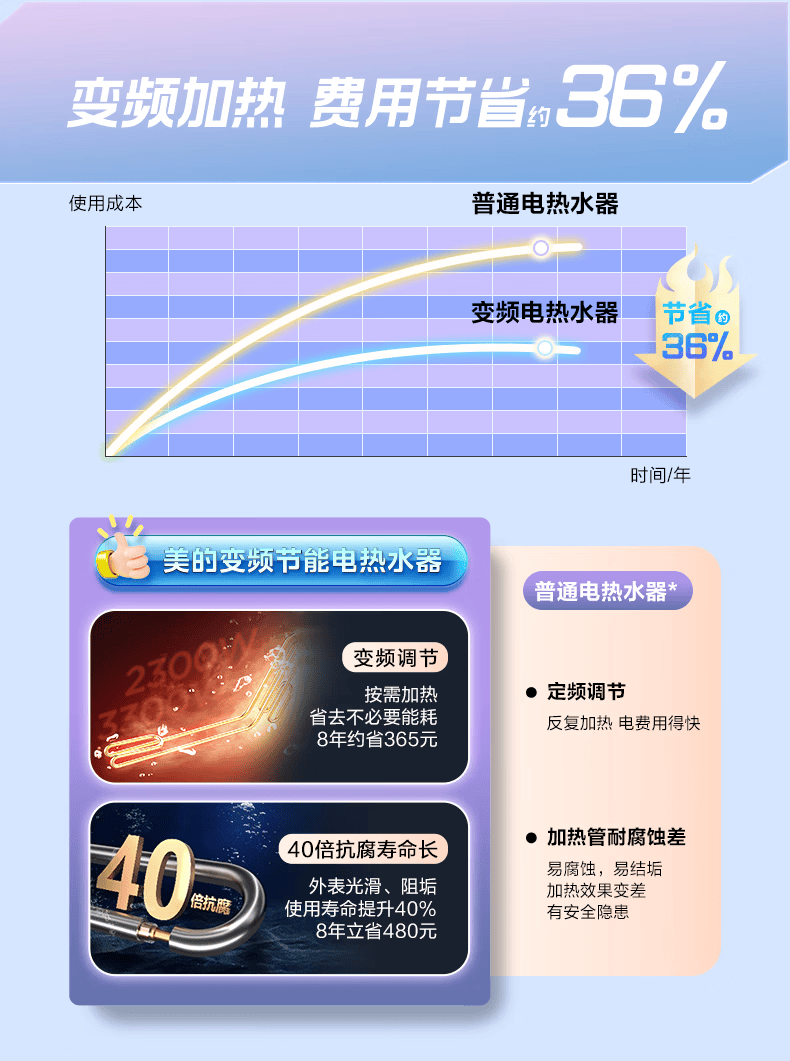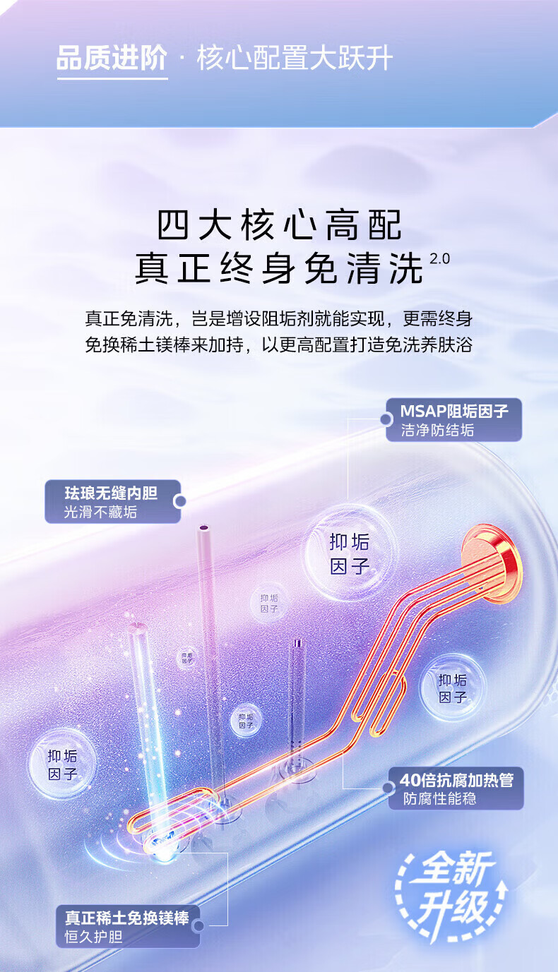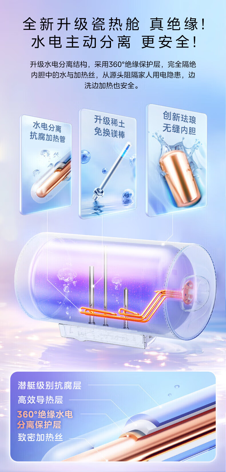 美的(Midea)【终身免清洗】电热水器家用稀土免换镁棒60/80升3300W变频速热出水断电阻垢一级能效JE8/JE8pro