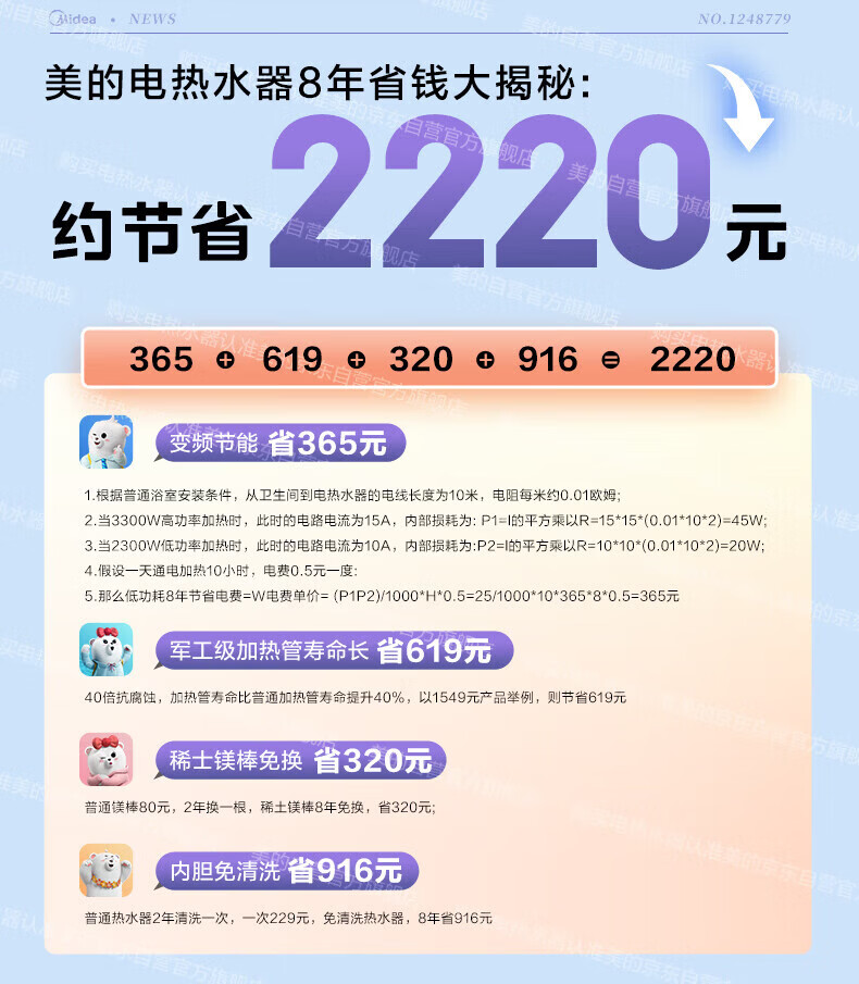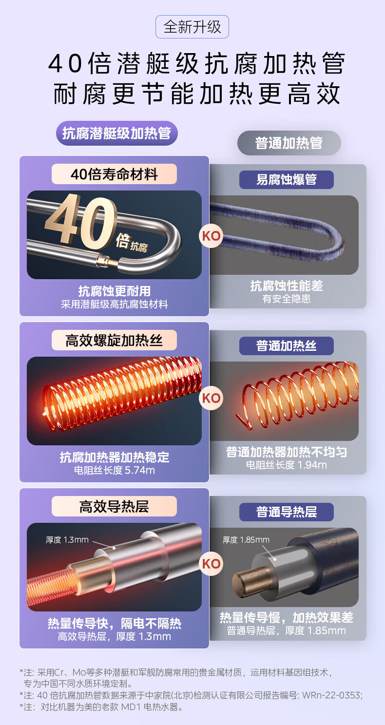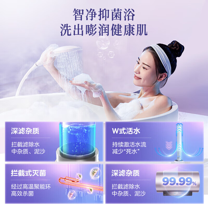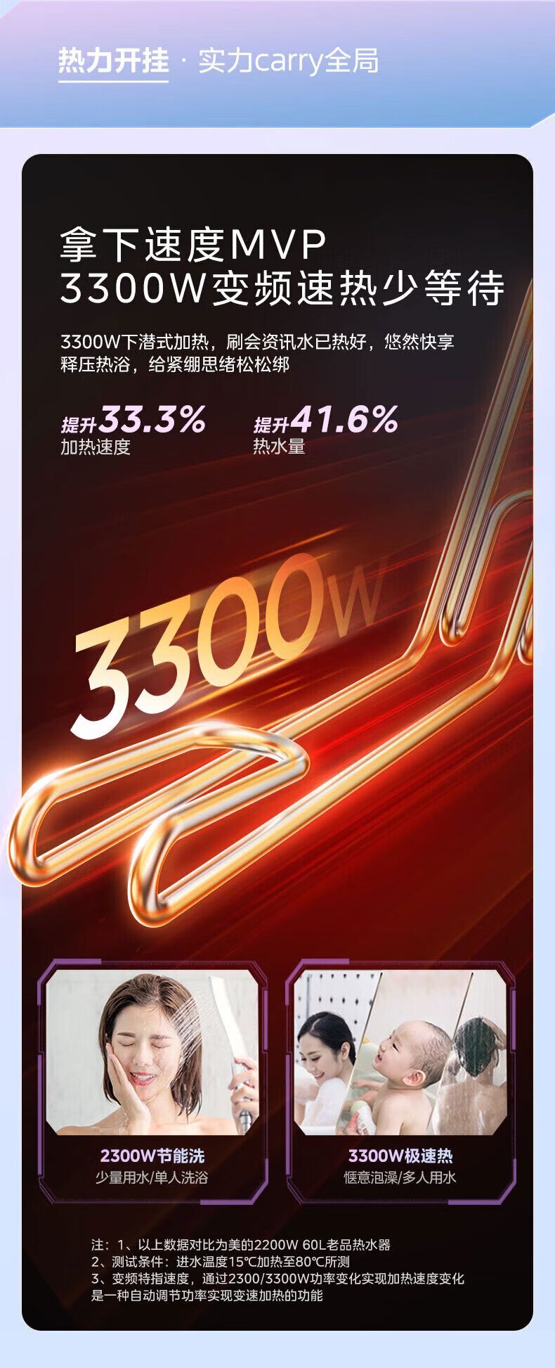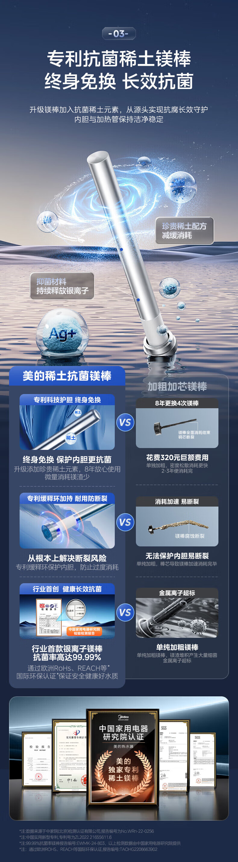 美的(Midea)【终身免清洗】电热水器家用稀土免换镁棒60/80升3300W变频速热出水断电阻垢一级能效JE8/JE8pro