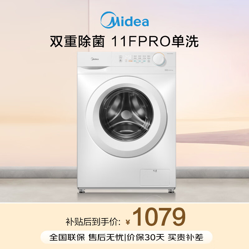 美的(Midea)滚筒洗衣机全自动10公斤变频超薄高温筒自洁巴氏除菌洗内衣洗一级能效以旧换新 MG100V11FPRO