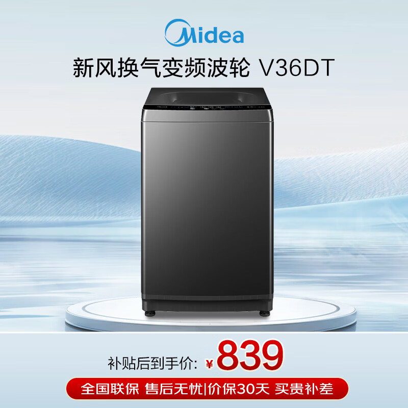 美的(Midea)全自动波轮洗衣机10公斤家用免清洗 健康除螨直驱变频电机一级能效 以旧换新 MB100V36DT