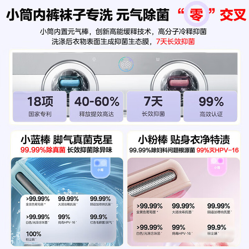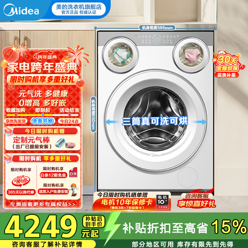 美的(Midea)三筒洗衣机洗烘一体全自动分区洗除菌净血渍三桶智能投放850mm标准高度 【可爱多MD11DDEX】 双缸