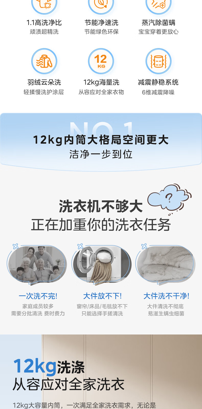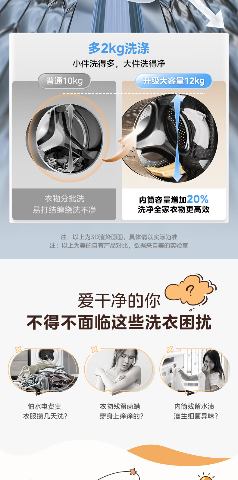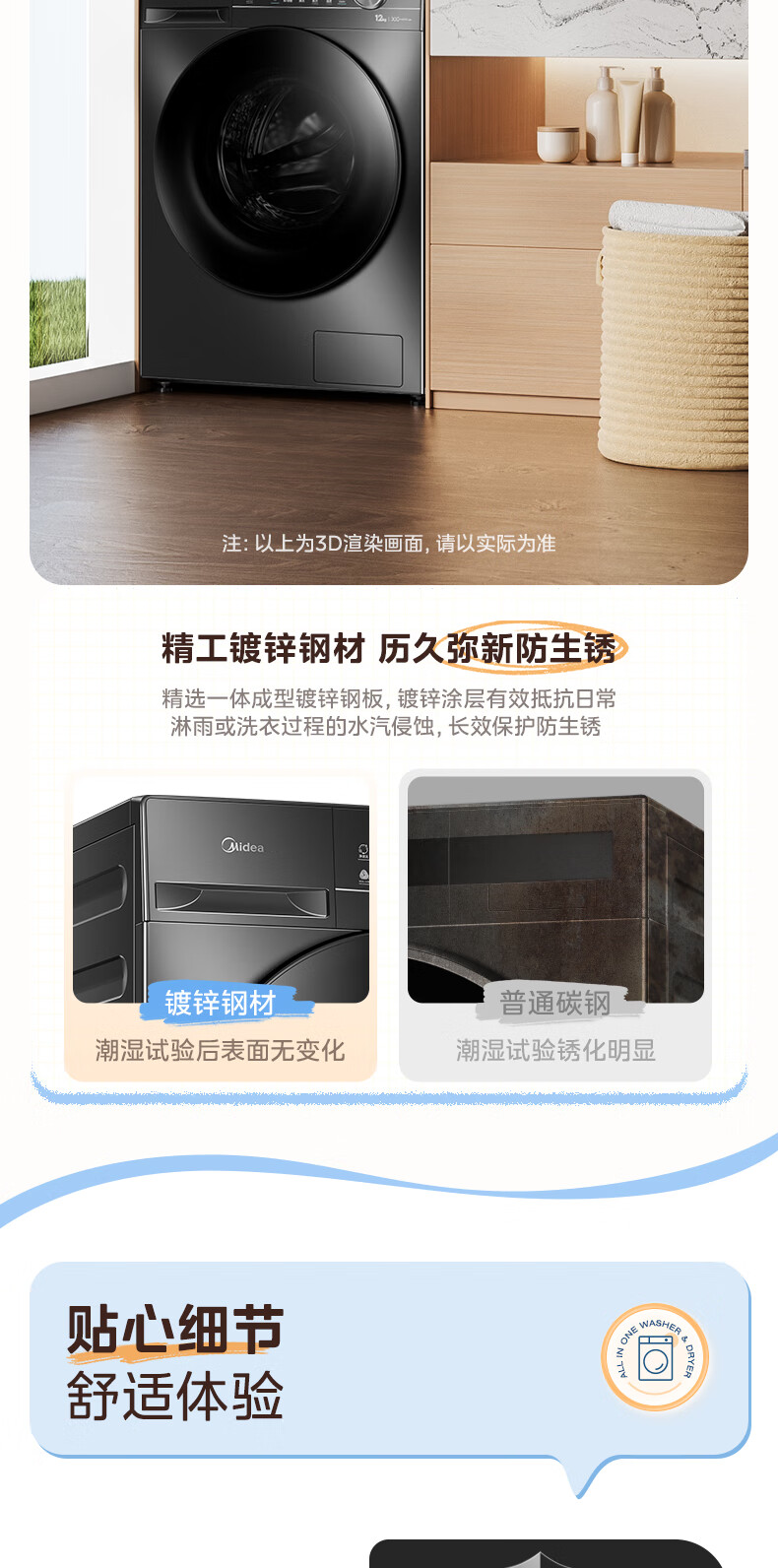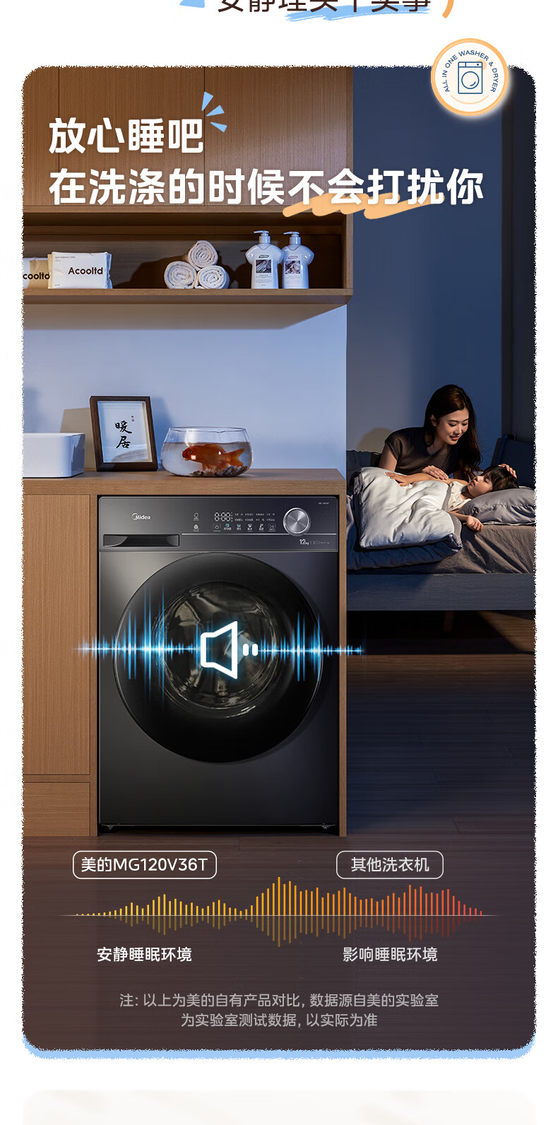 美的(Midea)滚筒洗衣机全自动家电一级能效以旧换新12公斤1.1高洗净比变频电机高温筒自洁蒸汽除菌 MG120V36T
