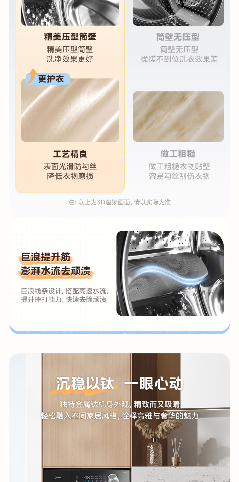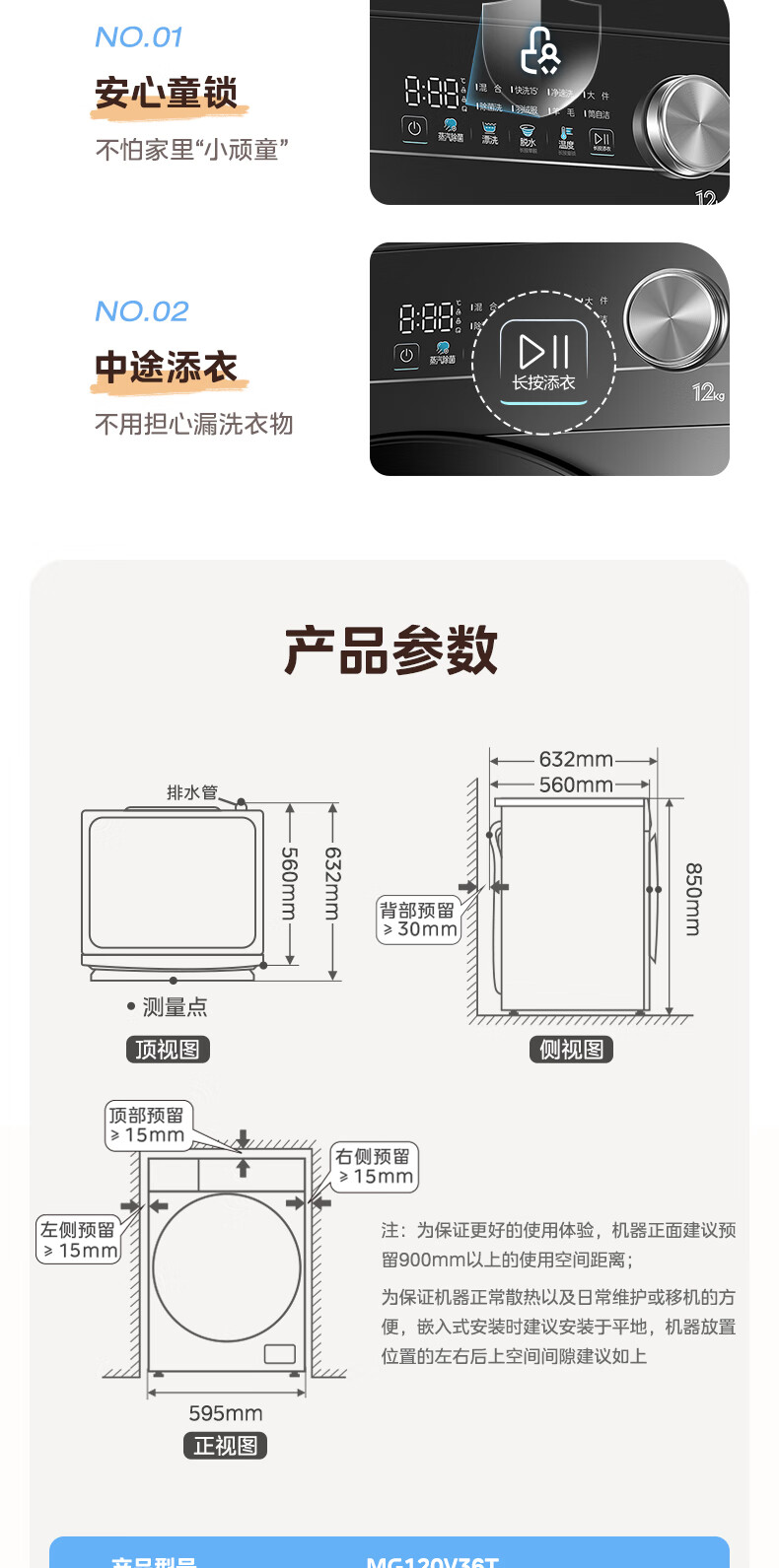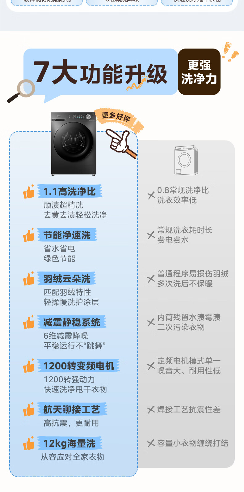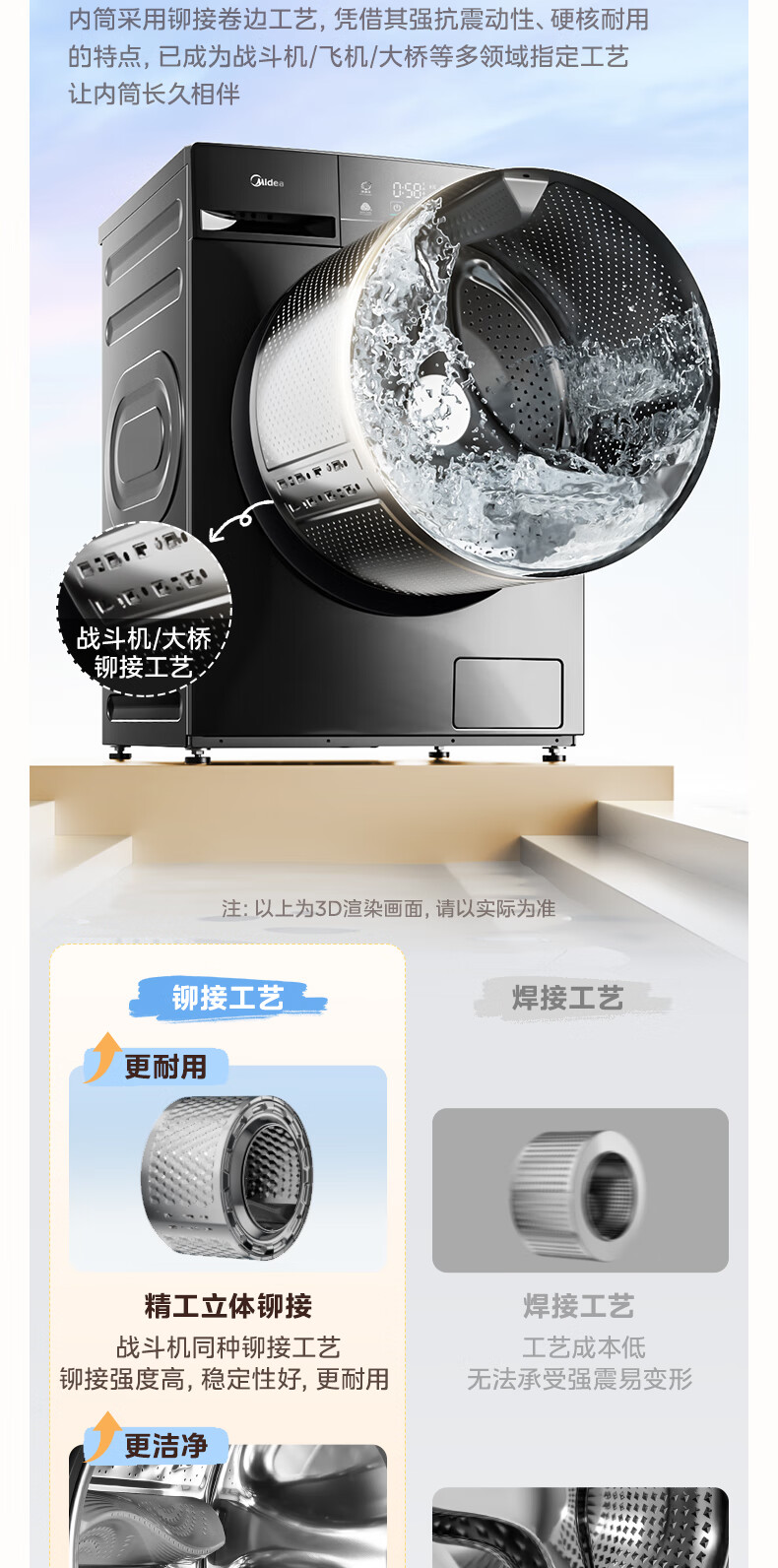 美的(Midea)滚筒洗衣机全自动家电一级能效以旧换新12公斤1.1高洗净比变频电机高温筒自洁蒸汽除菌 MG120V36T