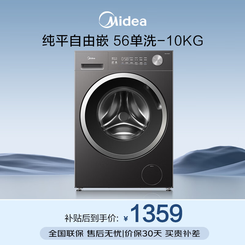 美的(Midea)滚筒洗衣机全自动10kg家用大容量快净2.0科技1.21高洗净比一级能效省水省电变频电机 MG10V56T