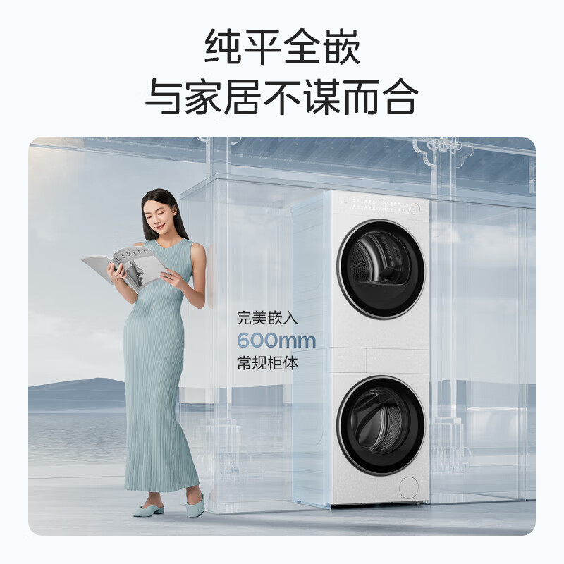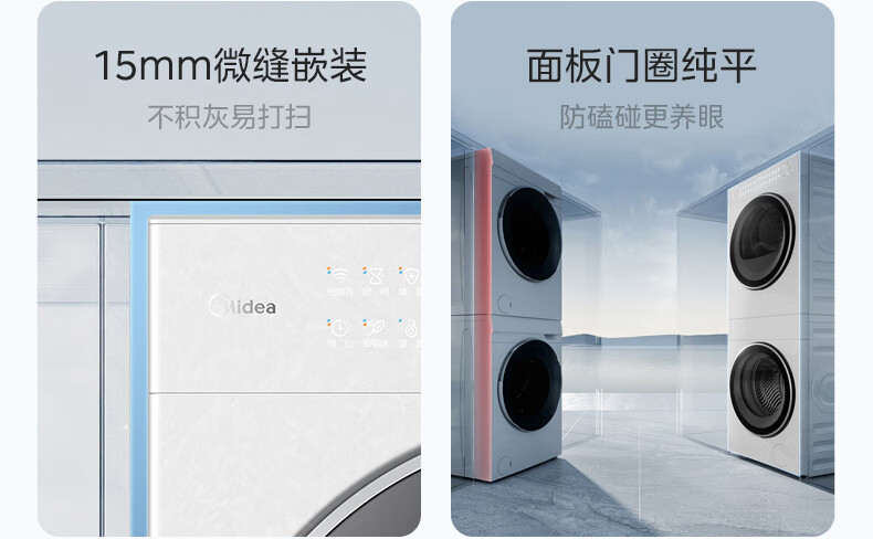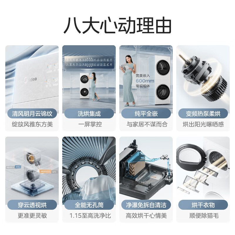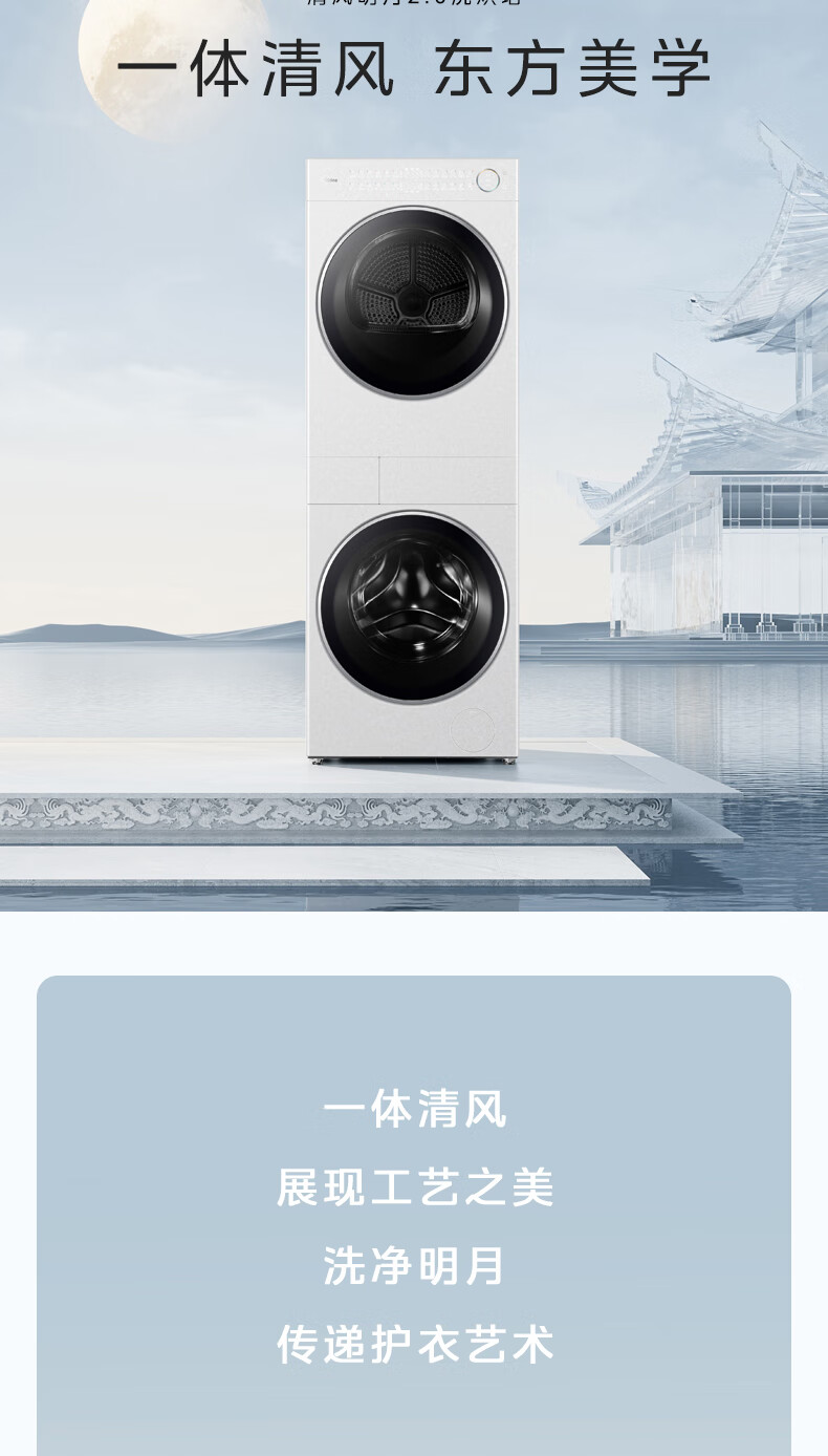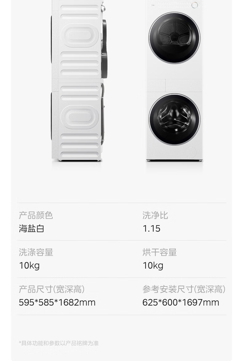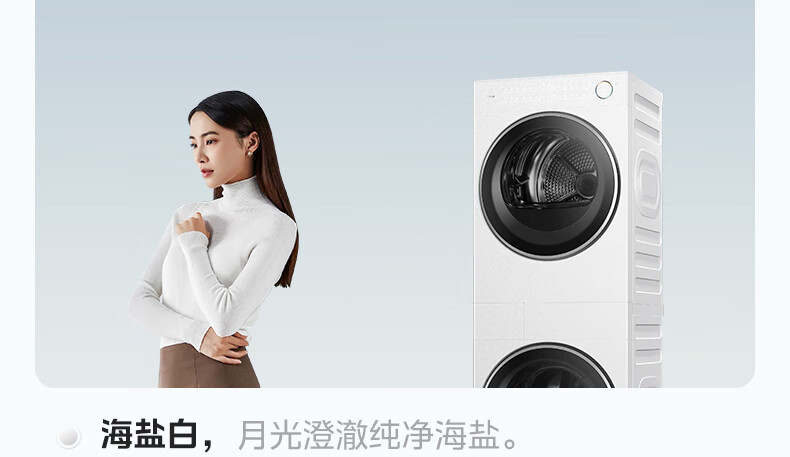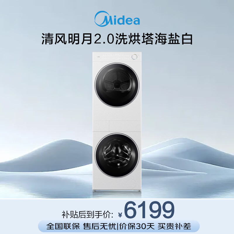 美的(Midea)滚筒洗衣机全自动10kg带烘干洗烘一体变频热泵烘干机纯平全嵌【清风明月2.0洗烘塔】以旧换新 MGH20A-W+AIR海盐白【纯色洗烘塔】