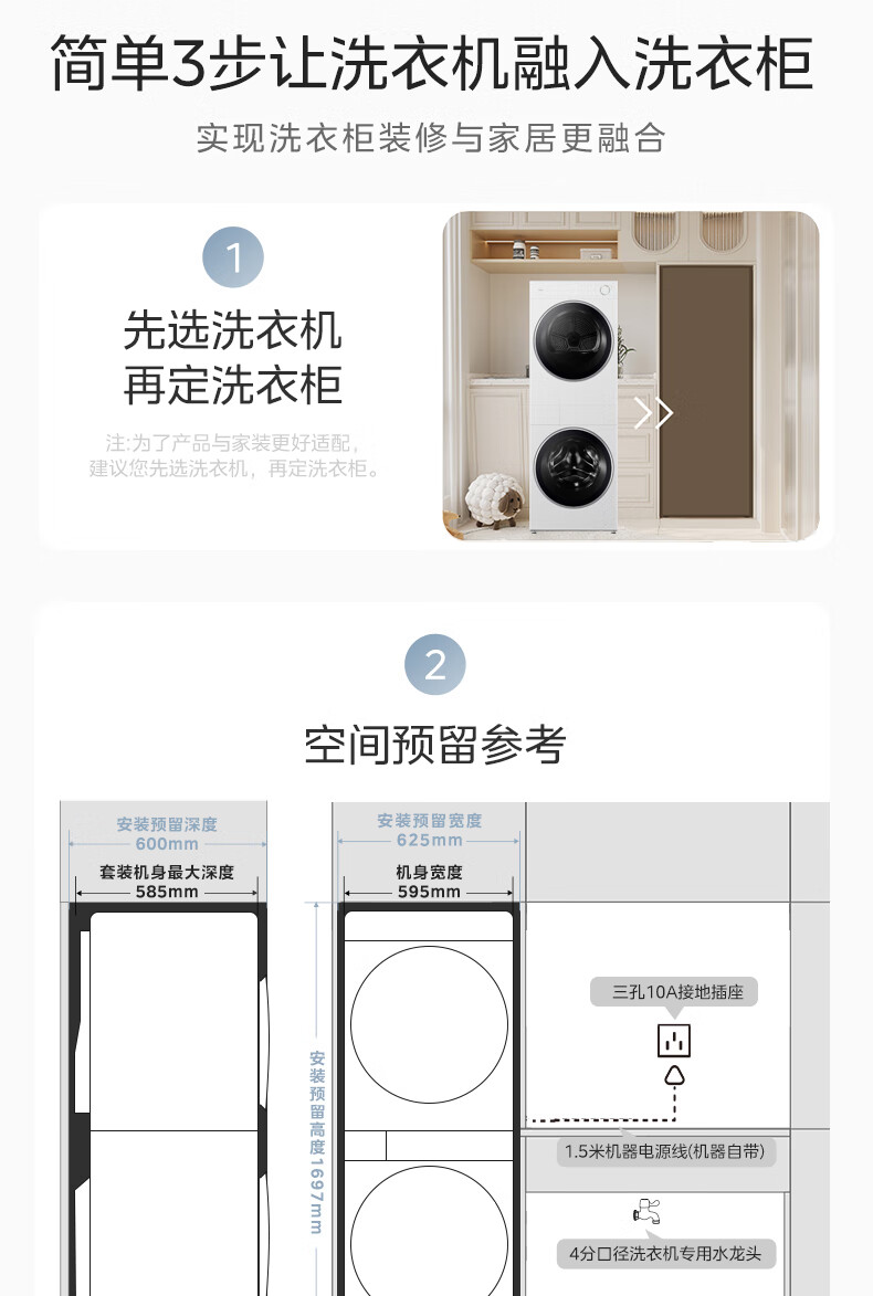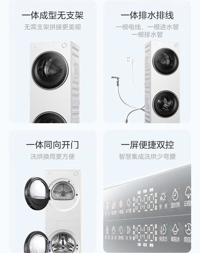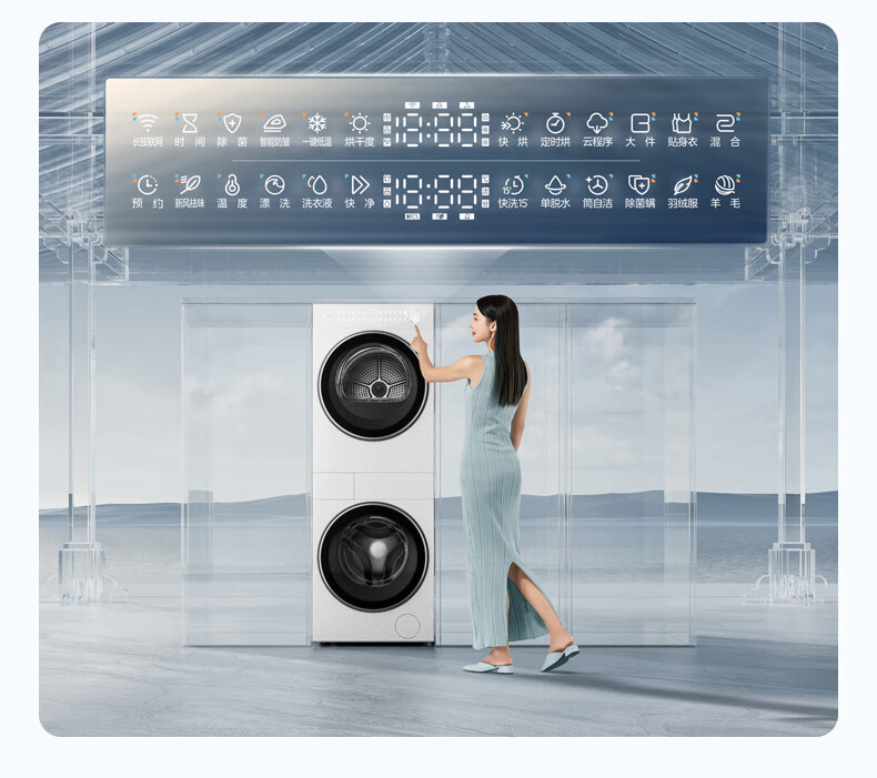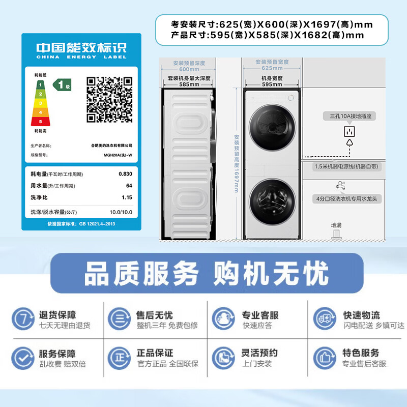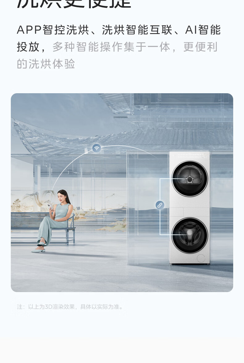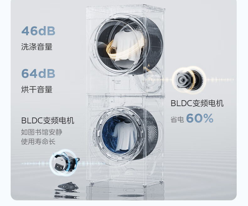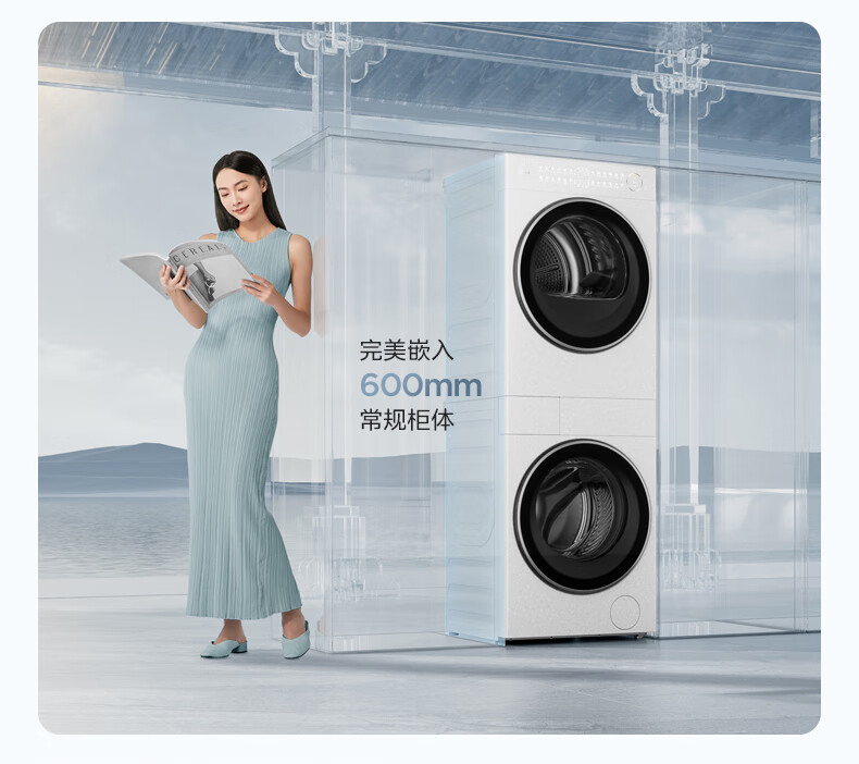 美的(Midea)滚筒洗衣机全自动10kg带烘干洗烘一体变频热泵烘干机纯平全嵌【清风明月2.0洗烘塔】以旧换新 MGH20A-W+AIR海盐白【纯色洗烘塔】