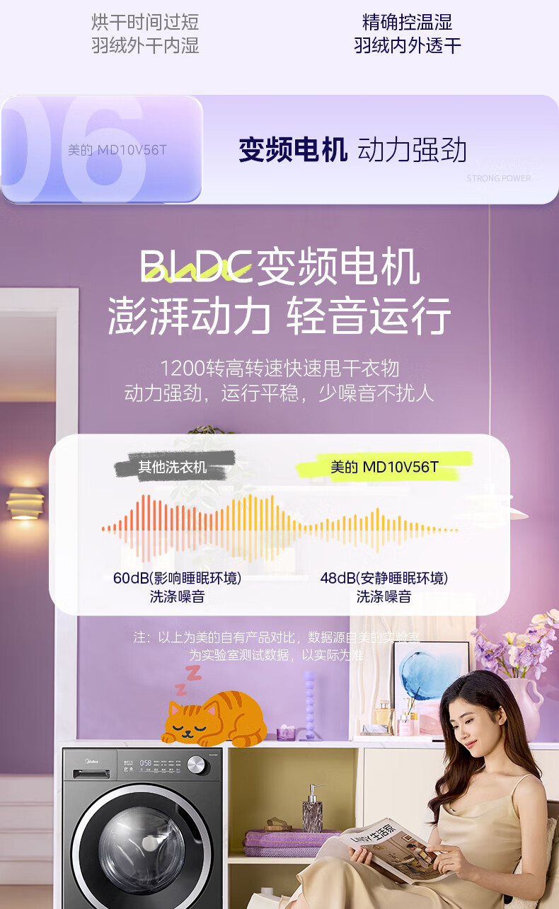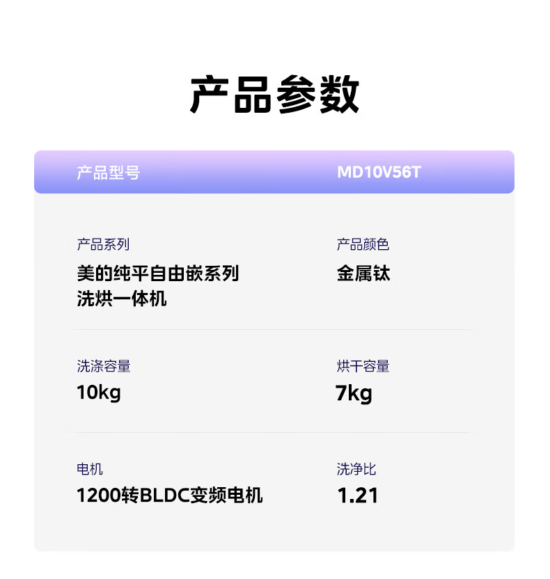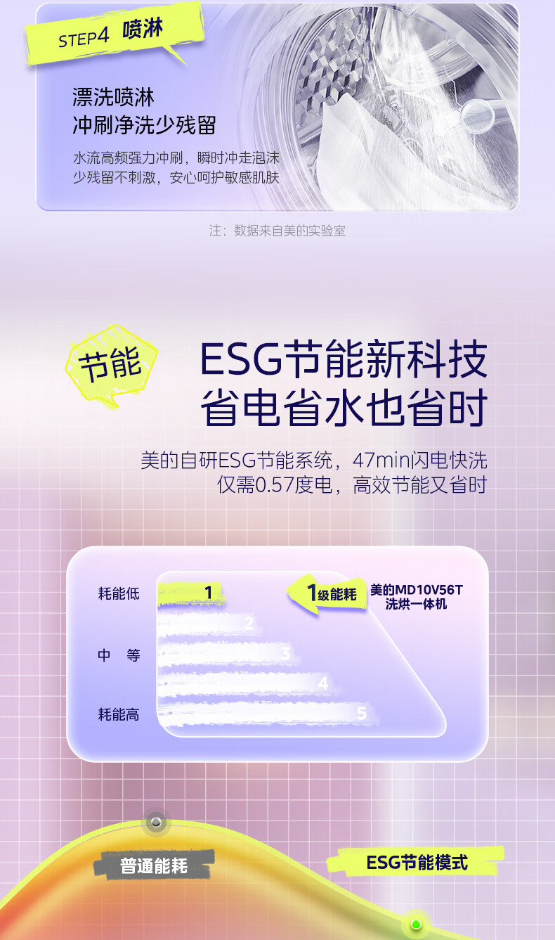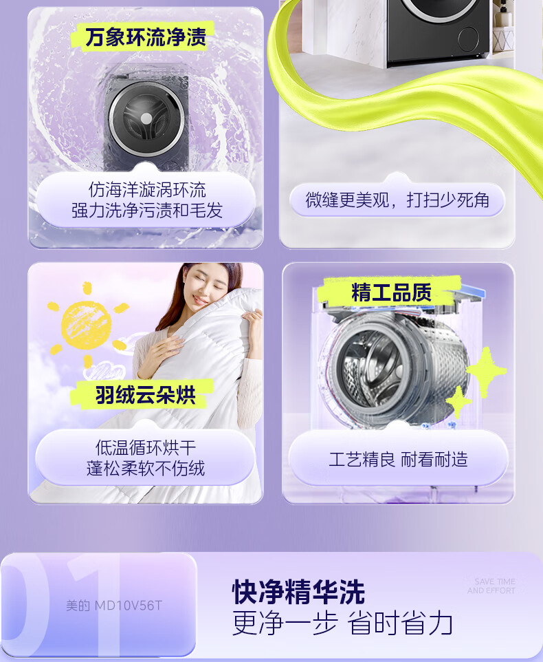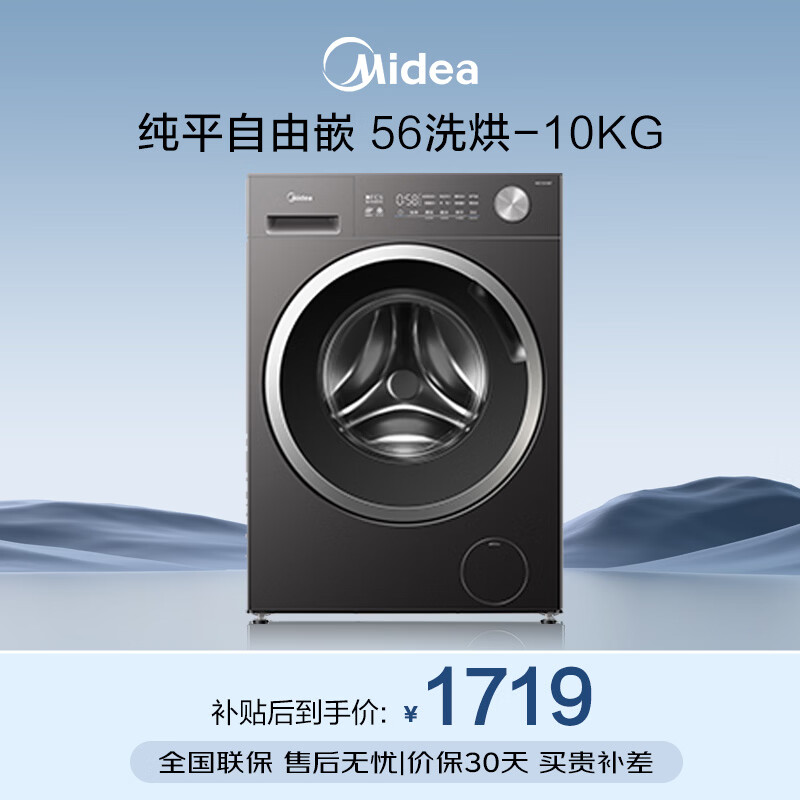 美的(Midea)滚筒洗衣机全自动10kg家用大容量洗烘一体机快净精华洗一级能效省水省时省电除菌除螨变频电机 MD10V56T