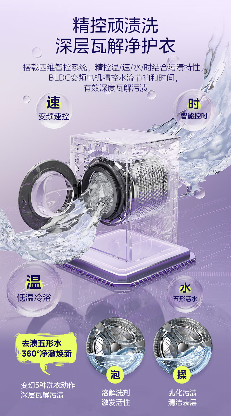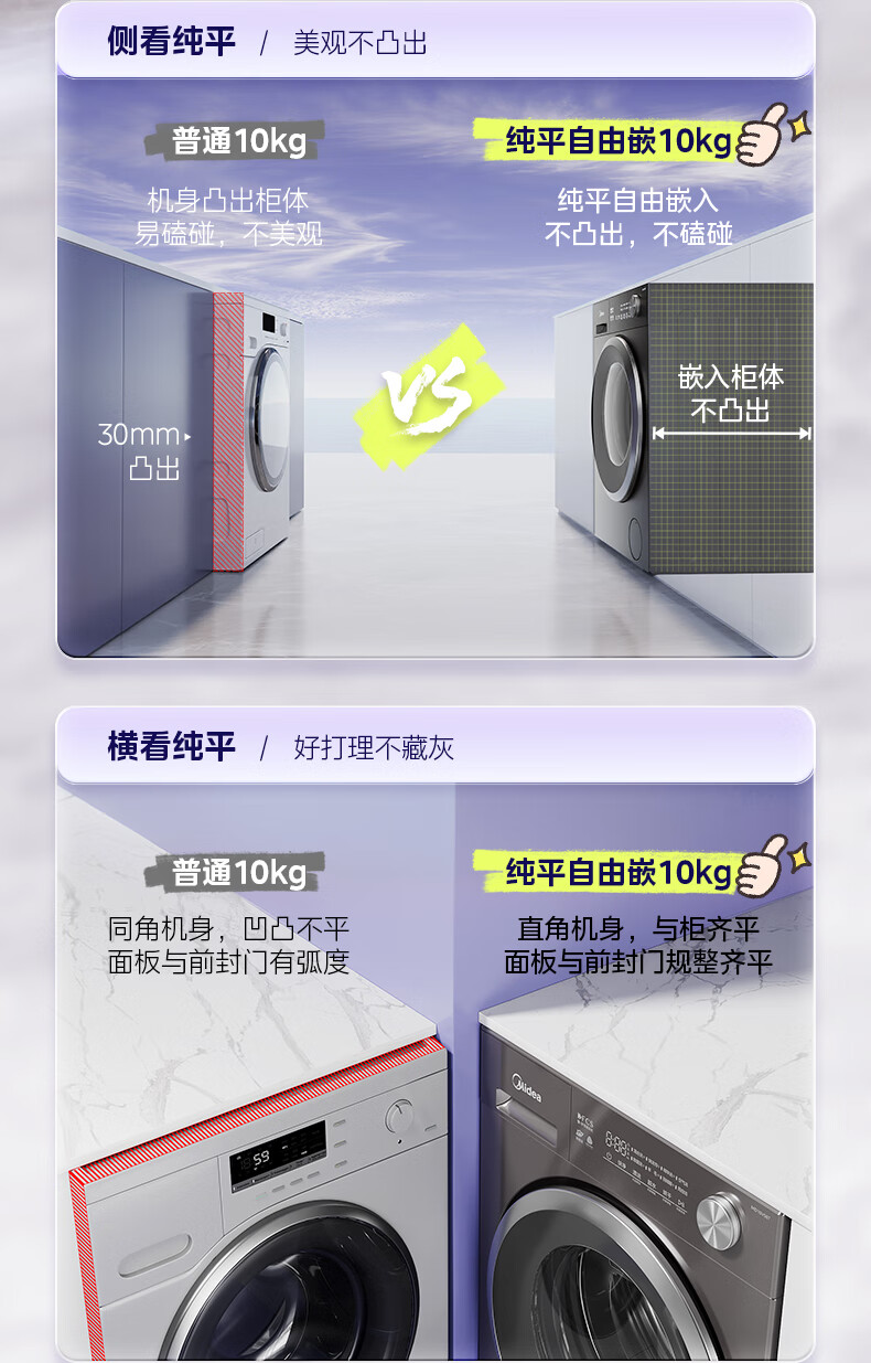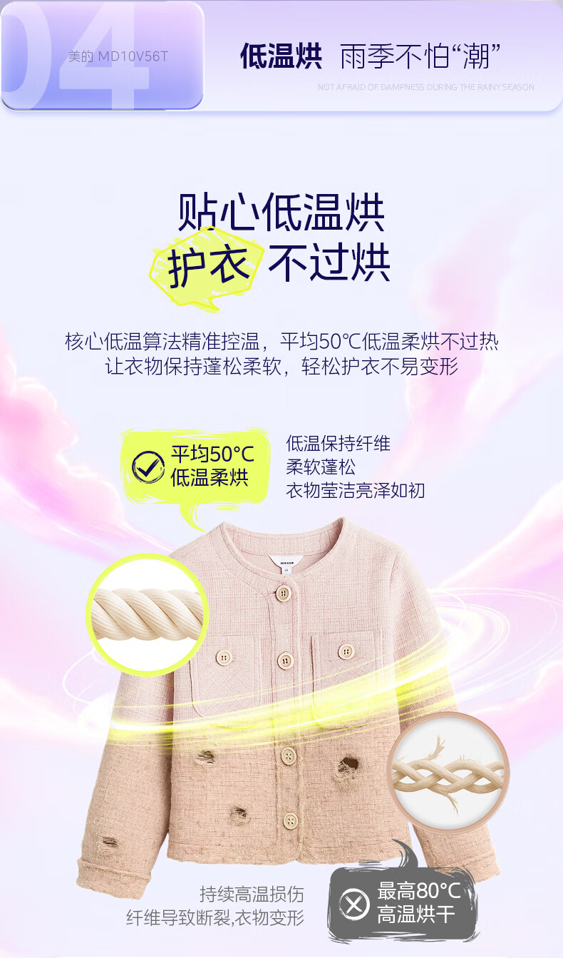 美的(Midea)滚筒洗衣机全自动10kg家用大容量洗烘一体机快净精华洗一级能效省水省时省电除菌除螨变频电机 MD10V56T