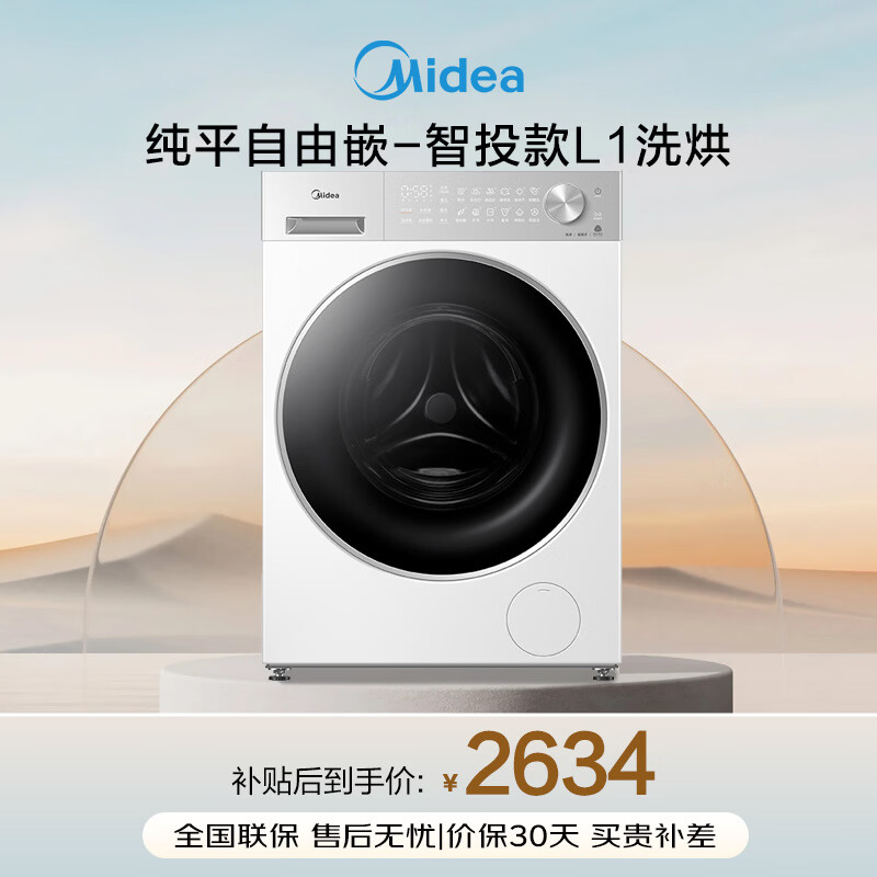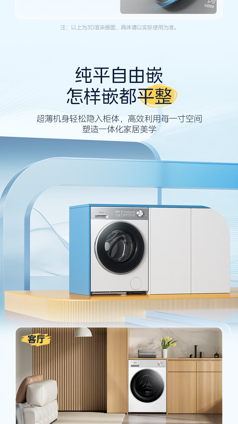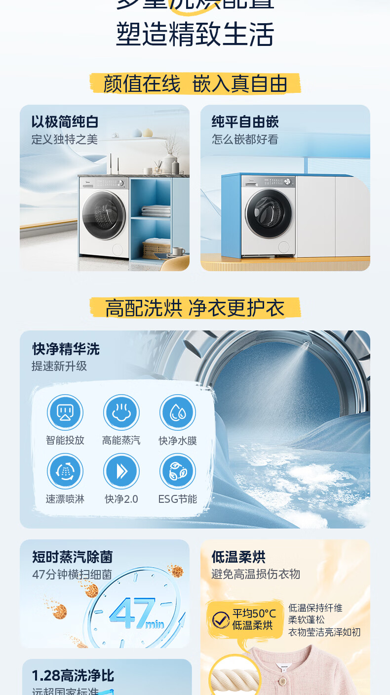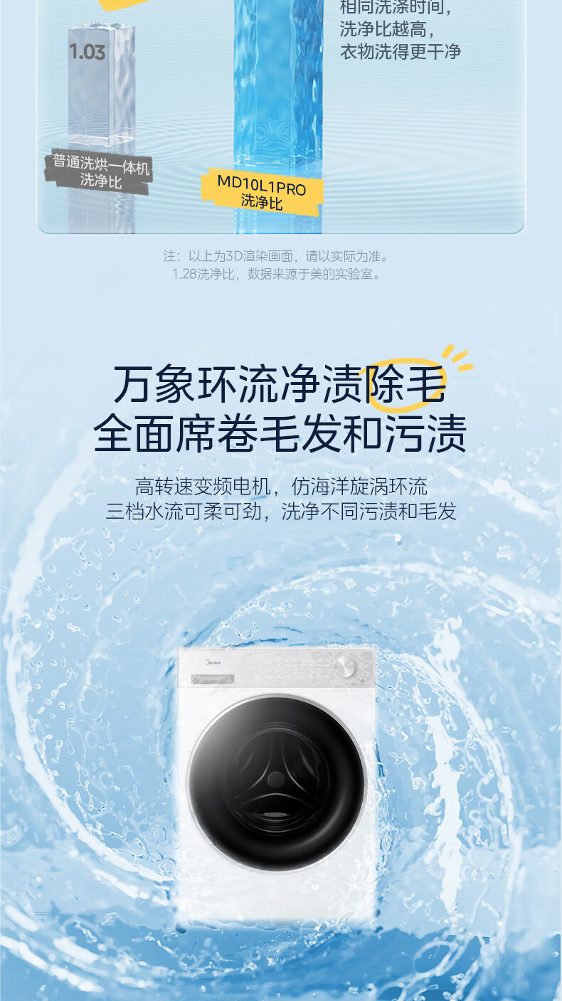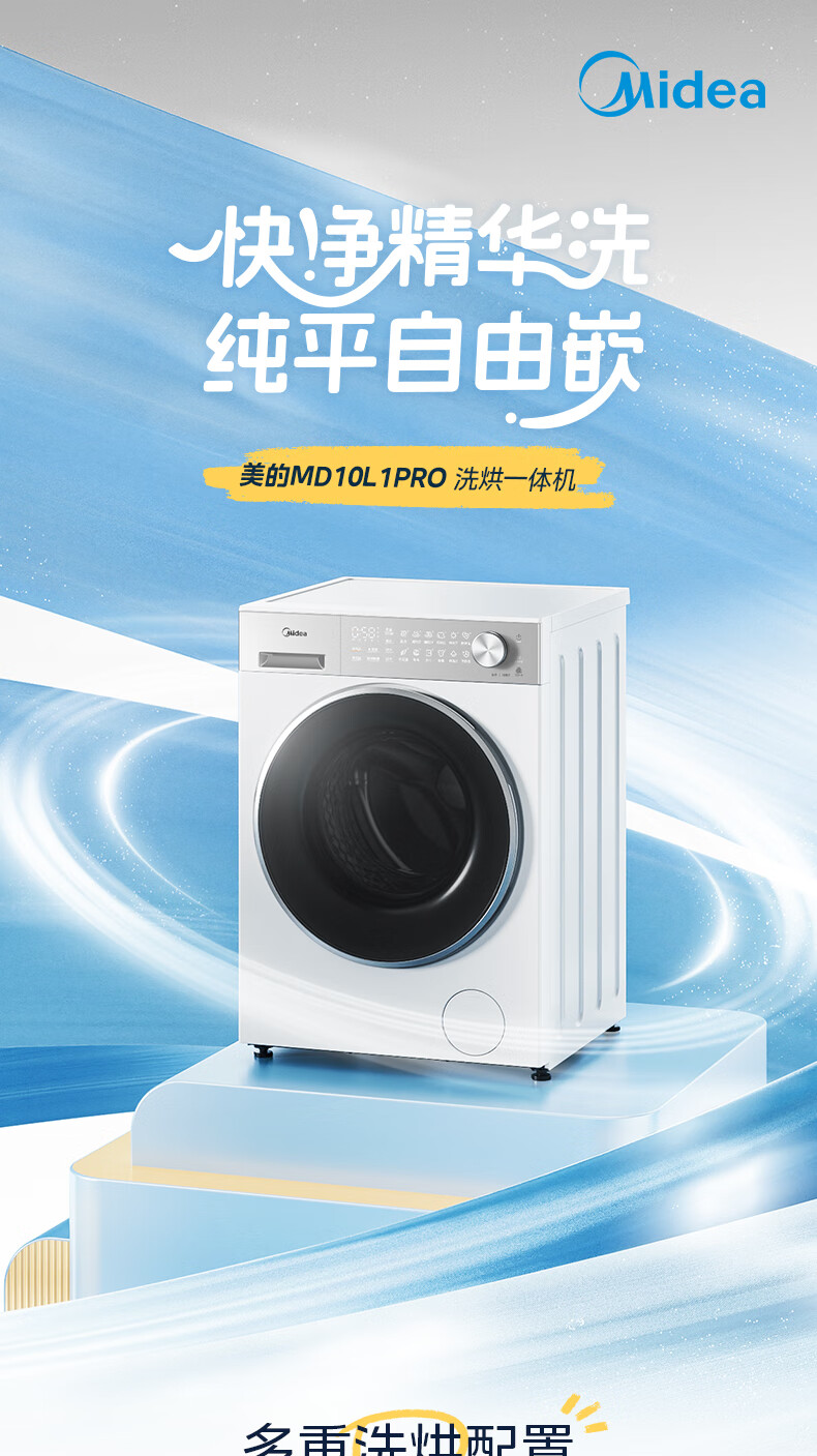美的(Midea)滚筒洗衣机全自动10kg洗烘一体纯平自由嵌1.28高洗净比智能投放AI智能控温湿变频电机一级能效 MD10L1PRO