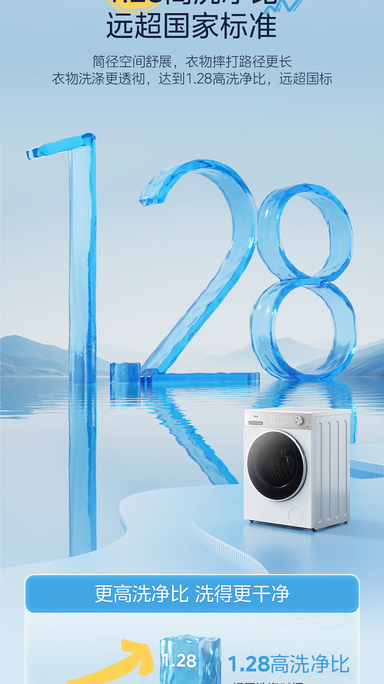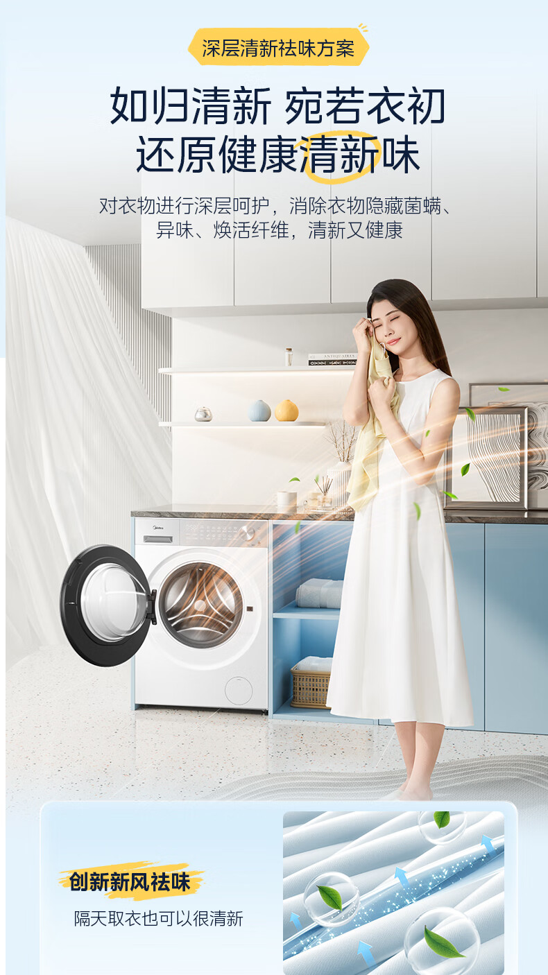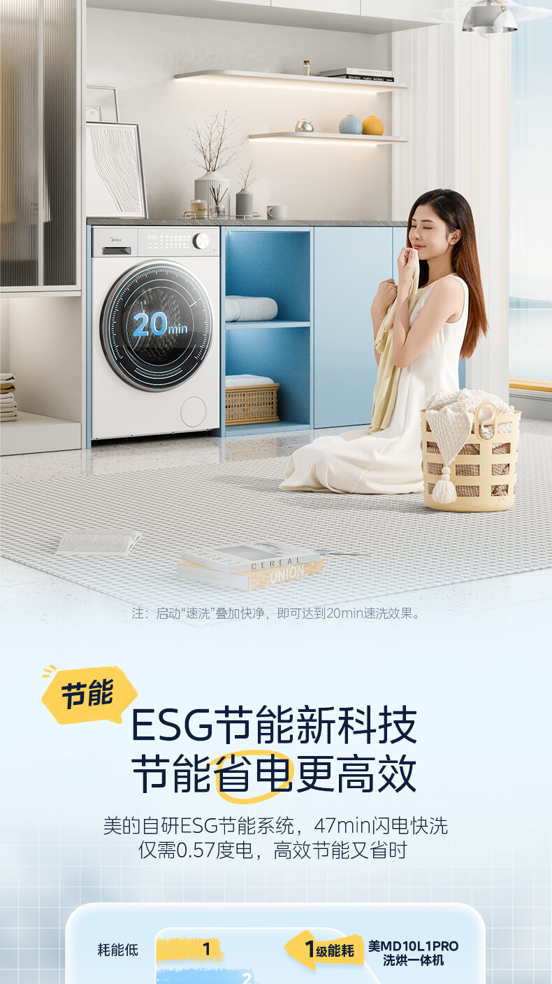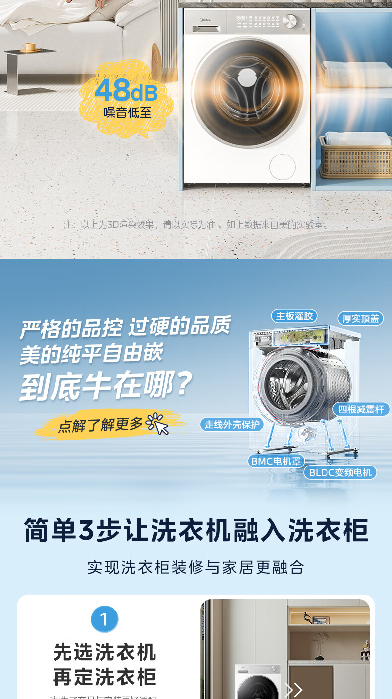 美的(Midea)滚筒洗衣机全自动10kg洗烘一体纯平自由嵌1.28高洗净比智能投放AI智能控温湿变频电机一级能效 MD10L1PRO