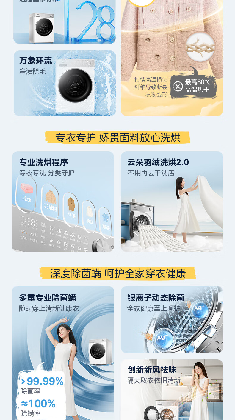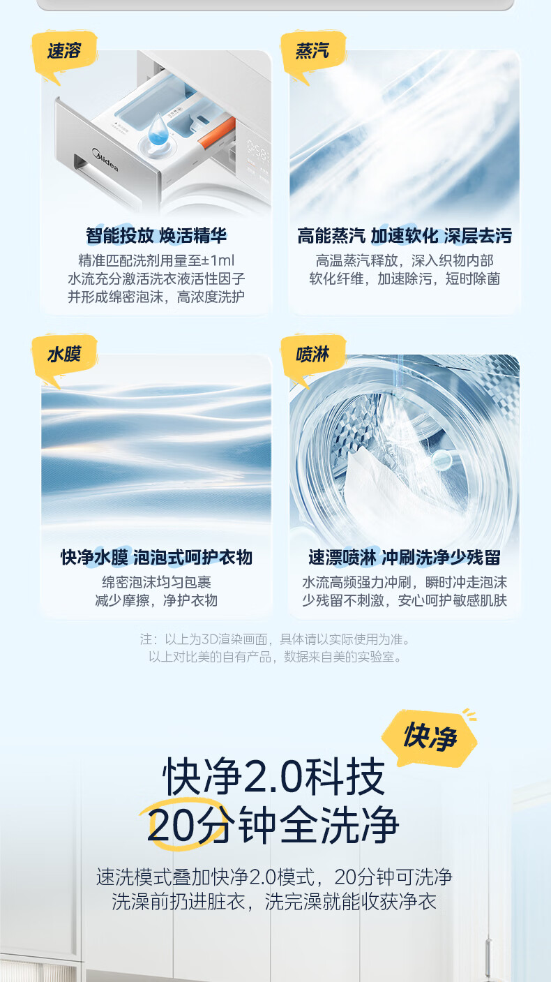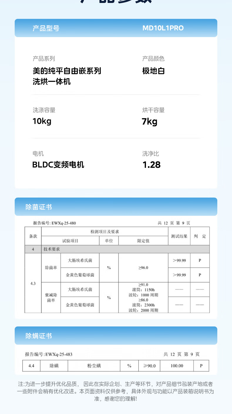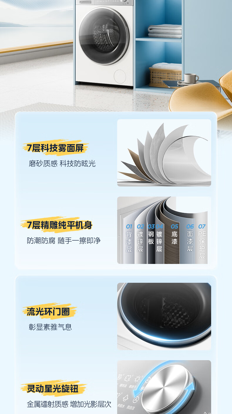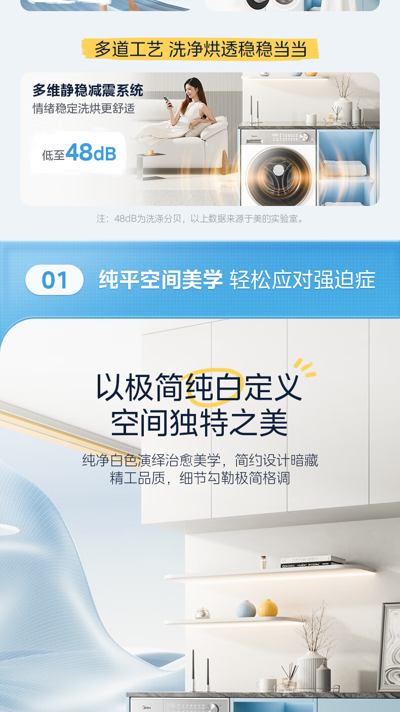 美的(Midea)滚筒洗衣机全自动10kg洗烘一体纯平自由嵌1.28高洗净比智能投放AI智能控温湿变频电机一级能效 MD10L1PRO