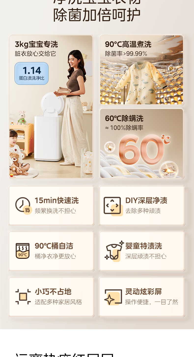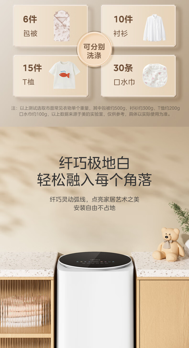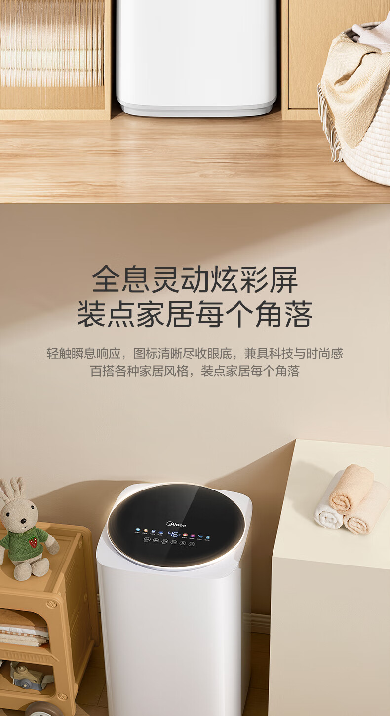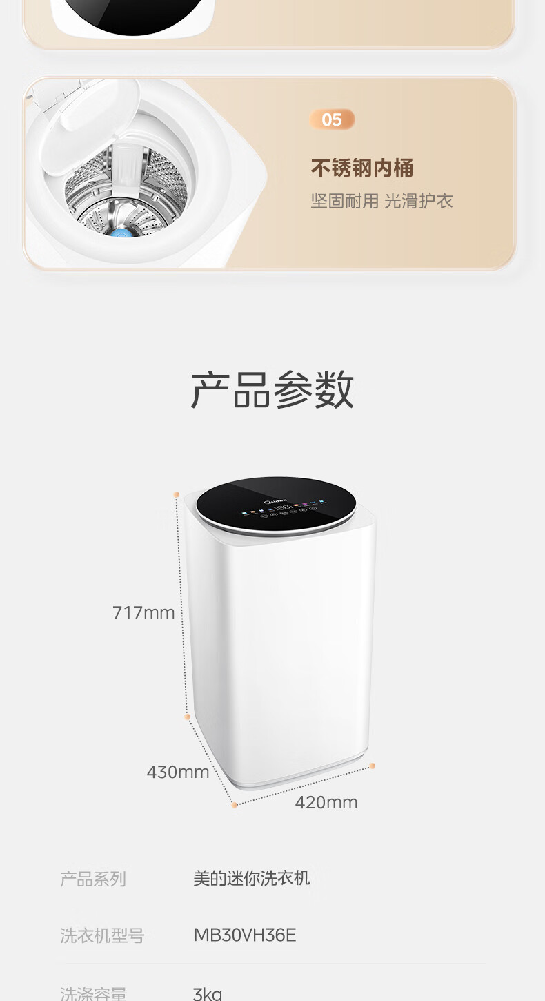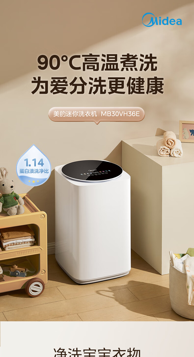 美的(Midea)婴儿洗衣机全自动 3kg小型迷你波轮儿童内衣洗衣机健康除螨洗15分钟快洗二级能效以旧换新 MB30VH36E
