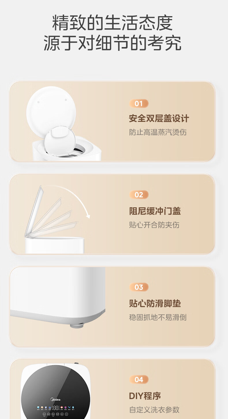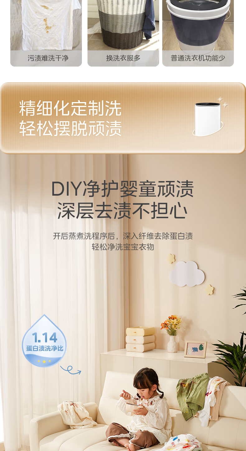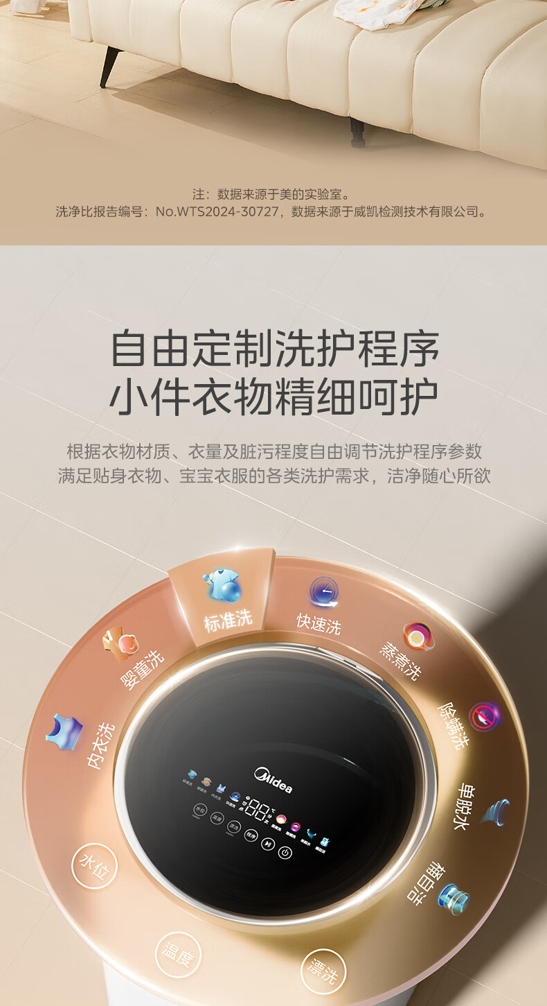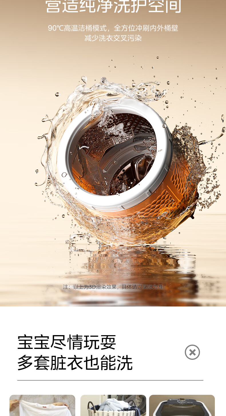美的(Midea)婴儿洗衣机全自动 3kg小型迷你波轮儿童内衣洗衣机健康除螨洗15分钟快洗二级能效以旧换新 MB30VH36E