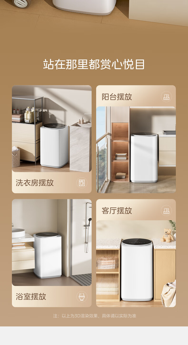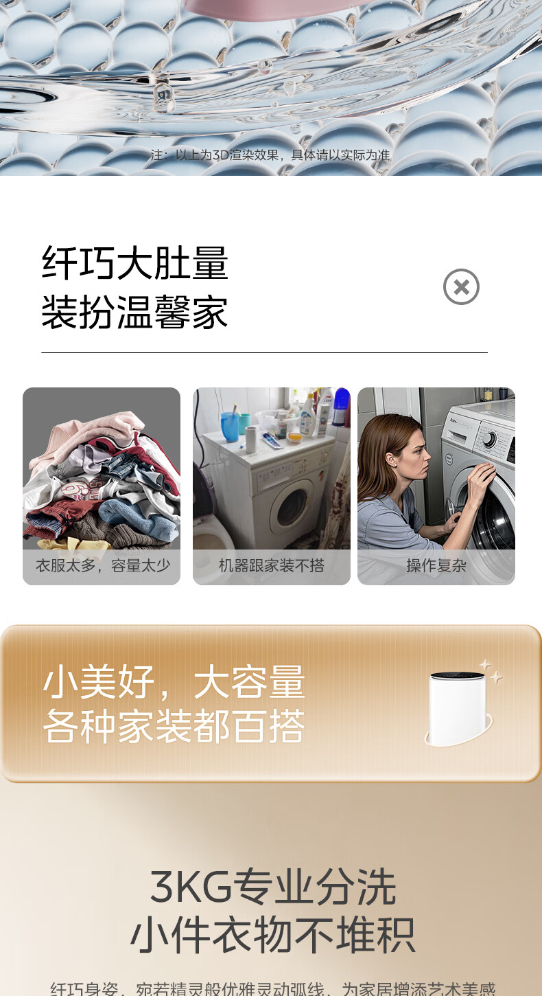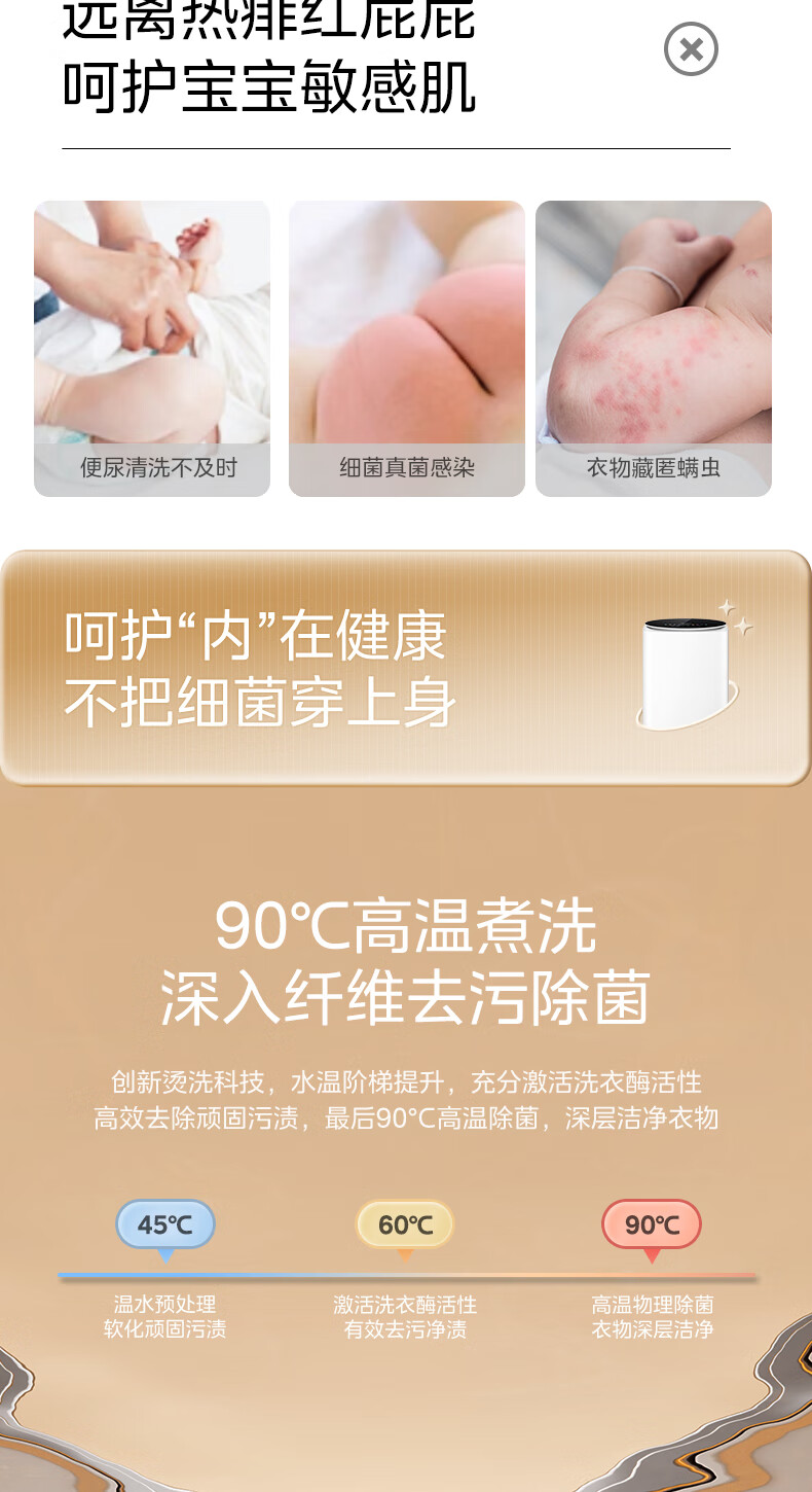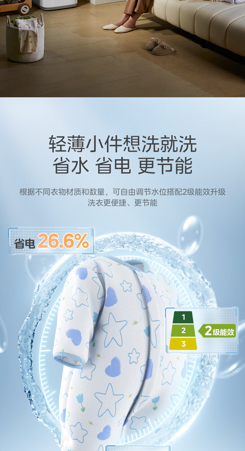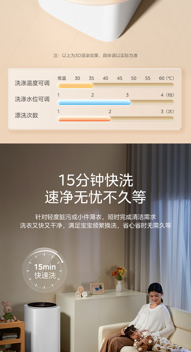 美的(Midea)婴儿洗衣机全自动 3kg小型迷你波轮儿童内衣洗衣机健康除螨洗15分钟快洗二级能效以旧换新 MB30VH36E