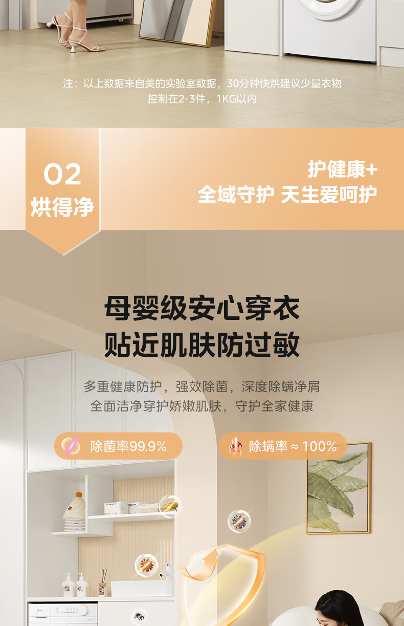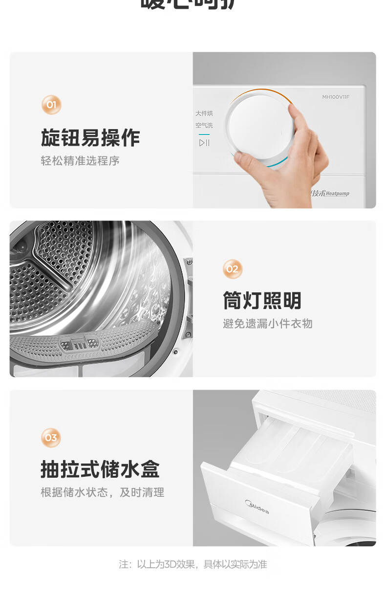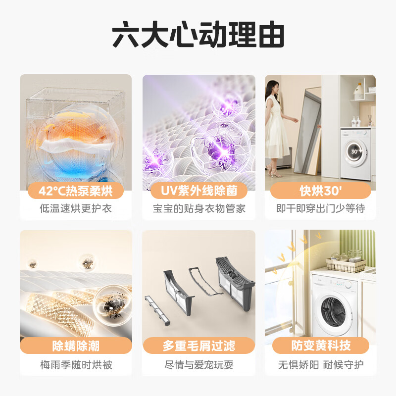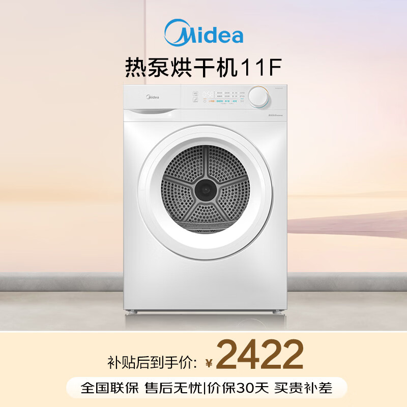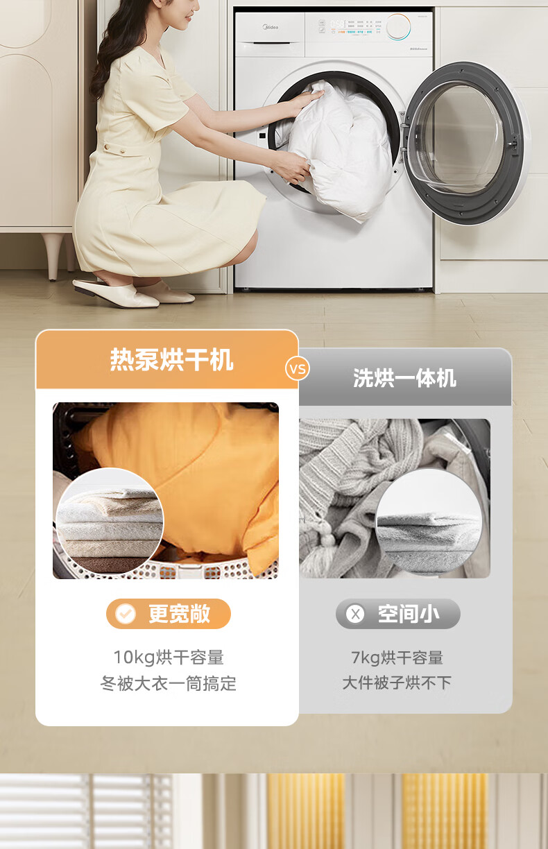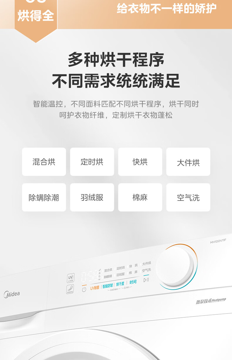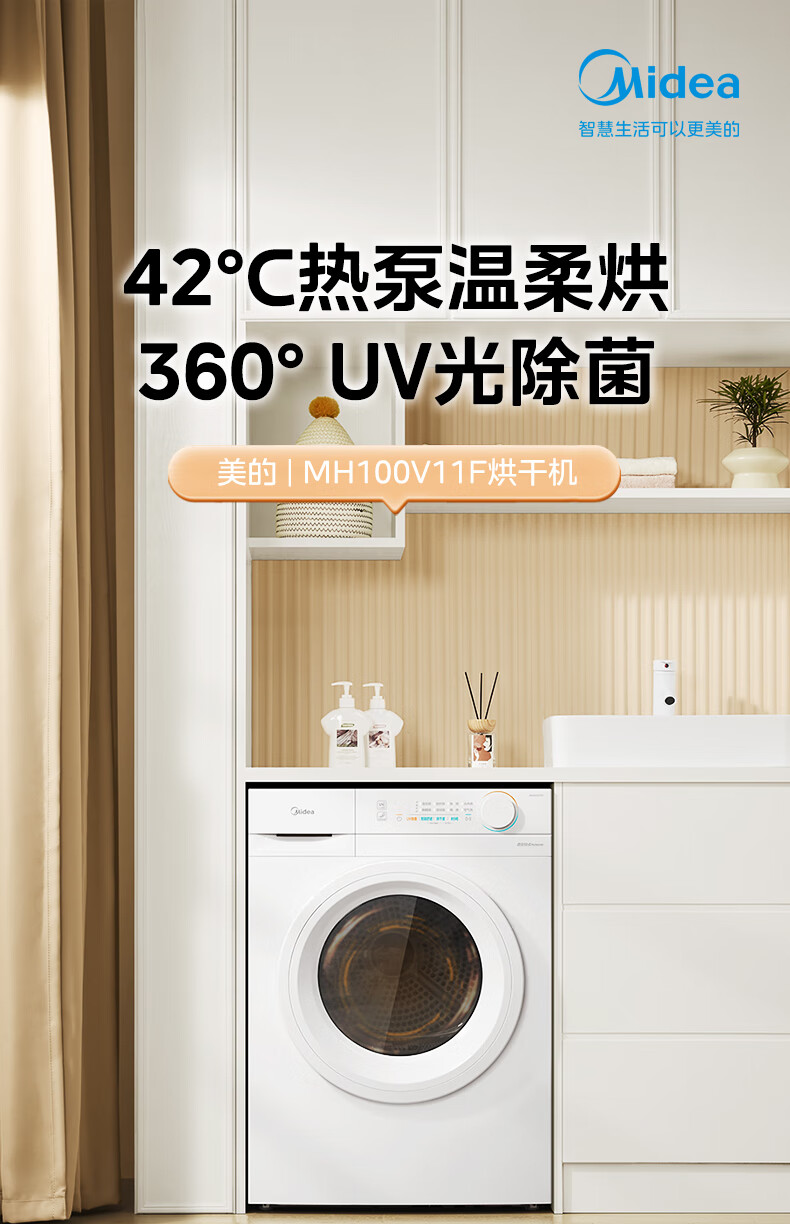 美的(Midea)智能家电热泵式烘干机10公斤家用大容量紫外线除菌除螨消毒滚筒回南天除毛神器以旧换新 【全新上市】MH100V11F