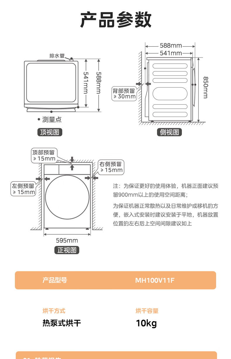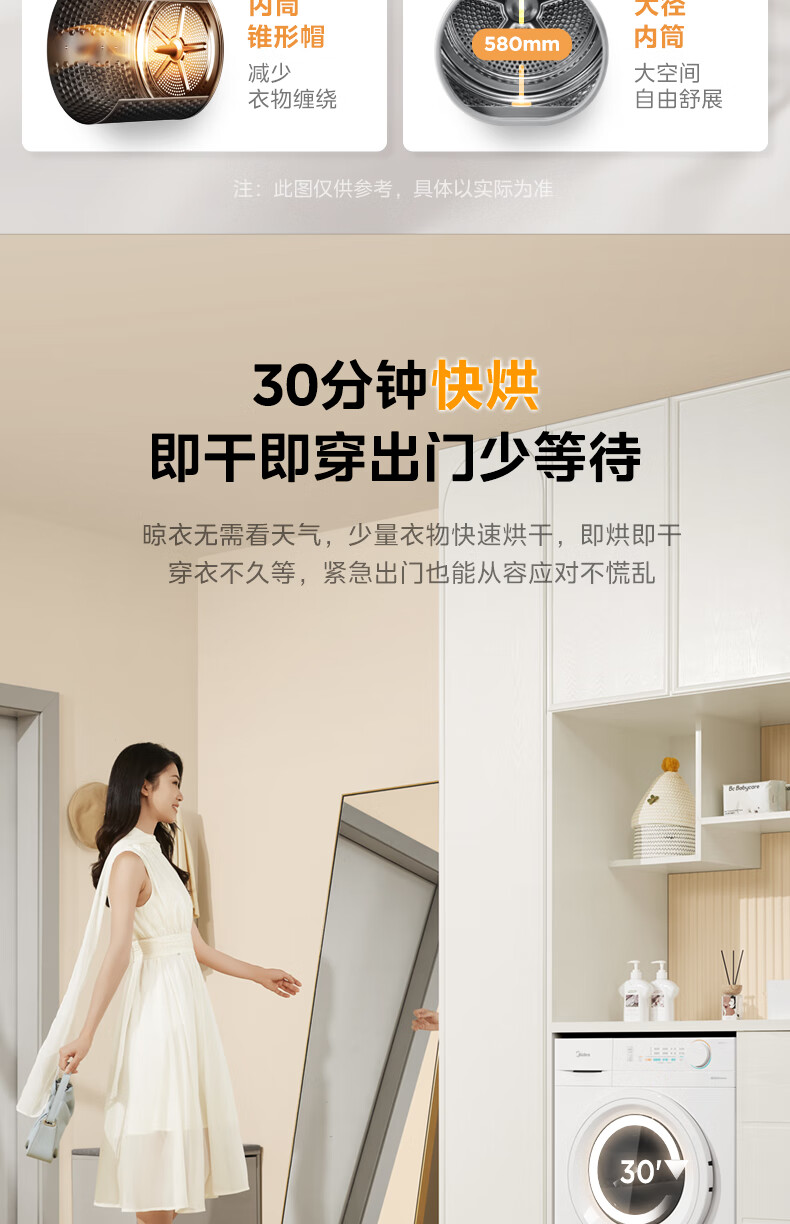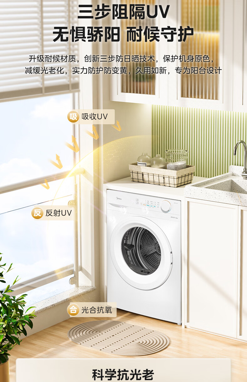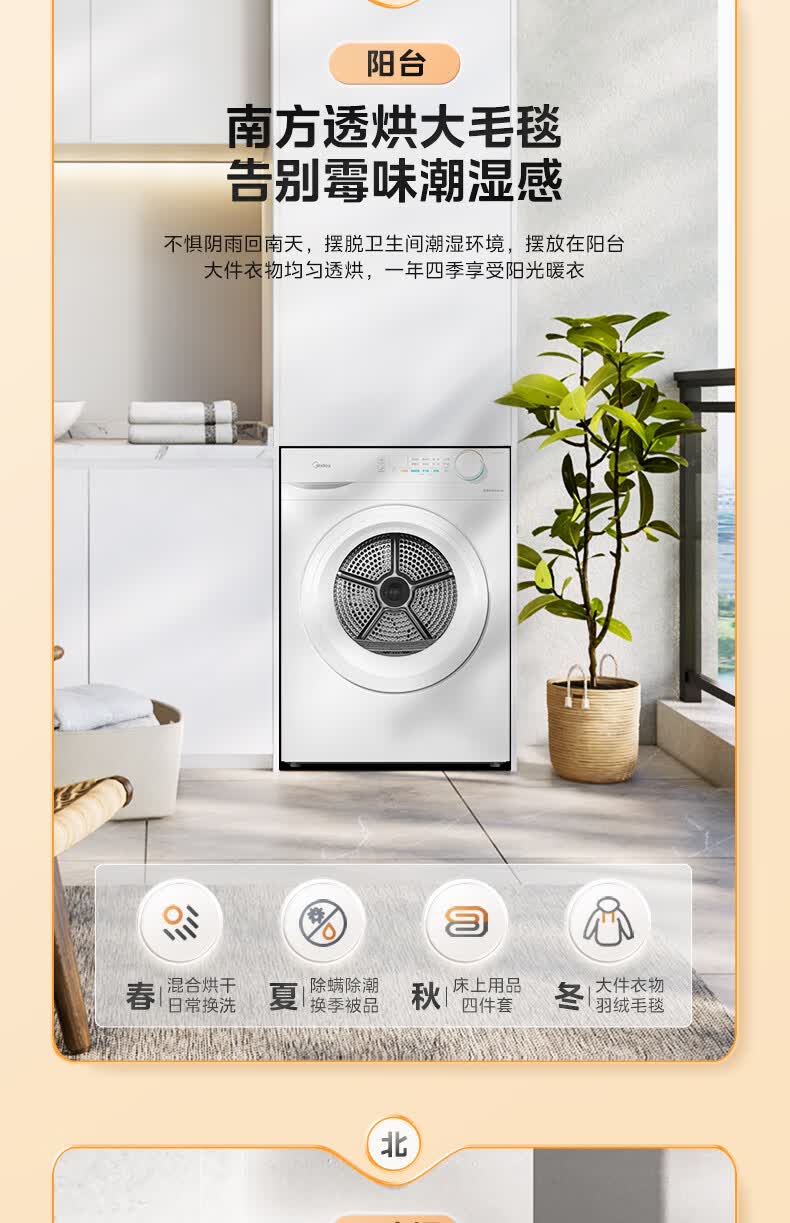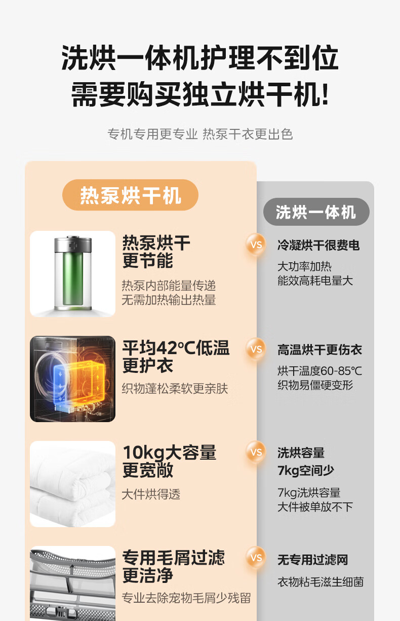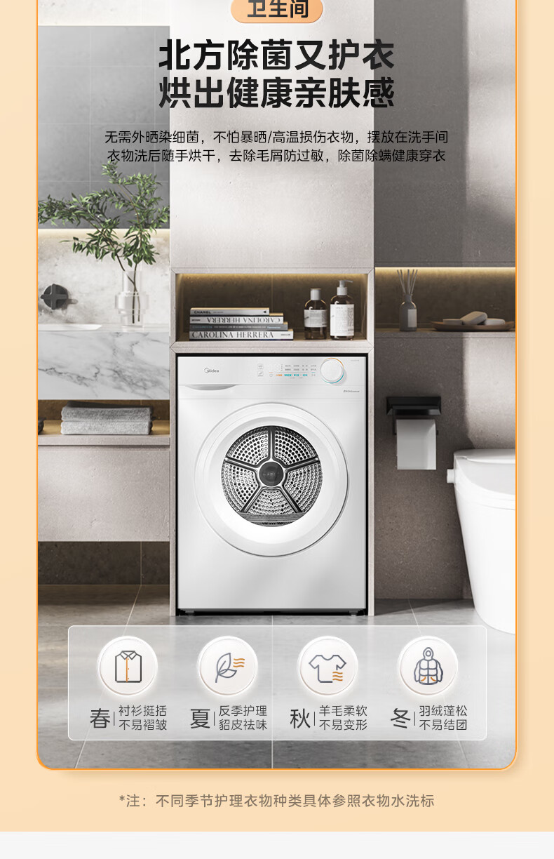 美的(Midea)智能家电热泵式烘干机10公斤家用大容量紫外线除菌除螨消毒滚筒回南天除毛神器以旧换新 【全新上市】MH100V11F