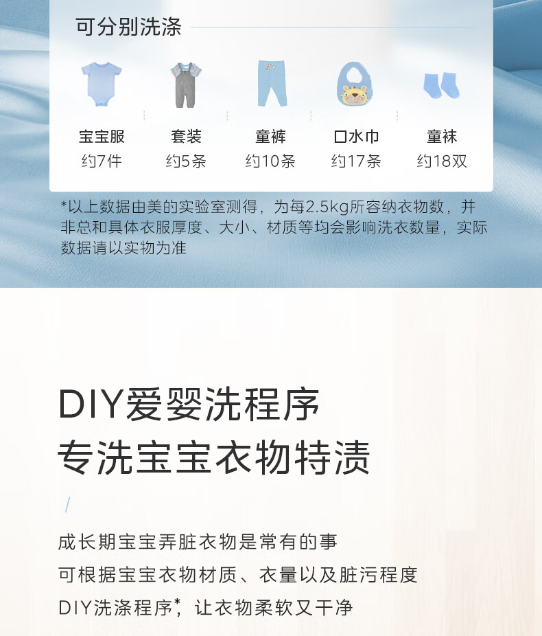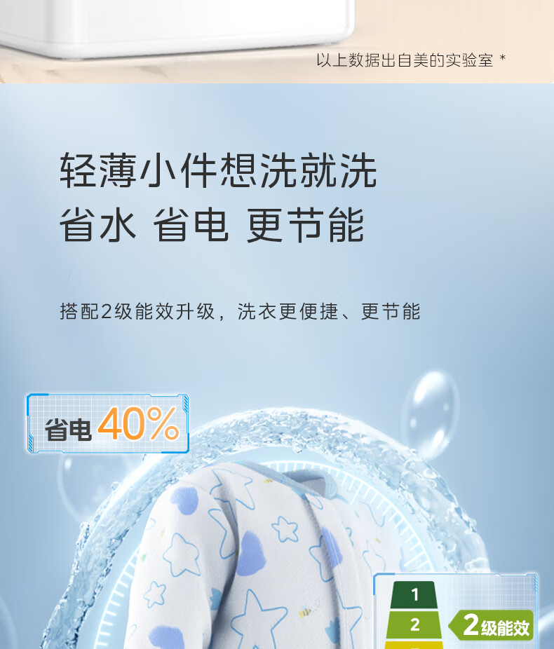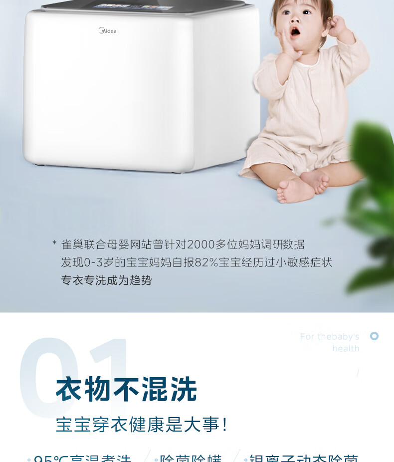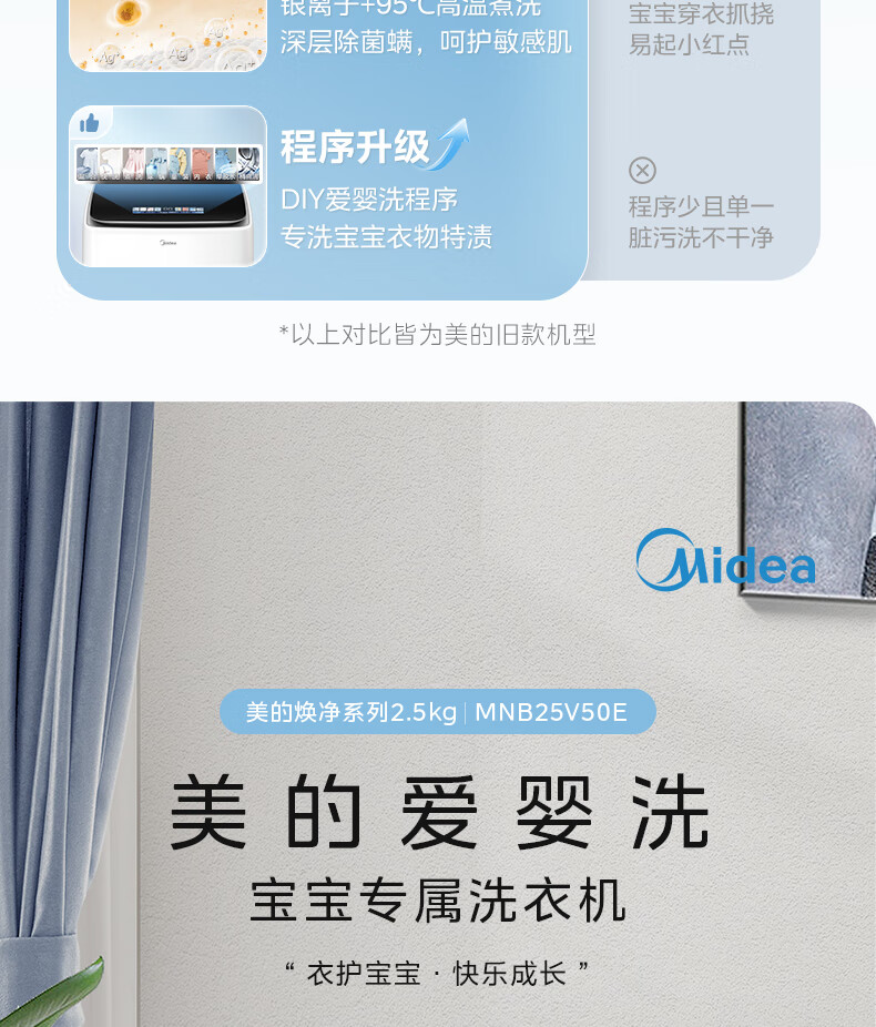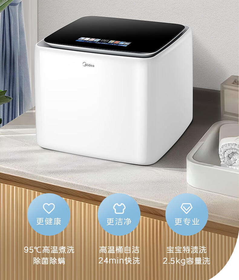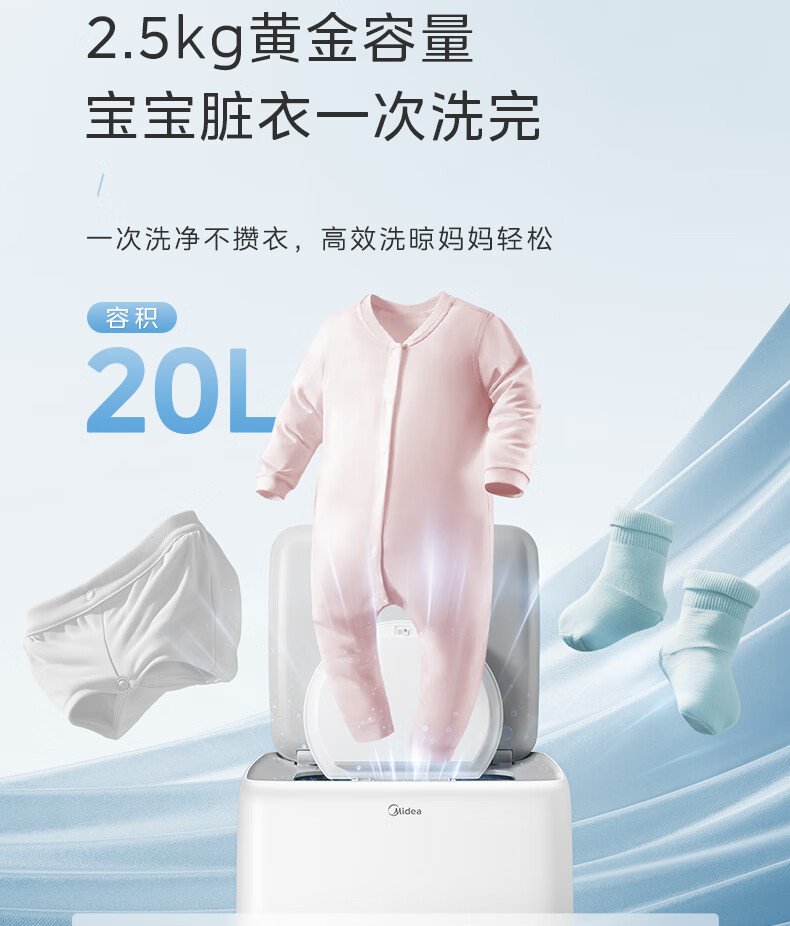 美的(Midea)2.5kg迷你洗衣机全自动焕净内衣洗衣机小型婴儿洗衣机95℃高温煮洗除螨除菌省电省水二级能效 MNB25V50E