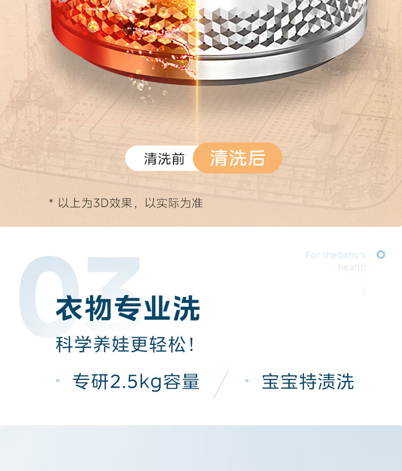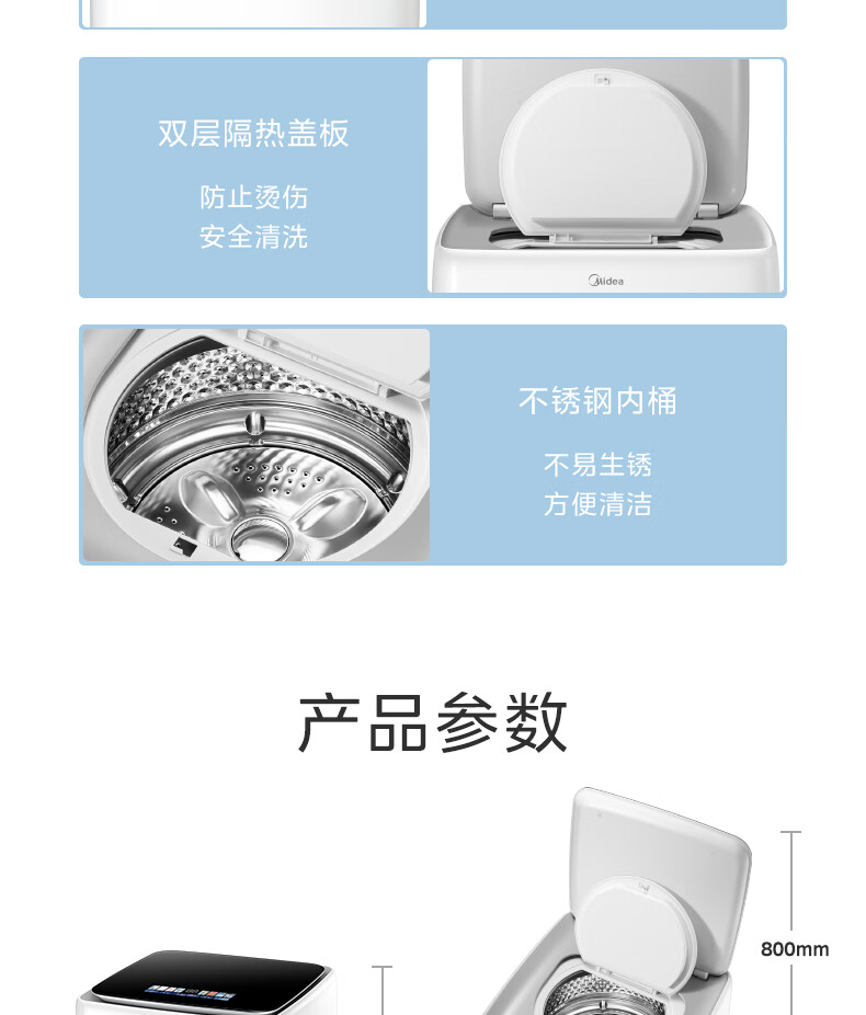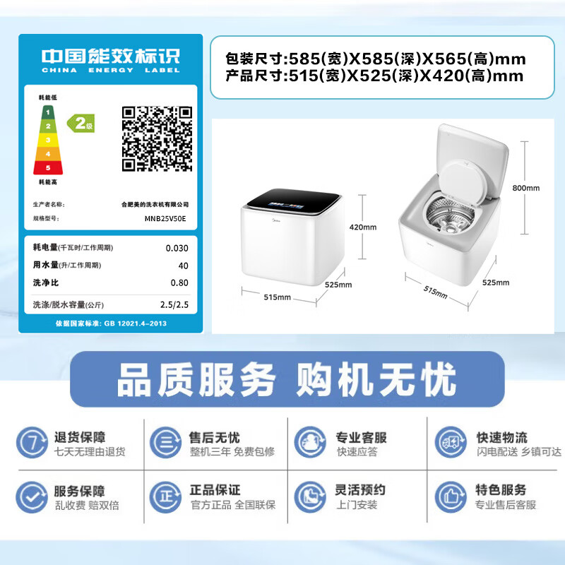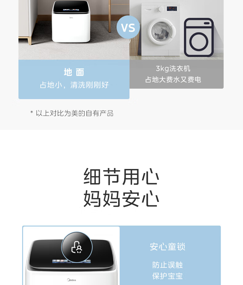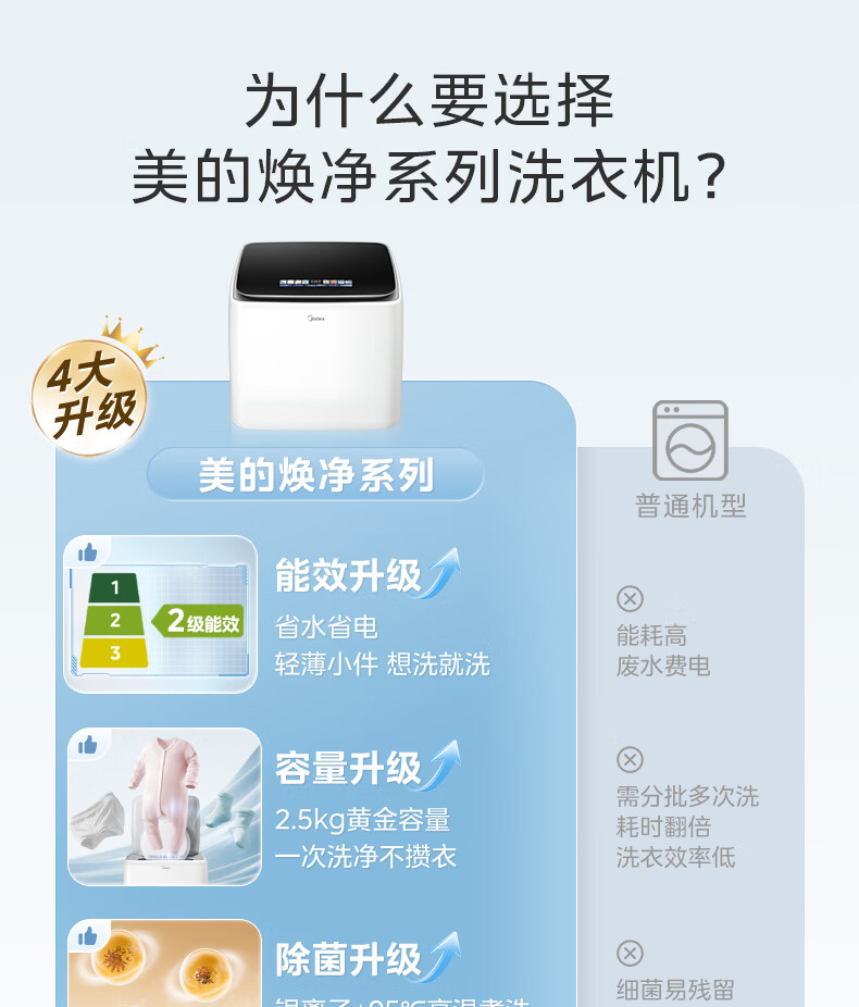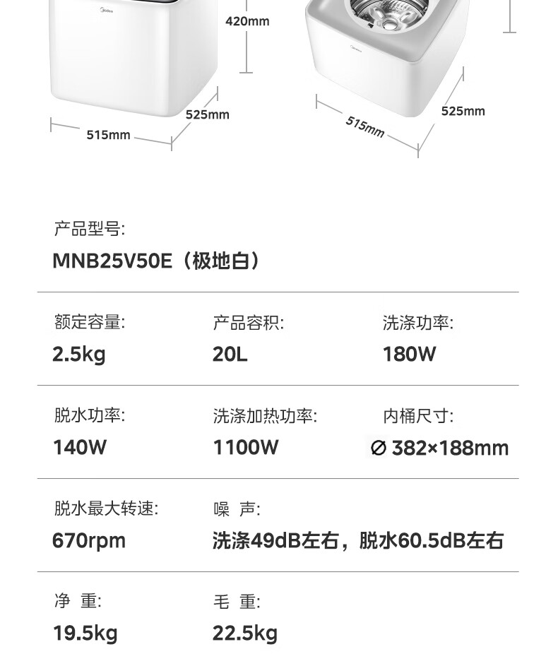 美的(Midea)2.5kg迷你洗衣机全自动焕净内衣洗衣机小型婴儿洗衣机95℃高温煮洗除螨除菌省电省水二级能效 MNB25V50E