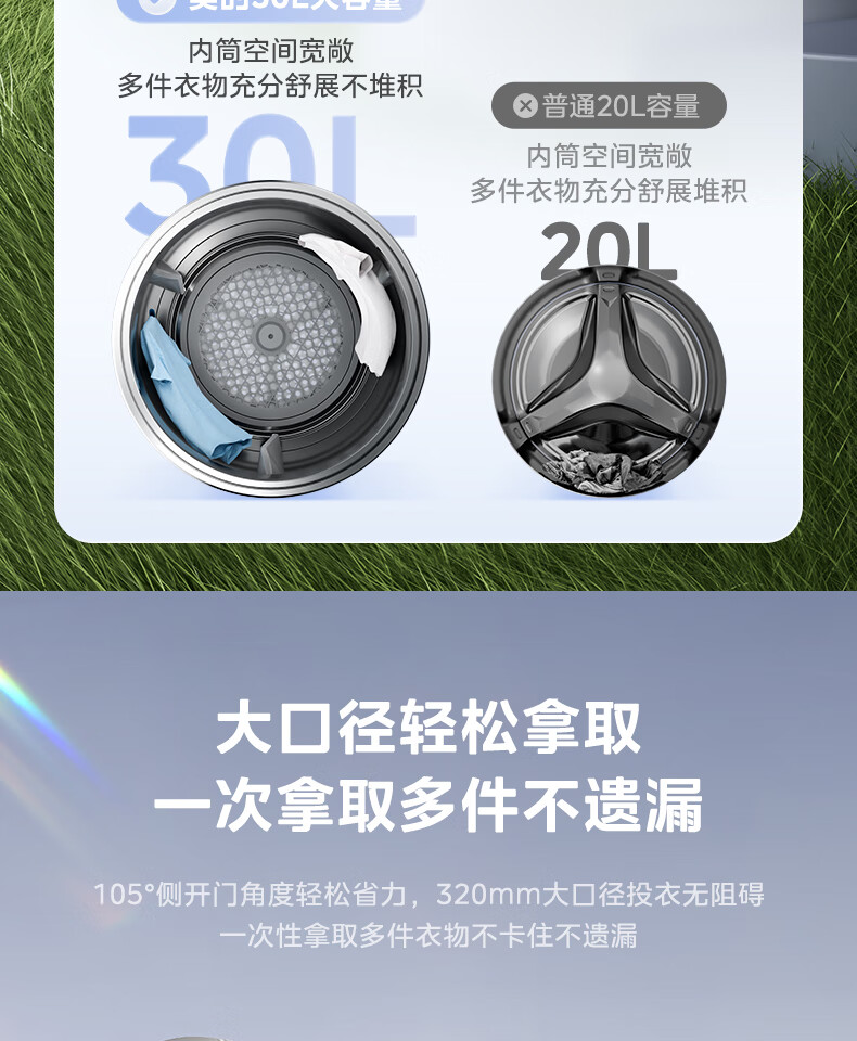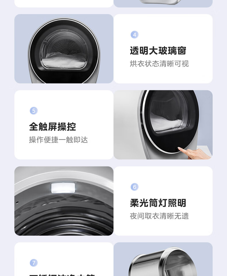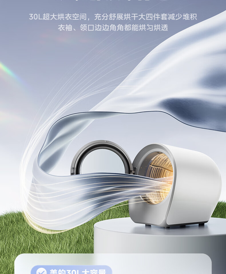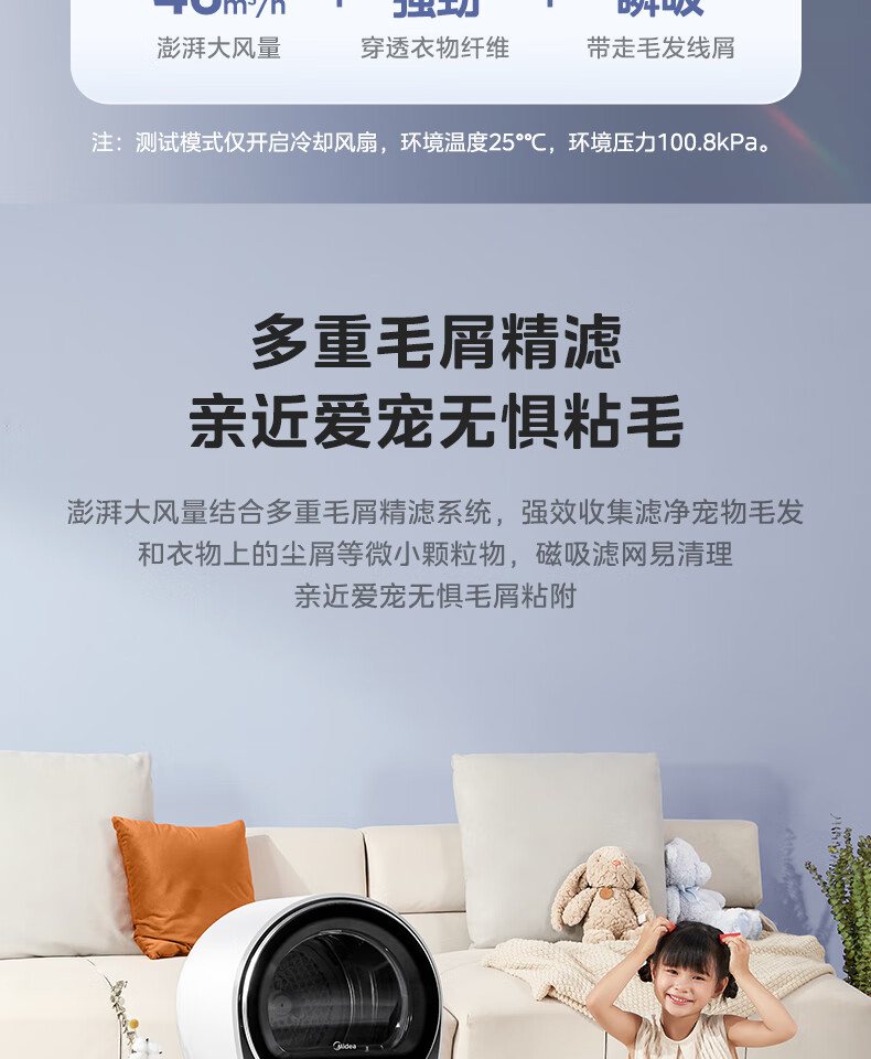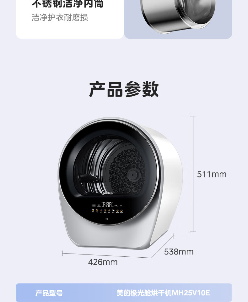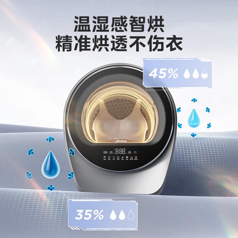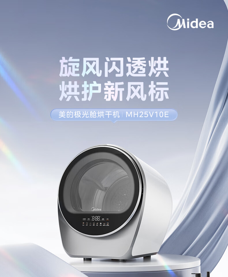 美的(Midea)2.5kg滚筒烘干机极光舱小型迷你烘干机双重除菌除螨即烘即穿双变频回南天以旧换新 MH25V10E