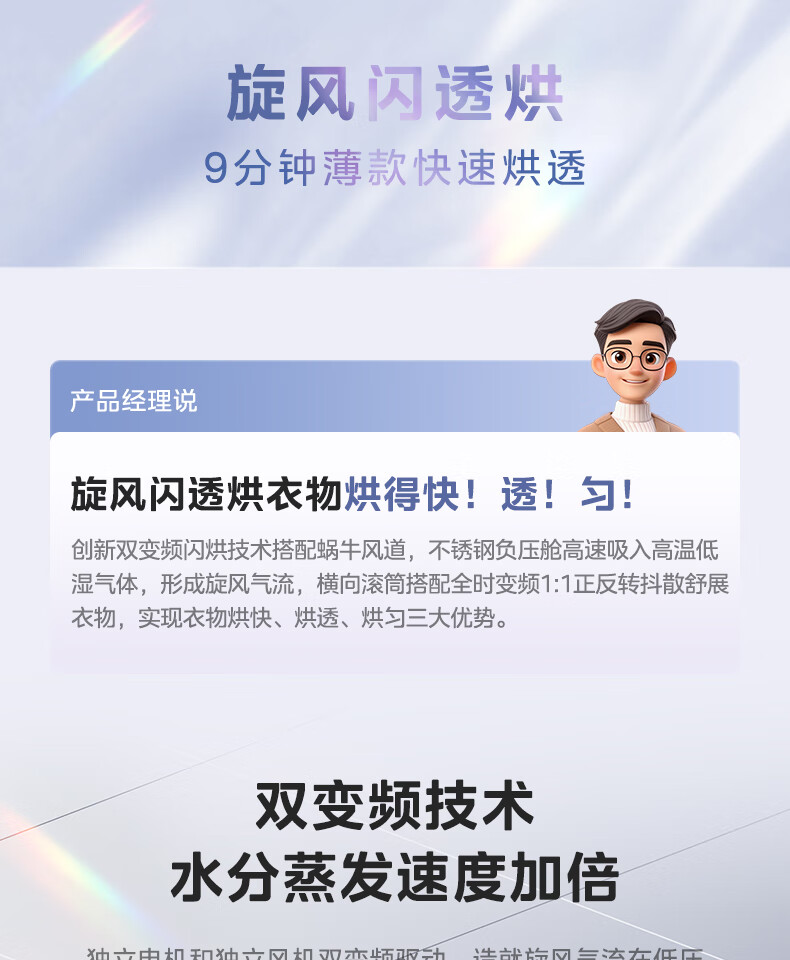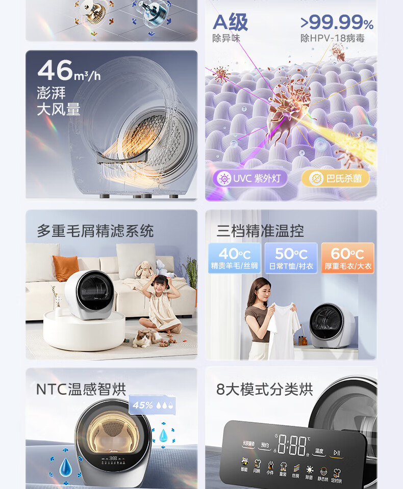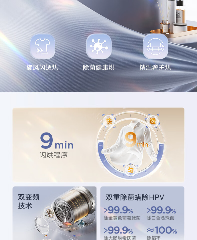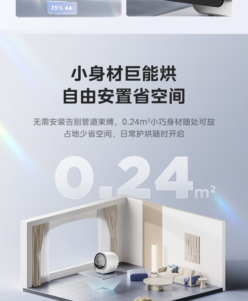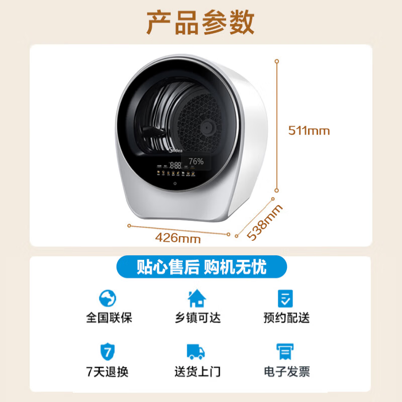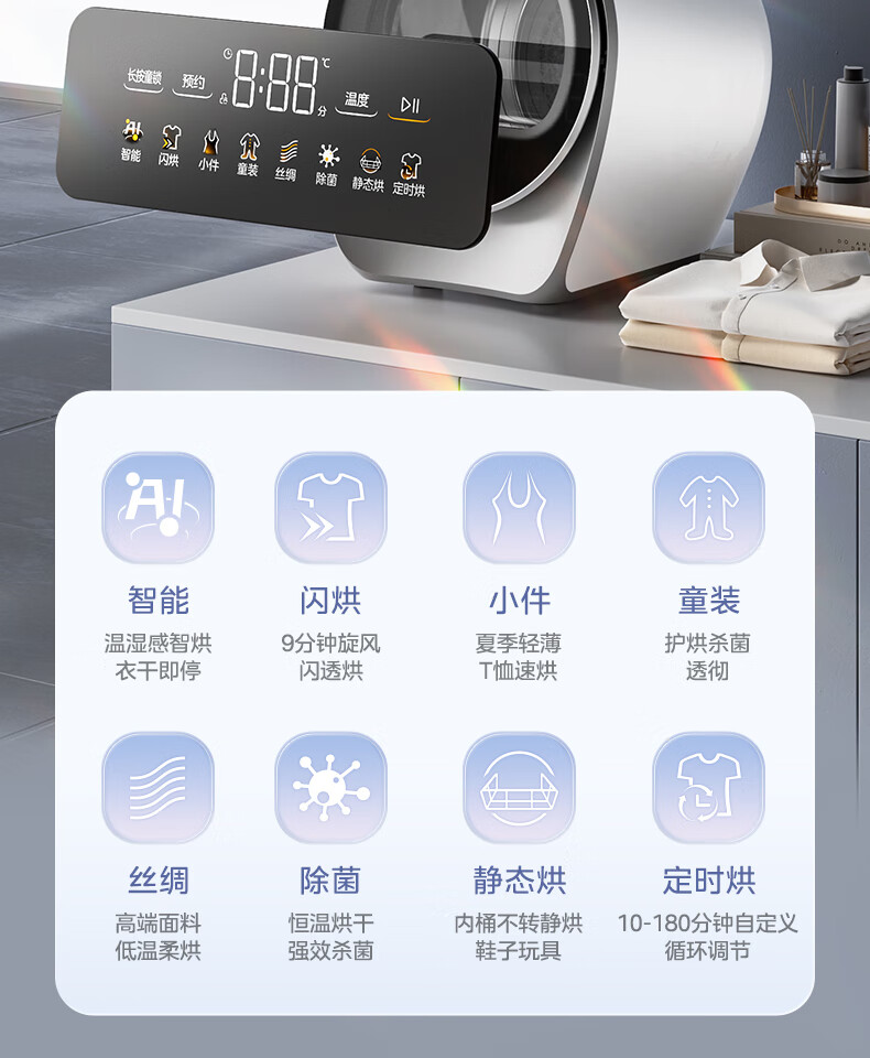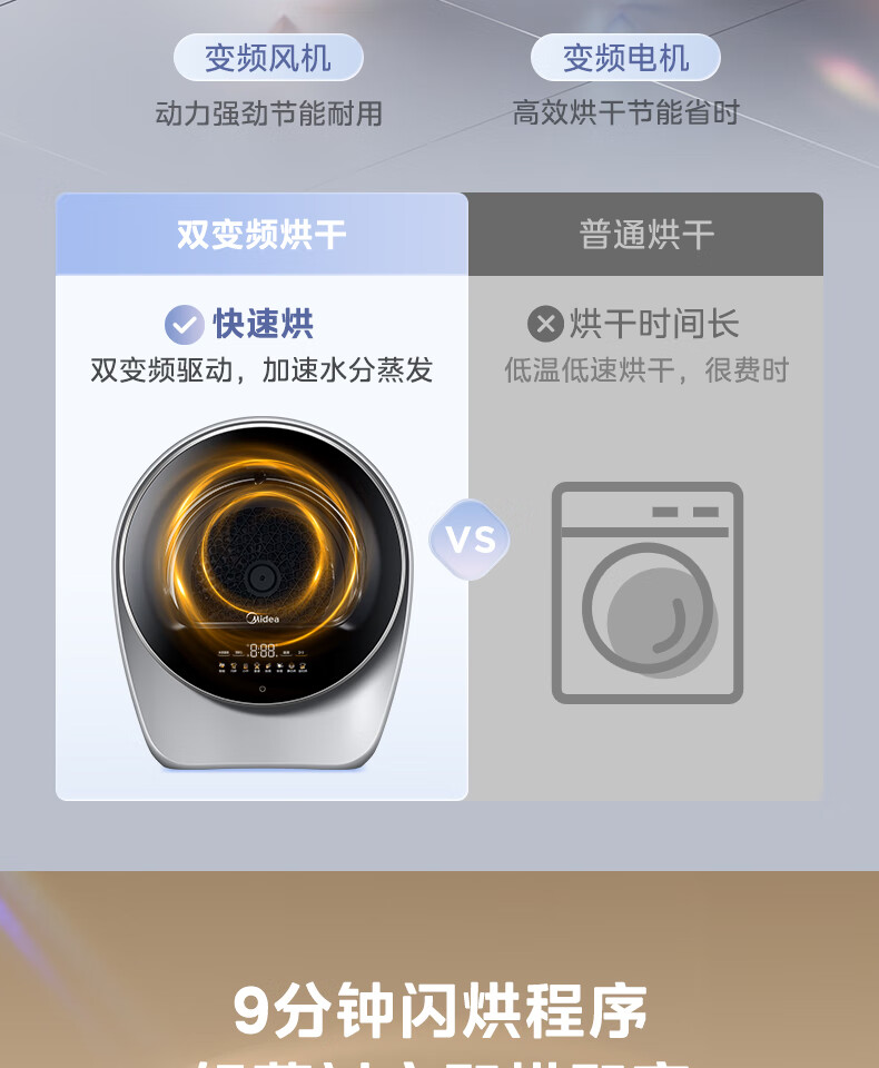 美的(Midea)2.5kg滚筒烘干机极光舱小型迷你烘干机双重除菌除螨即烘即穿双变频回南天以旧换新 MH25V10E