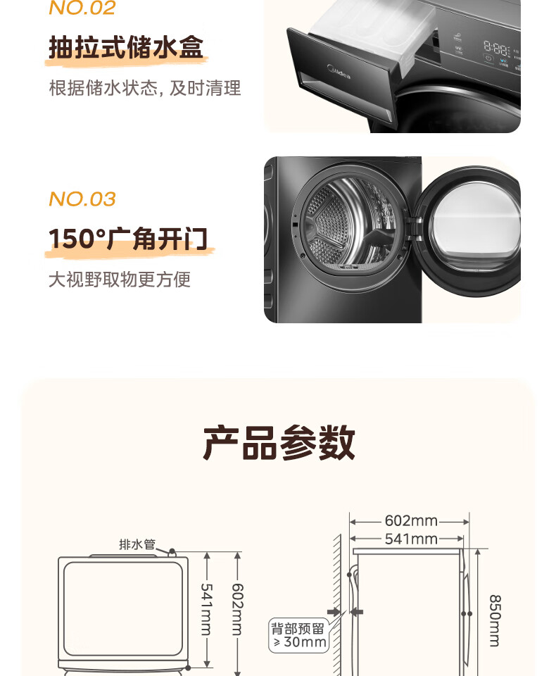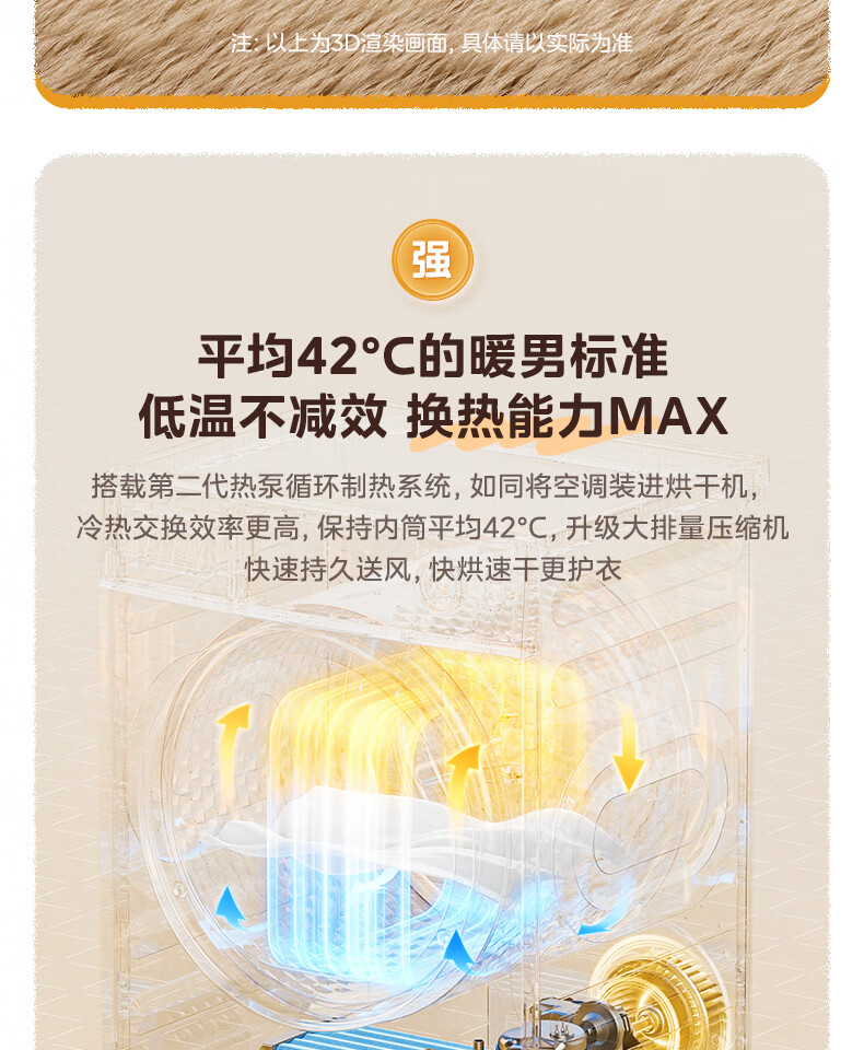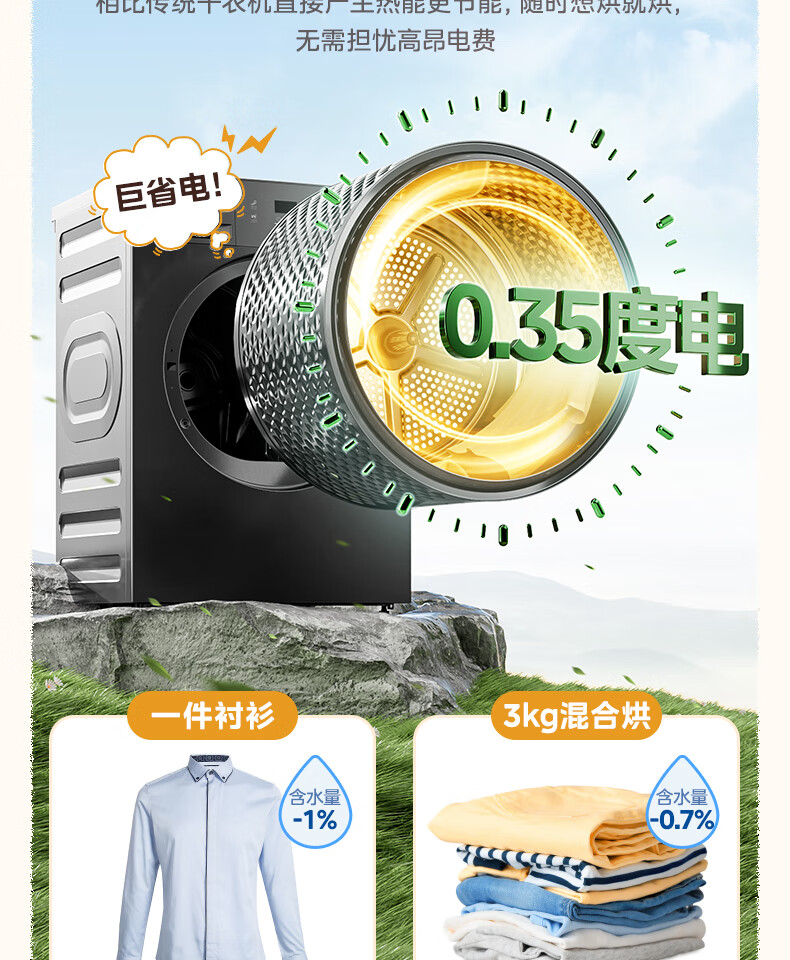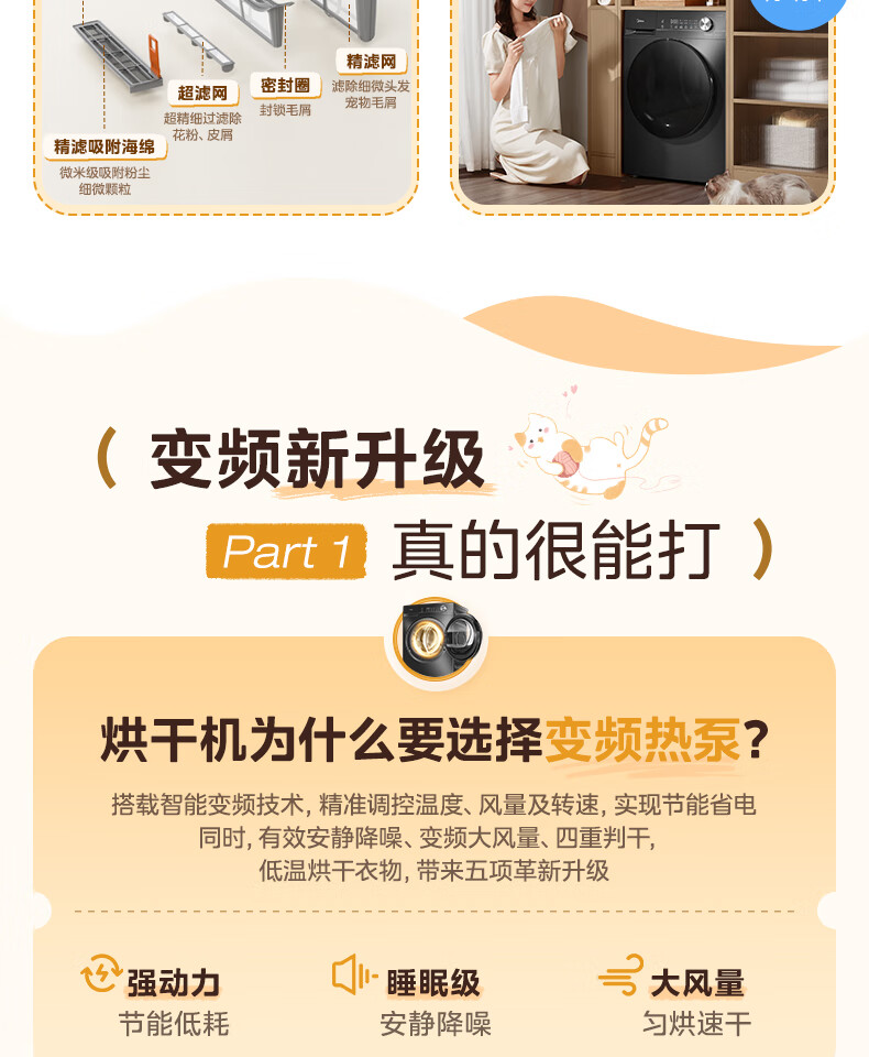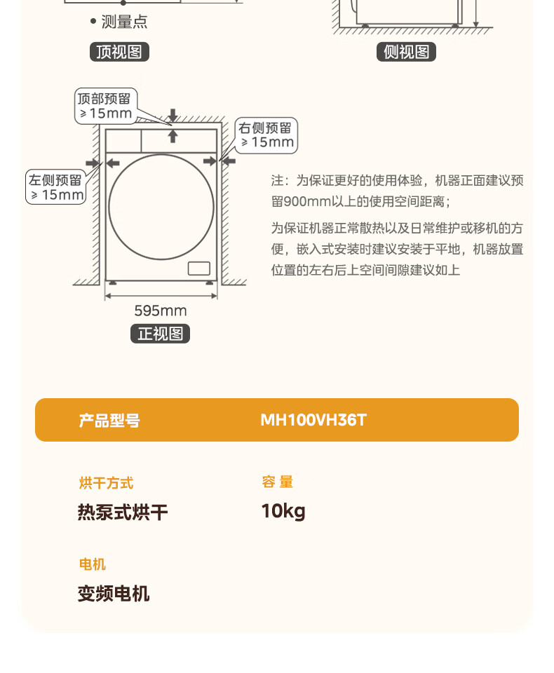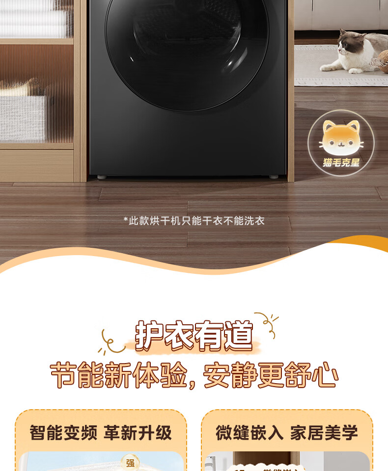 美的(Midea)热泵烘干机全自动10kg家用滚筒式干衣机变频回南天柔声静烘580mm大筒径低温柔烘以旧换新 MH100VH36T
