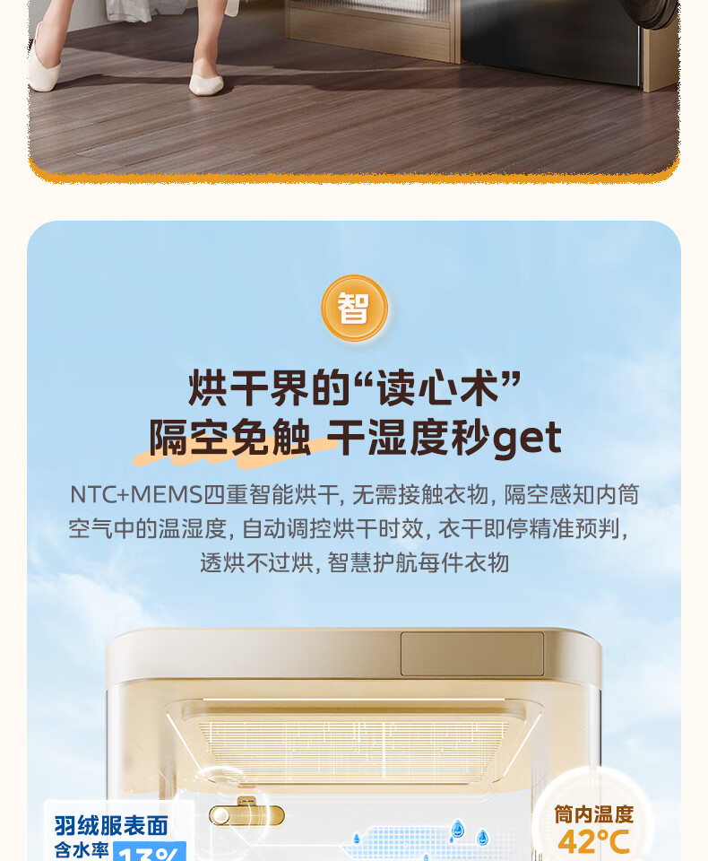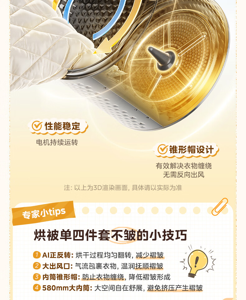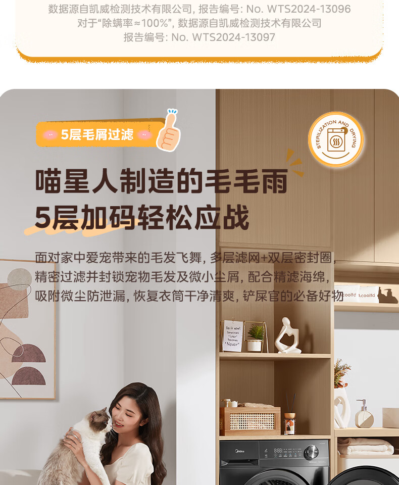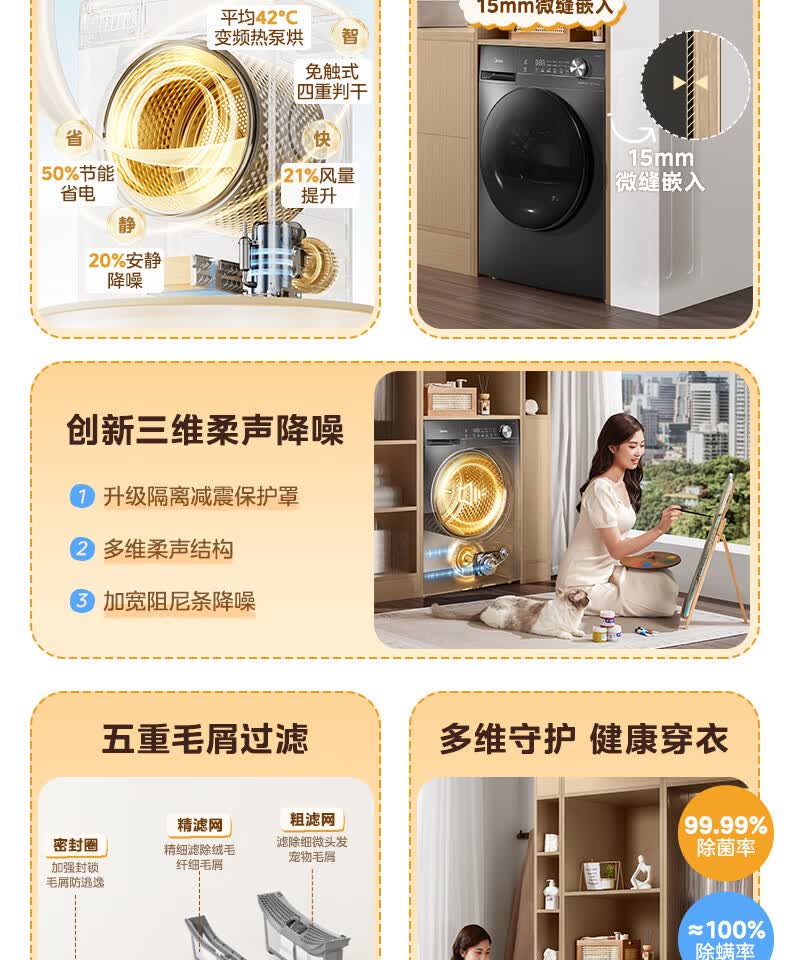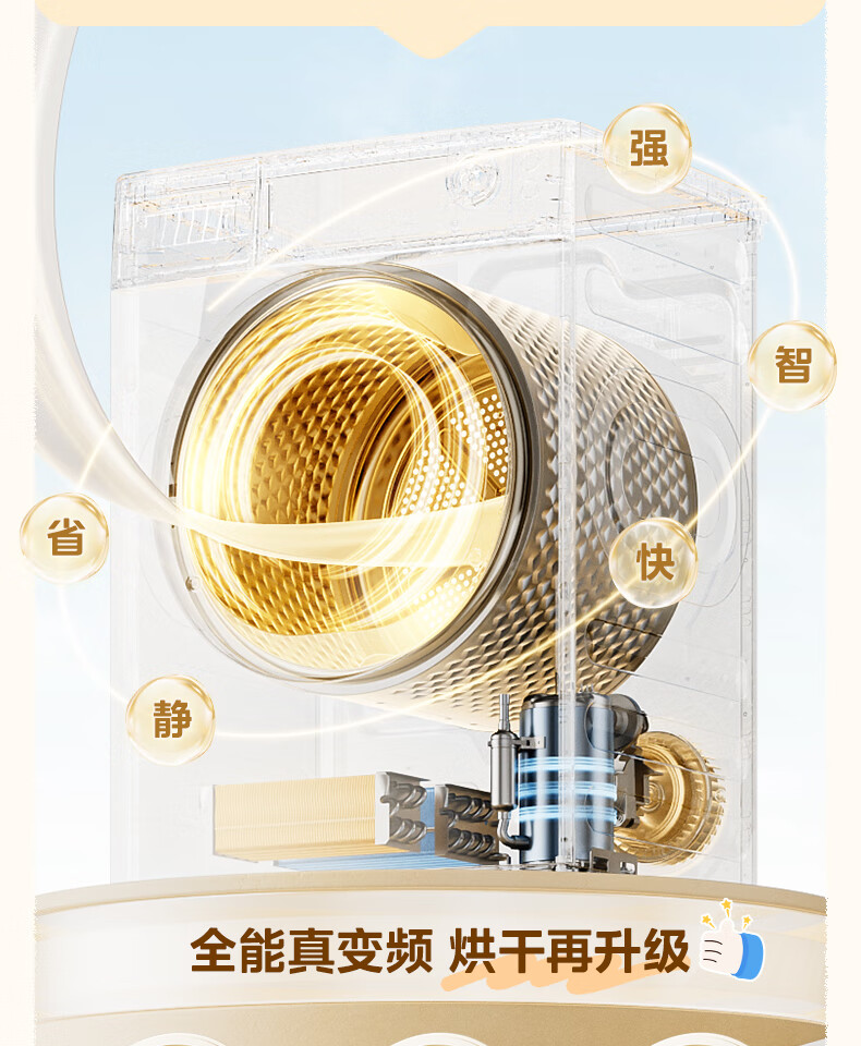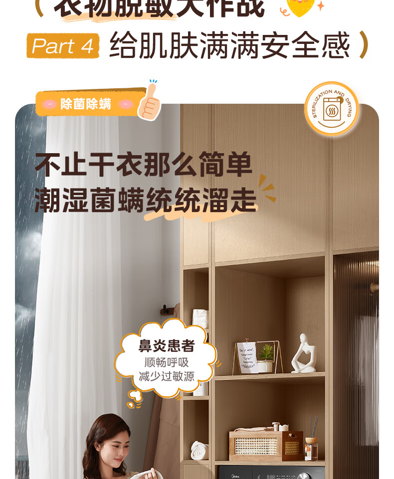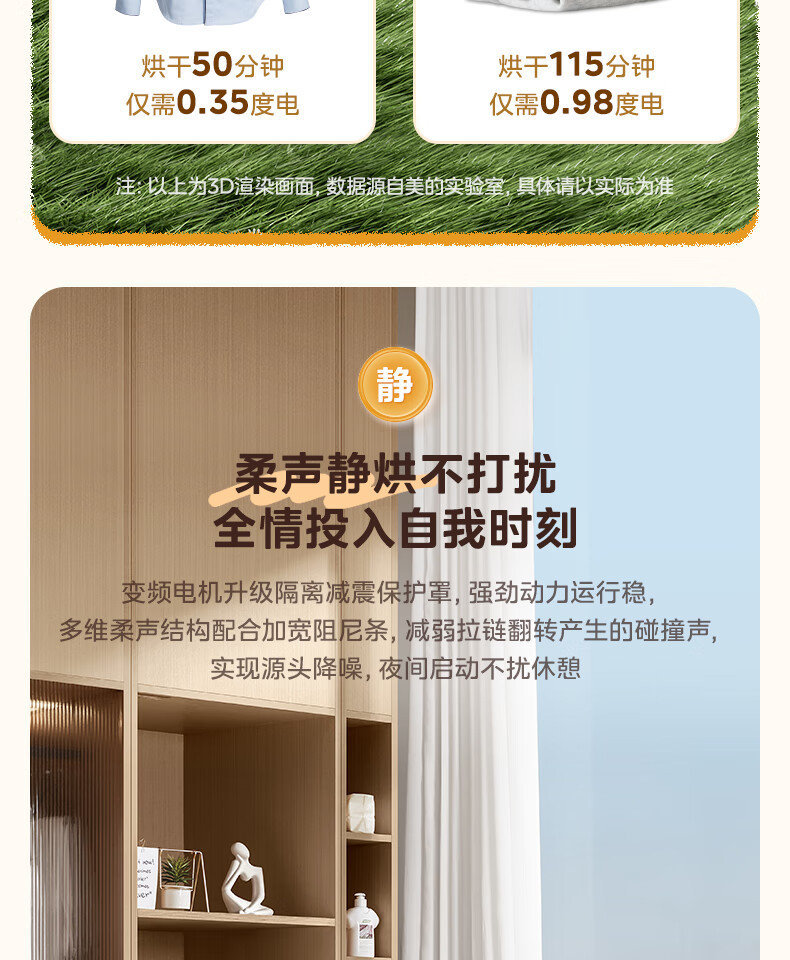 美的(Midea)热泵烘干机全自动10kg家用滚筒式干衣机变频回南天柔声静烘580mm大筒径低温柔烘以旧换新 MH100VH36T