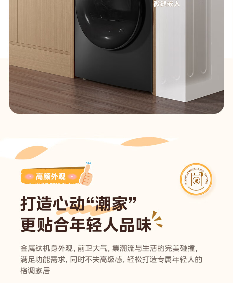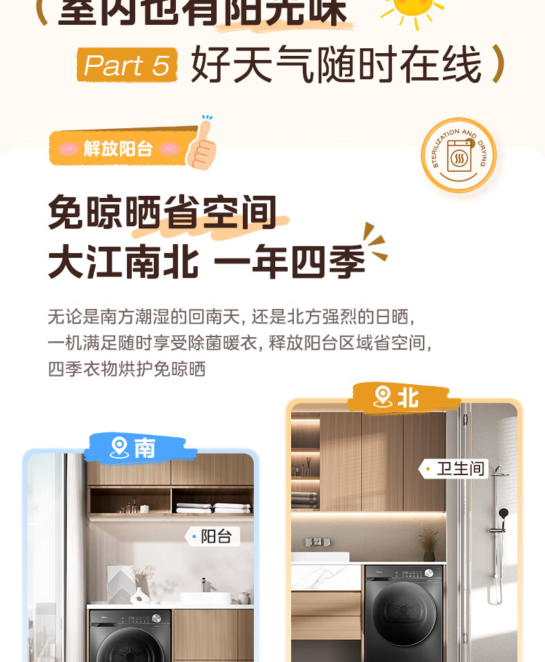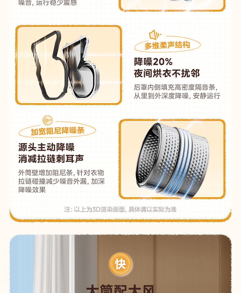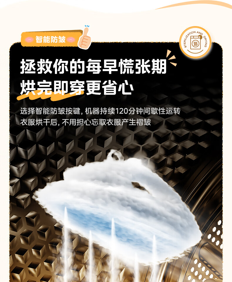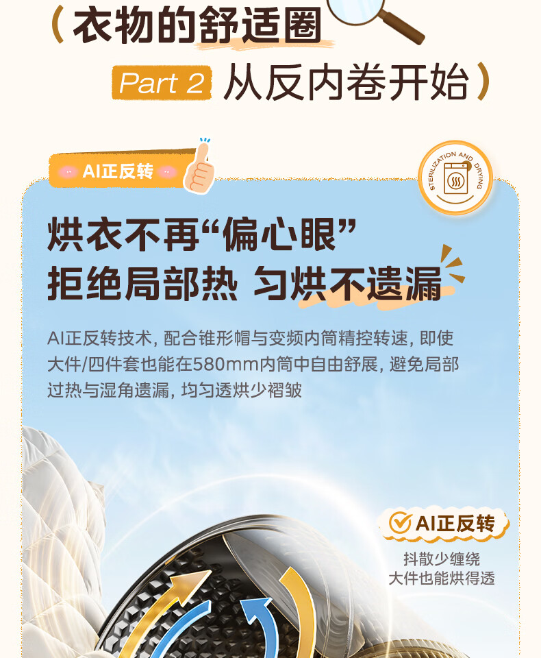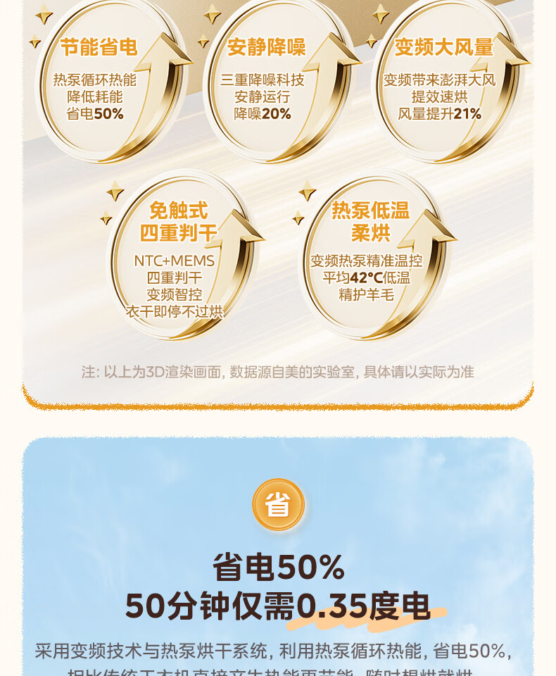 美的(Midea)热泵烘干机全自动10kg家用滚筒式干衣机变频回南天柔声静烘580mm大筒径低温柔烘以旧换新 MH100VH36T