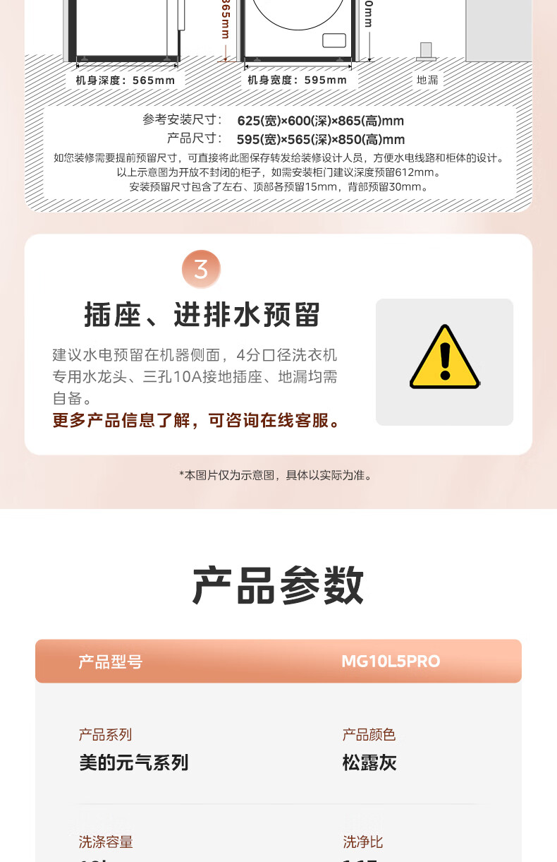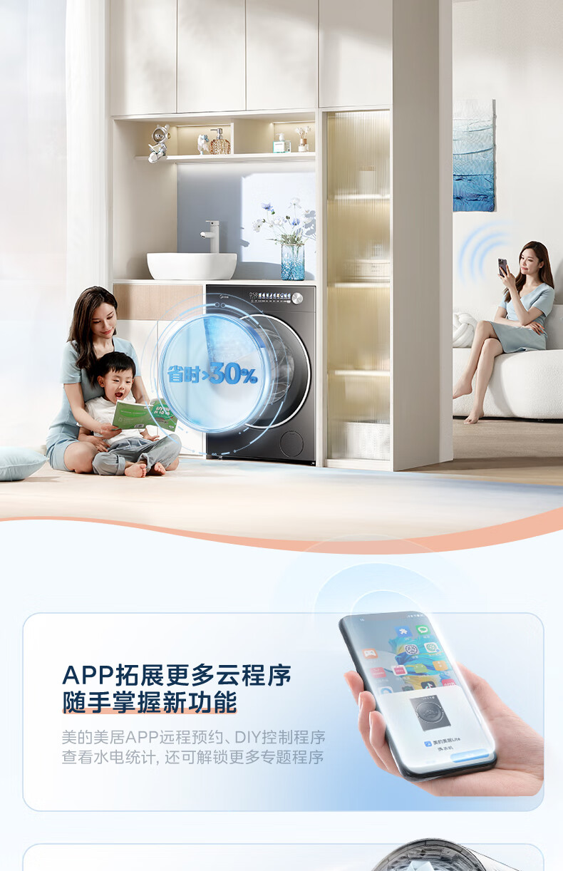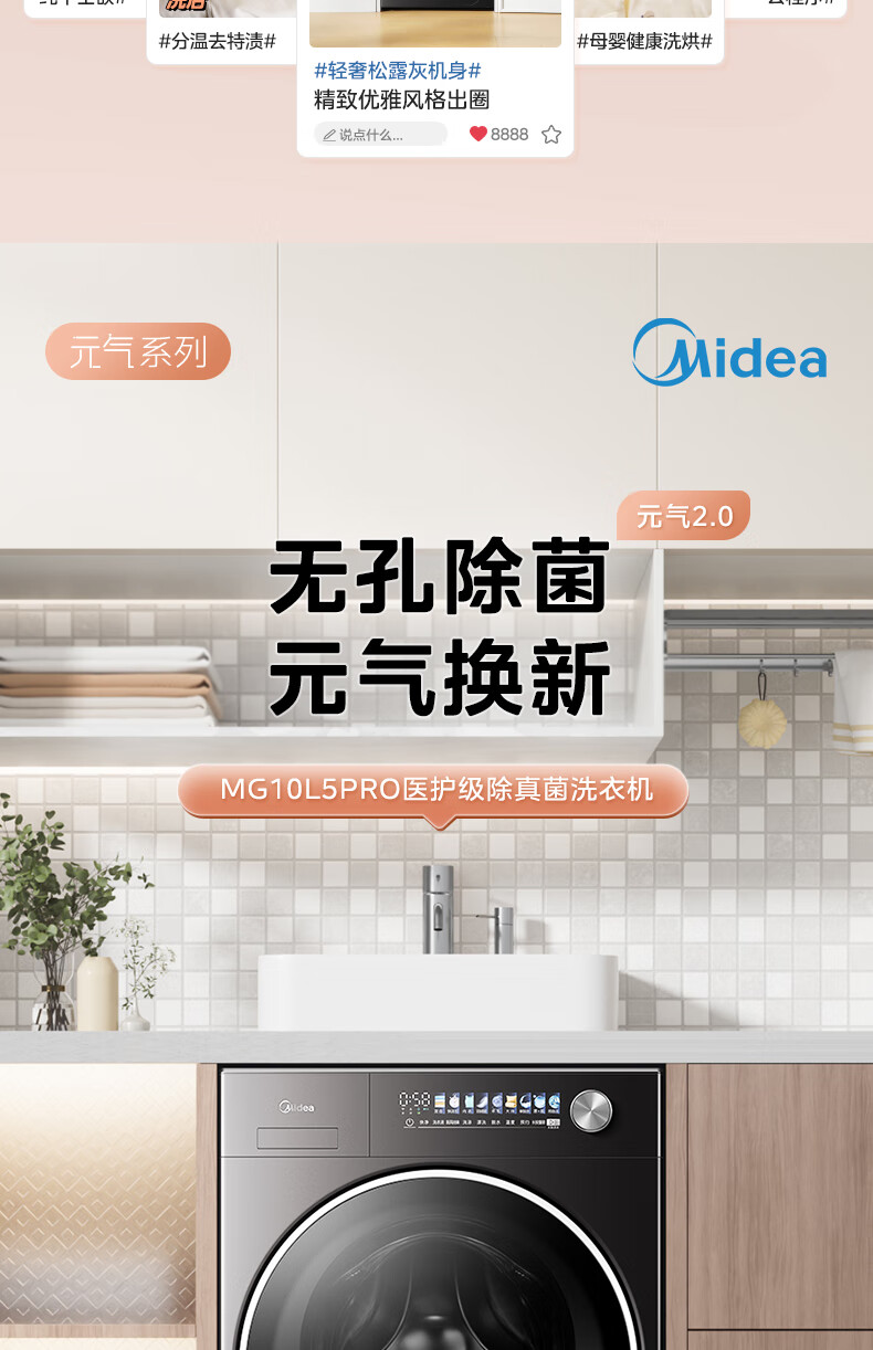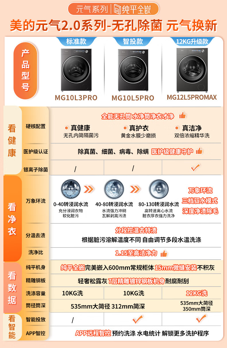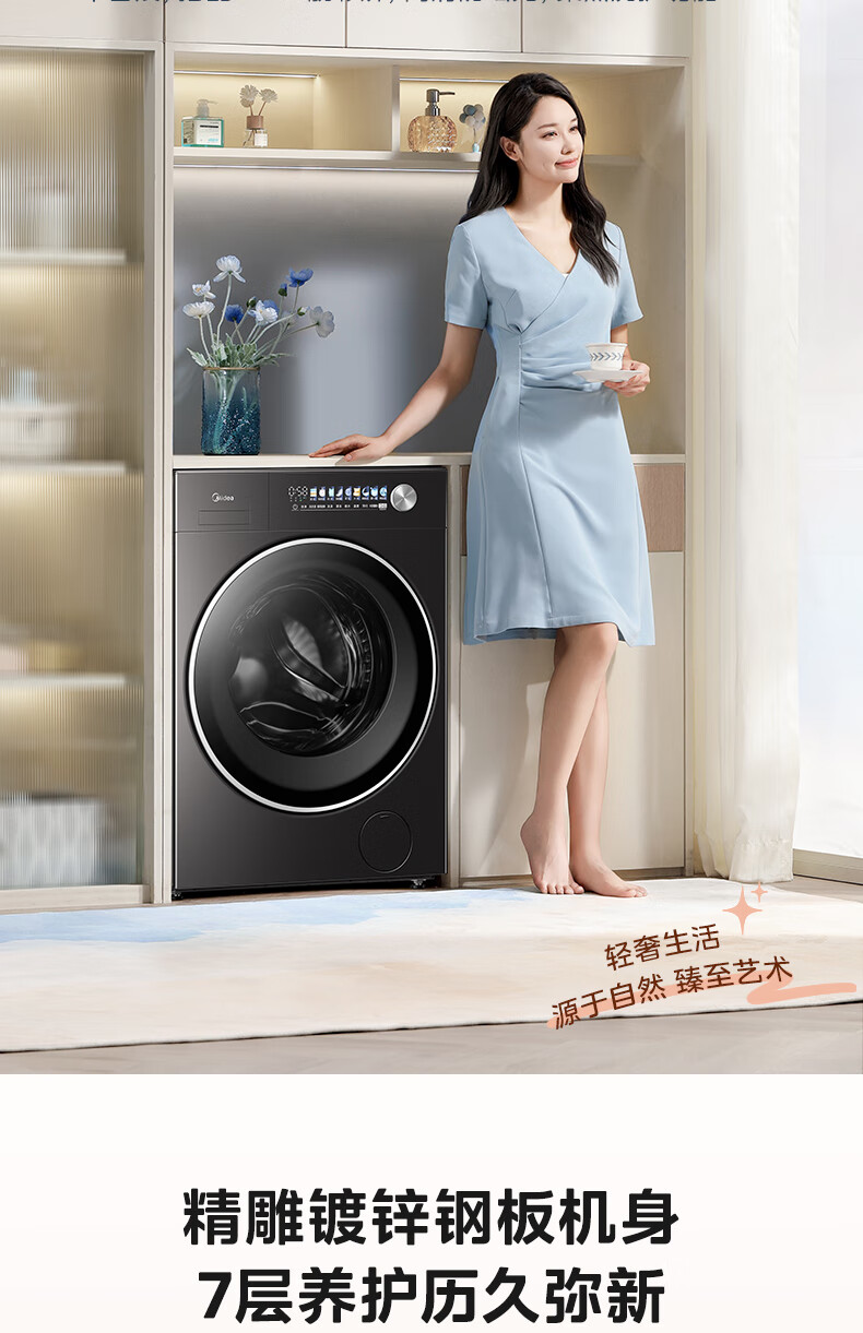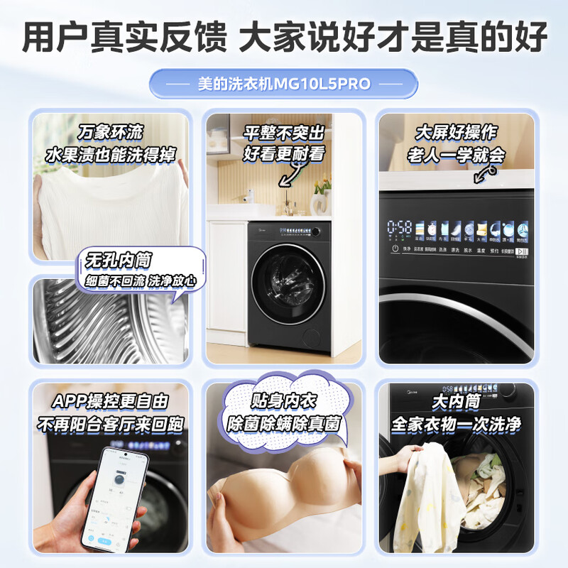 美的(Midea)滚筒洗衣机全自动10公斤纯平全嵌1.15洗净比智能投放元气2.0家电一级能效以旧换新 MG10L5PRO