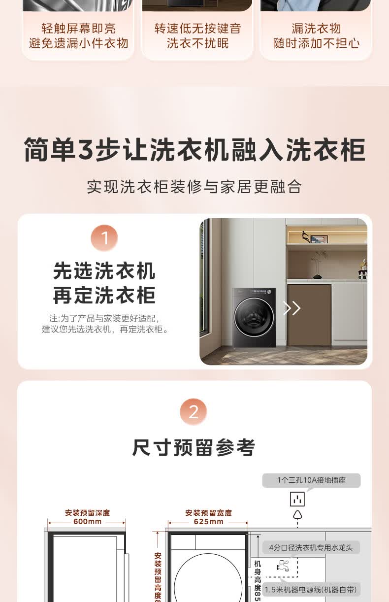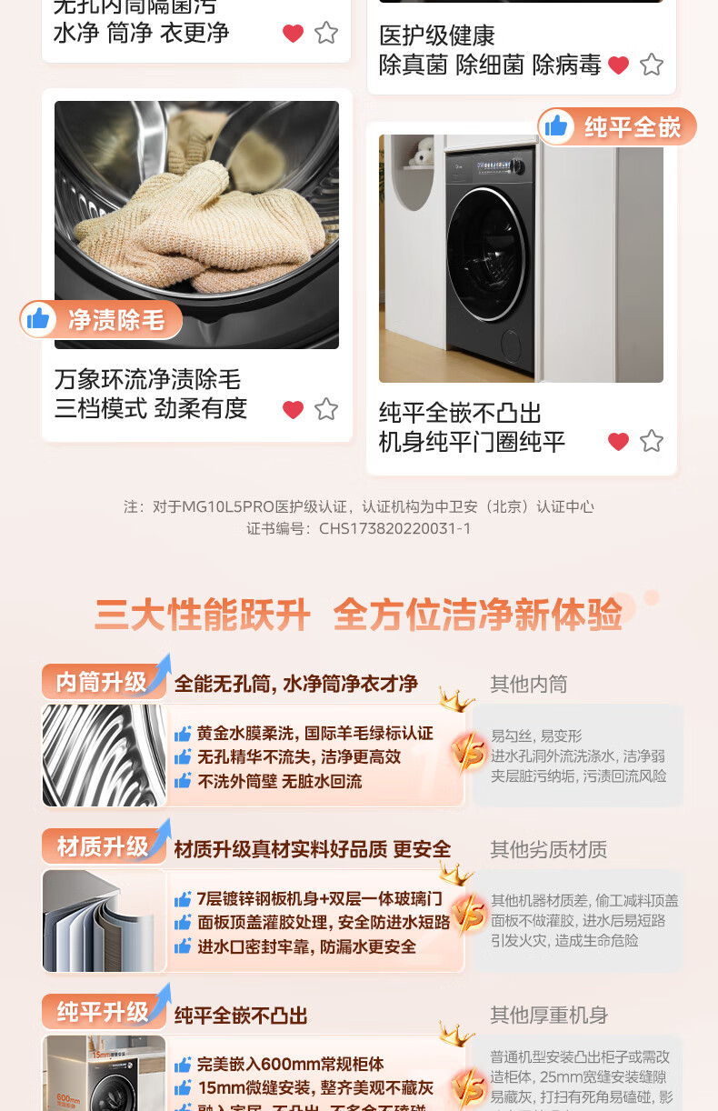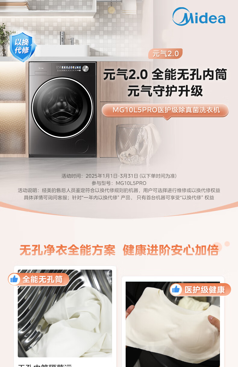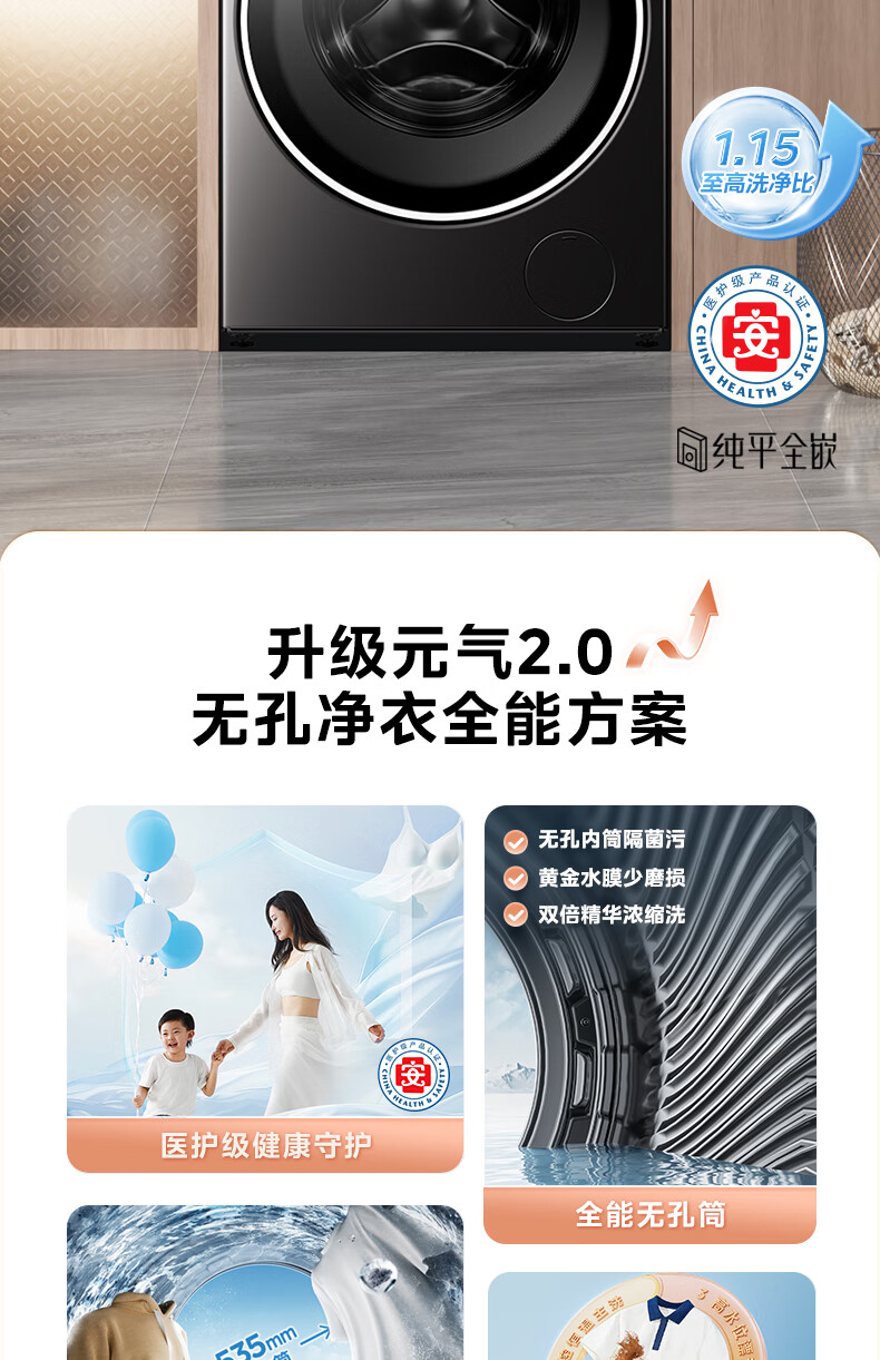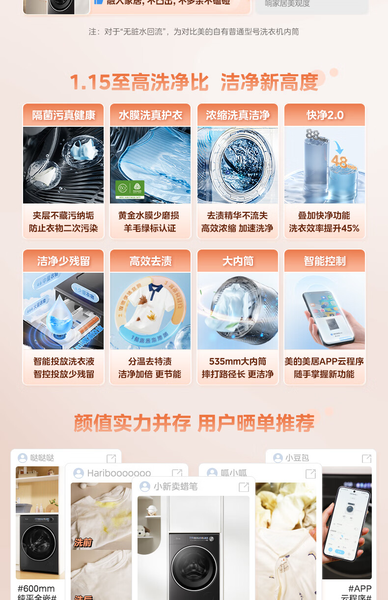 美的(Midea)滚筒洗衣机全自动10公斤纯平全嵌1.15洗净比智能投放元气2.0家电一级能效以旧换新 MG10L5PRO
