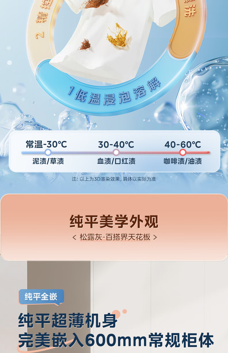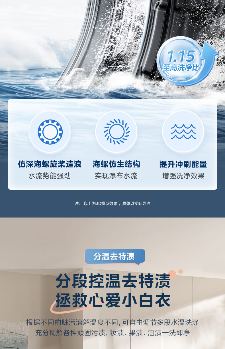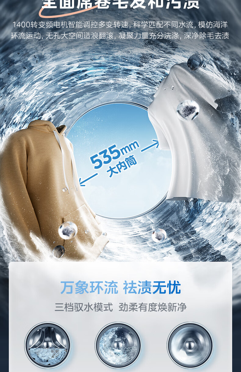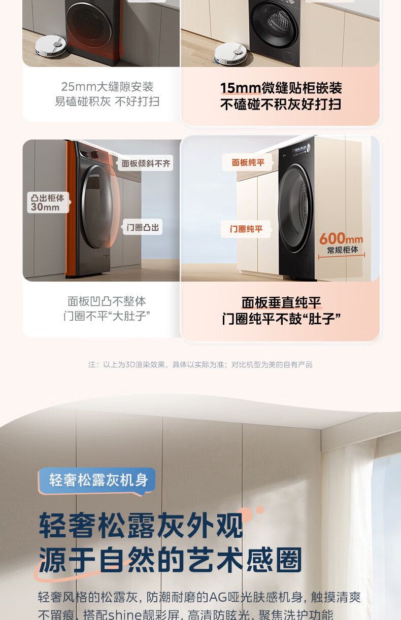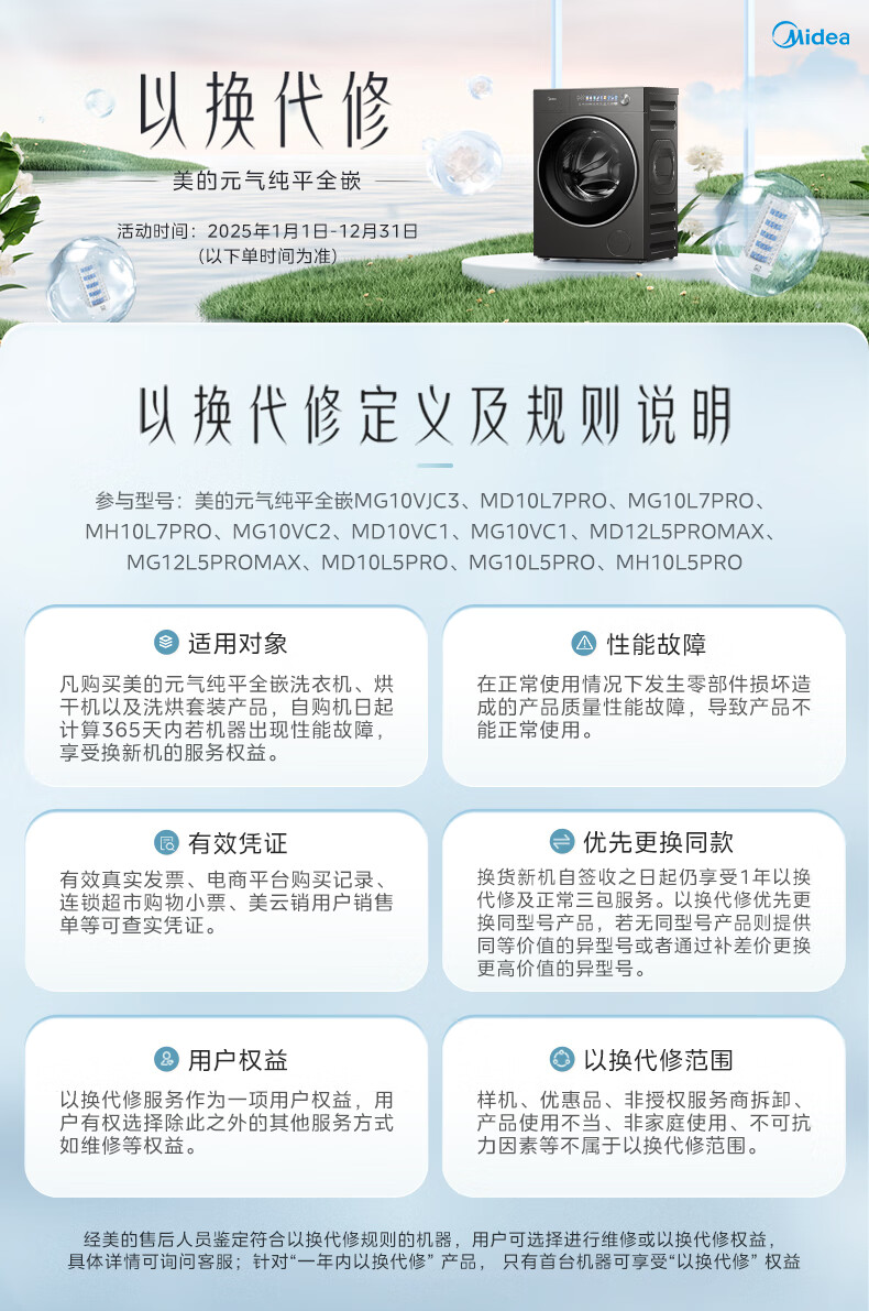 美的(Midea)滚筒洗衣机全自动10公斤纯平全嵌1.15洗净比智能投放元气2.0家电一级能效以旧换新 MG10L5PRO