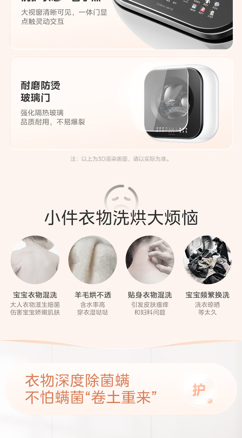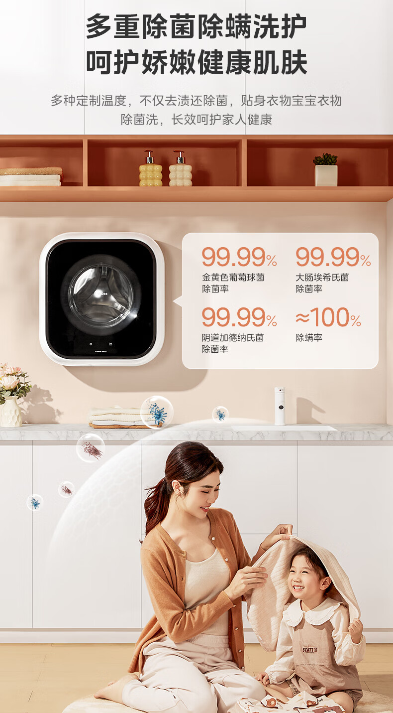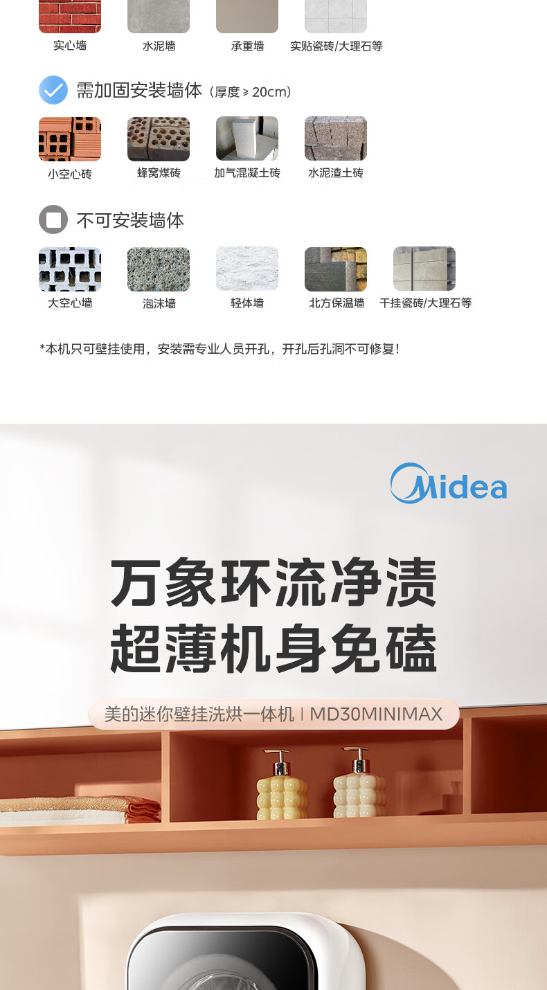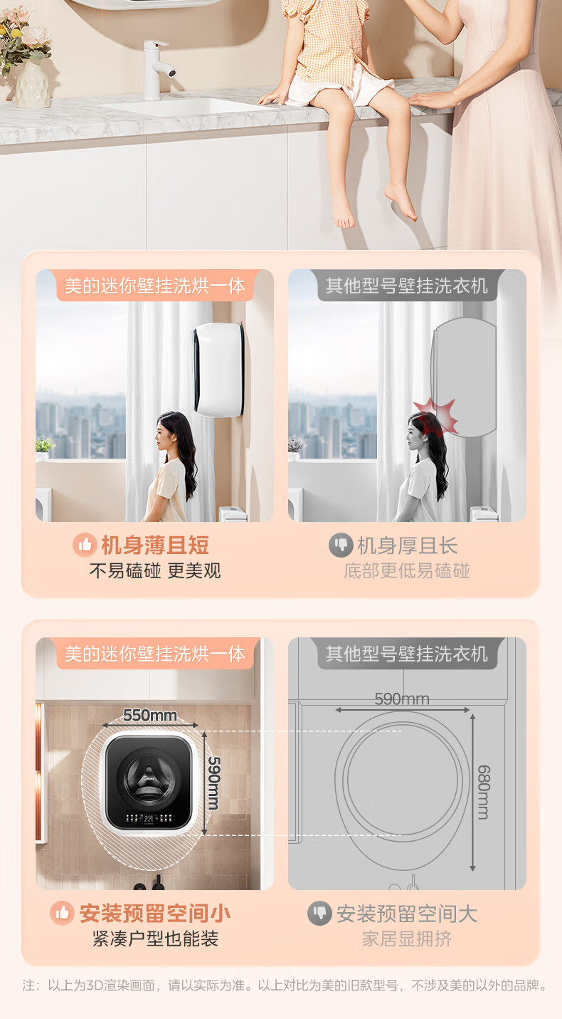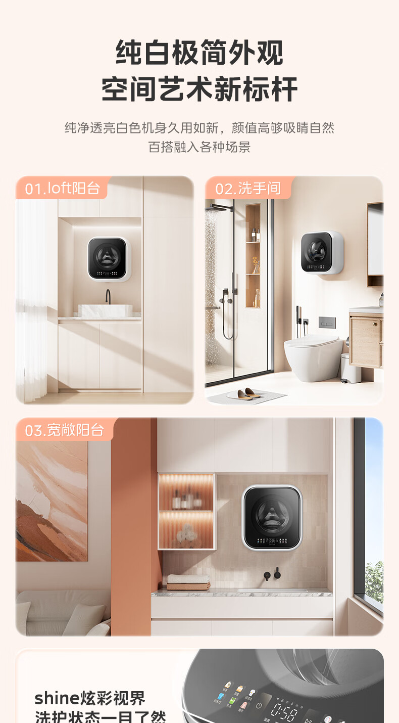 美的(Midea)壁挂滚筒洗衣机全自动3公斤带烘干洗烘一体机快速洗烘银离子除菌家电一级能效以旧换新 MD30MINIMAX