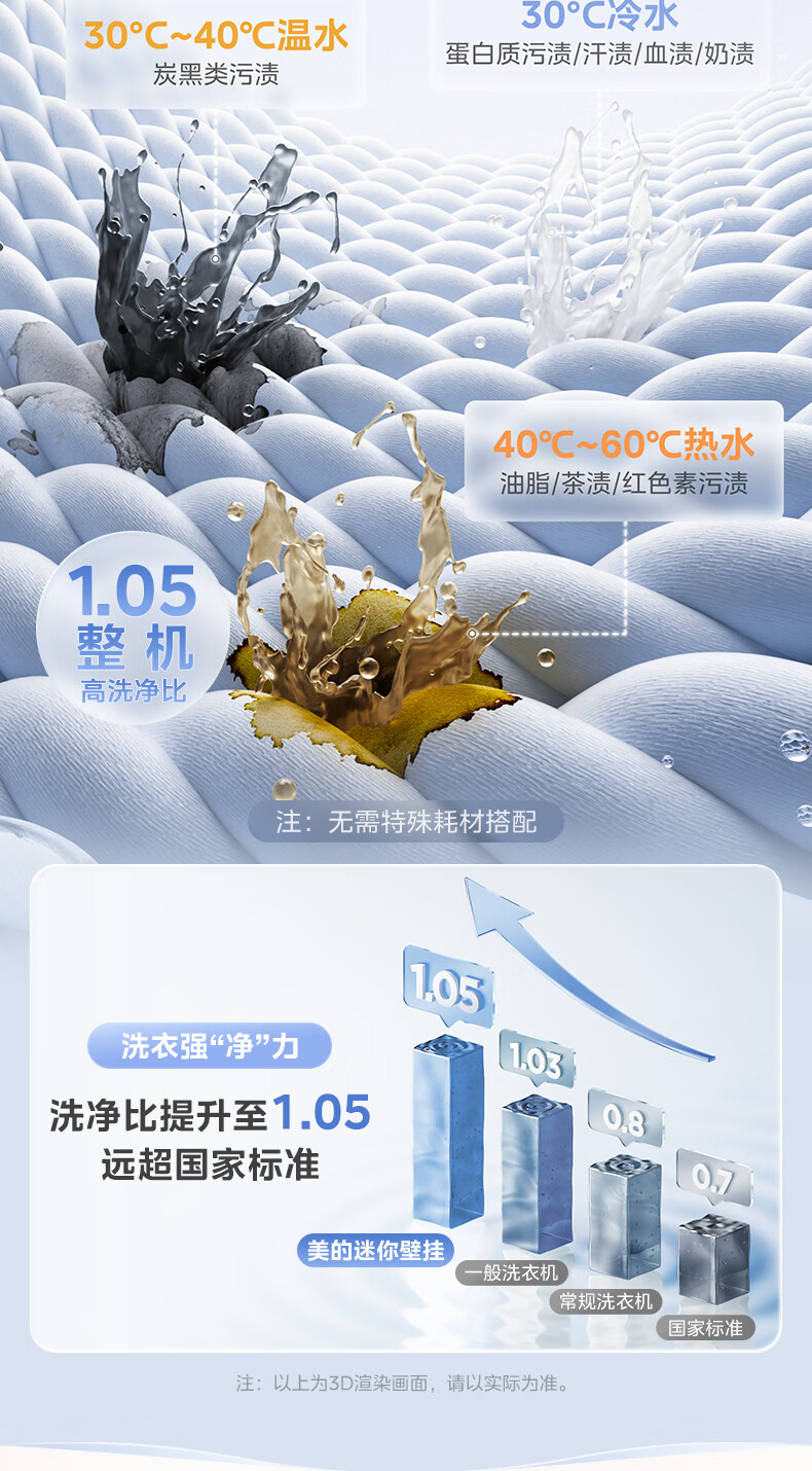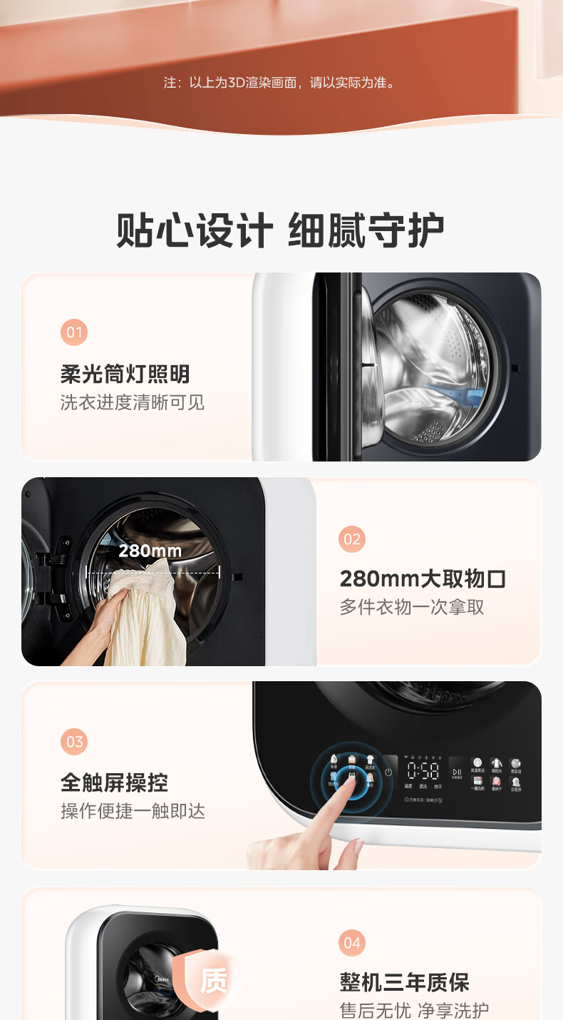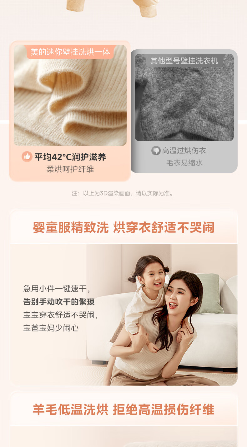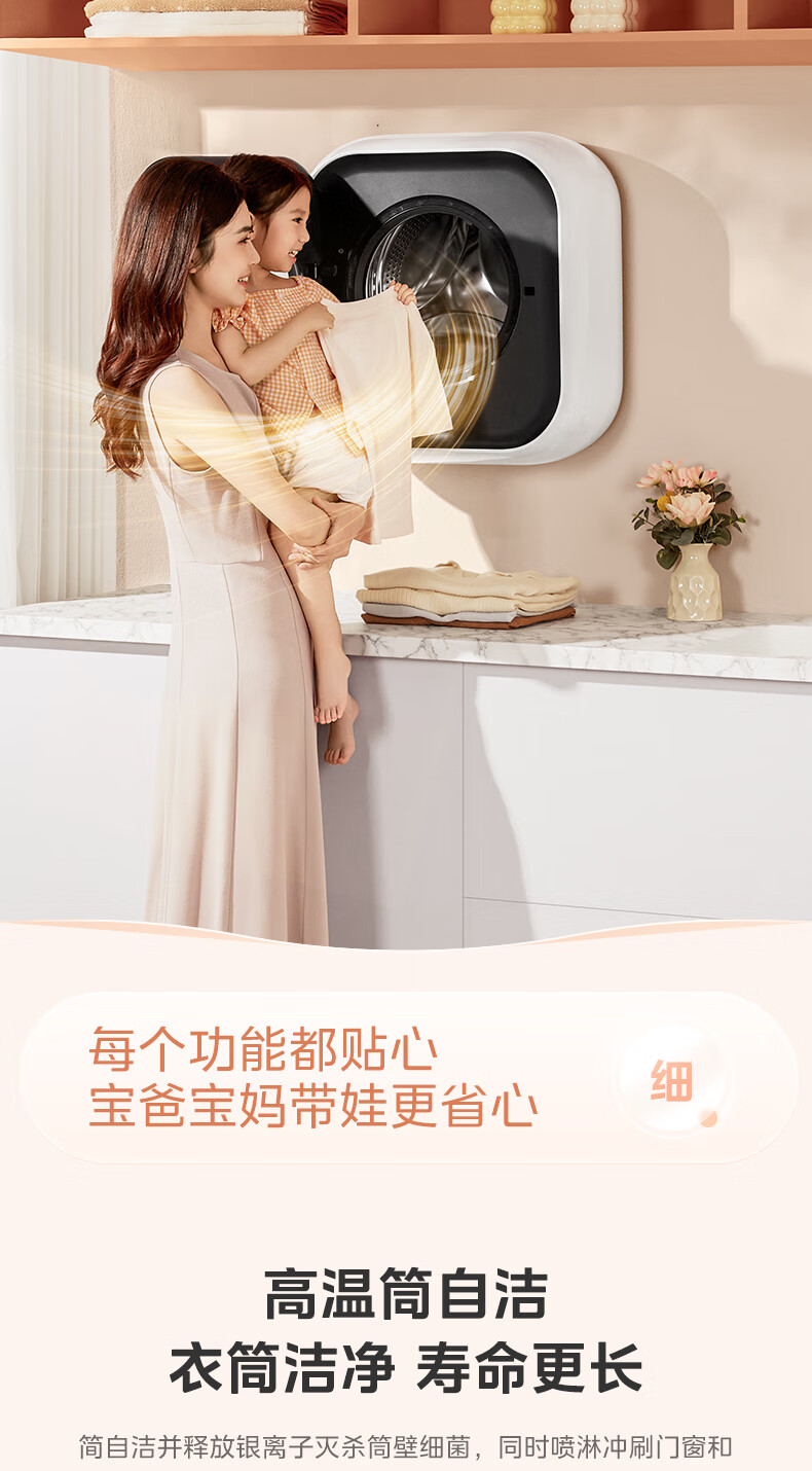 美的(Midea)壁挂滚筒洗衣机全自动3公斤带烘干洗烘一体机快速洗烘银离子除菌家电一级能效以旧换新 MD30MINIMAX