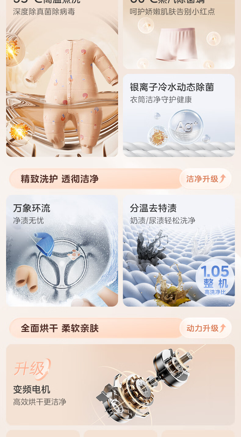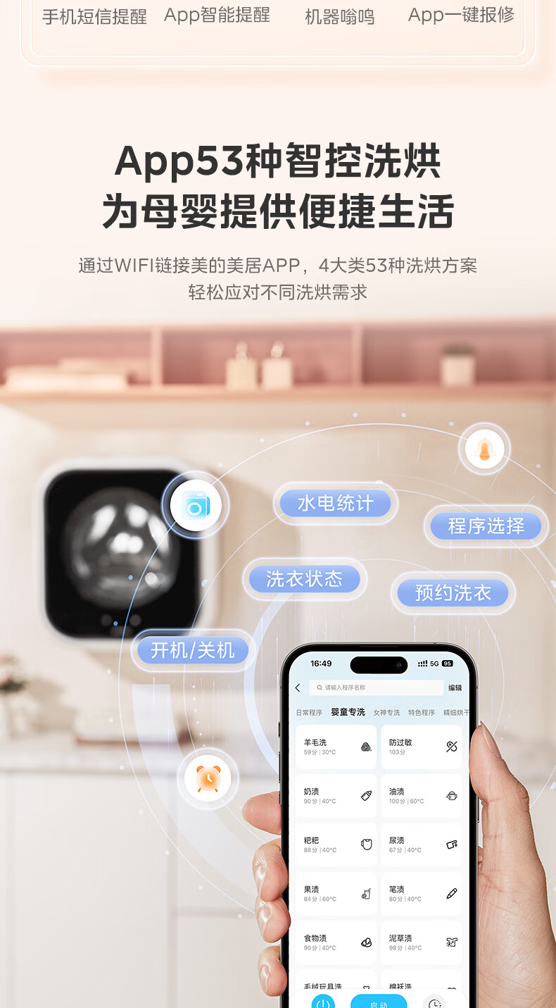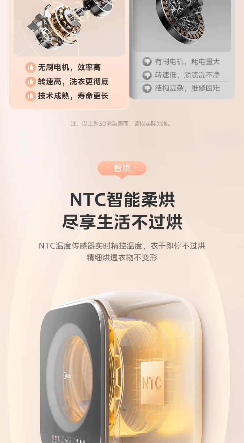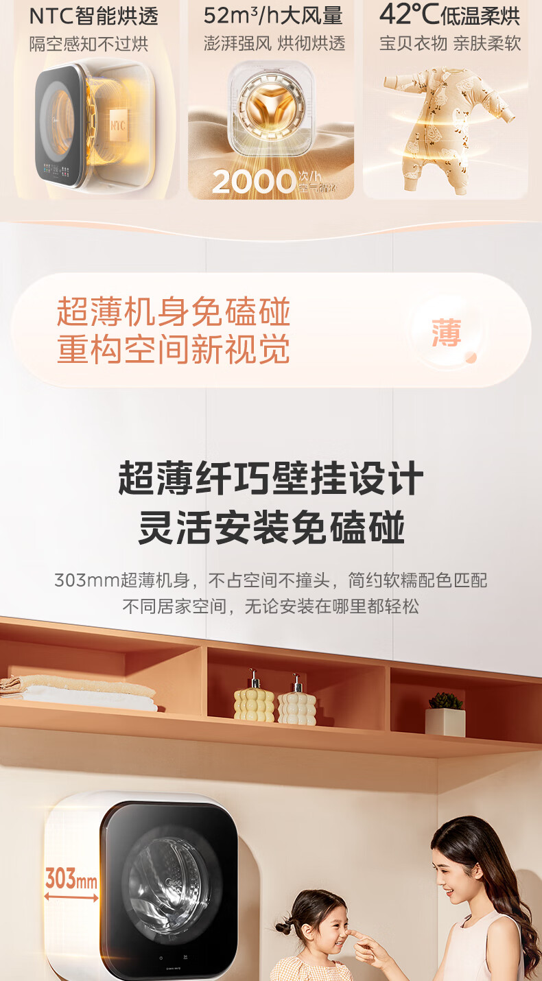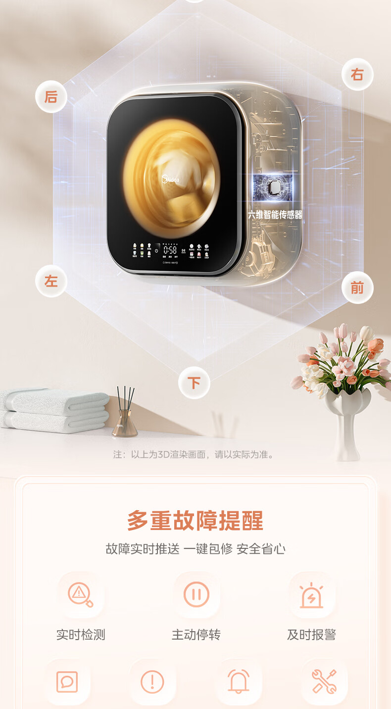 美的(Midea)壁挂滚筒洗衣机全自动3公斤带烘干洗烘一体机快速洗烘银离子除菌家电一级能效以旧换新 MD30MINIMAX