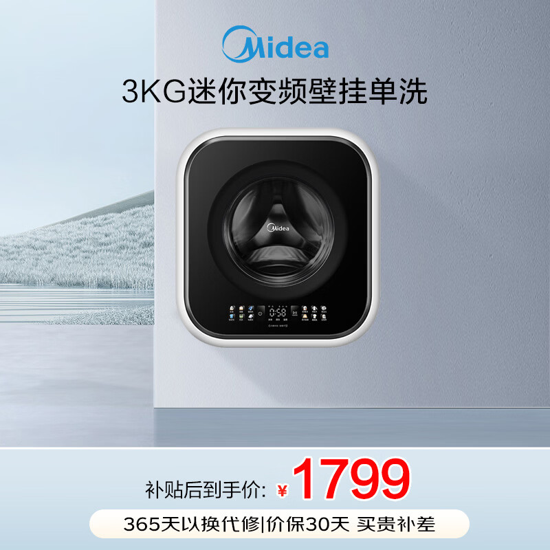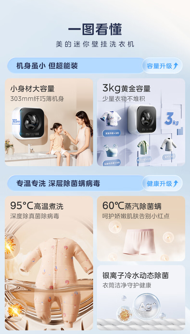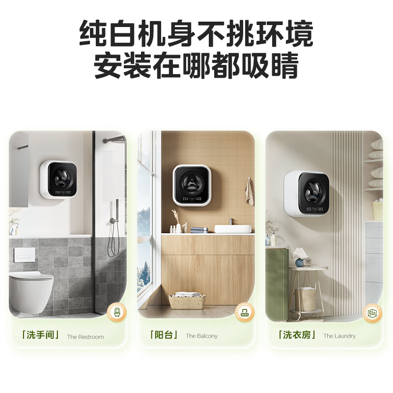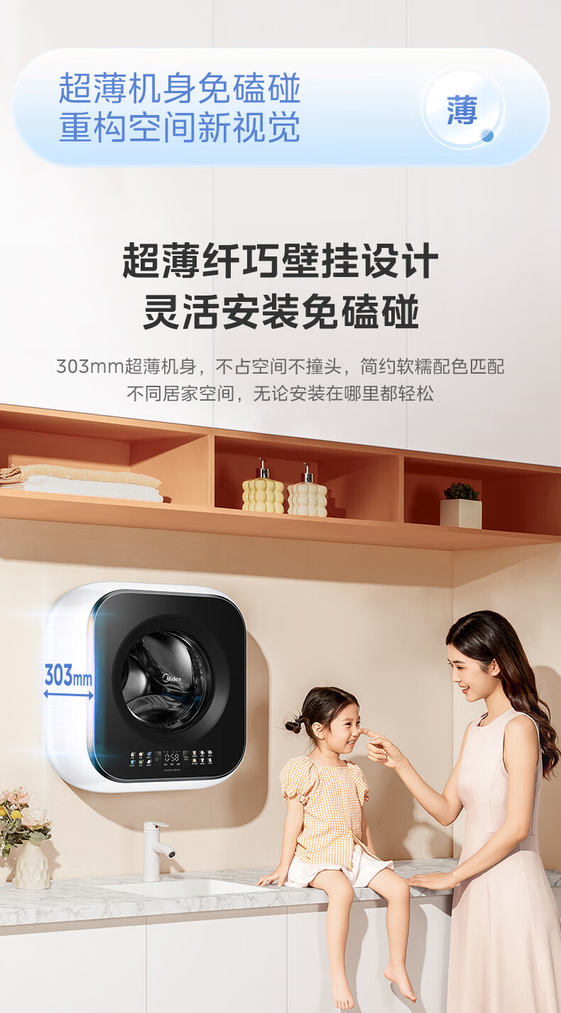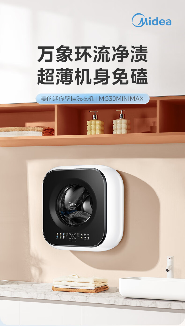 美的(Midea)壁挂滚筒洗衣机全自动3公斤超薄机身银离子除菌高洗净比变频家电一级能效以旧换新 MG30MINIMAX