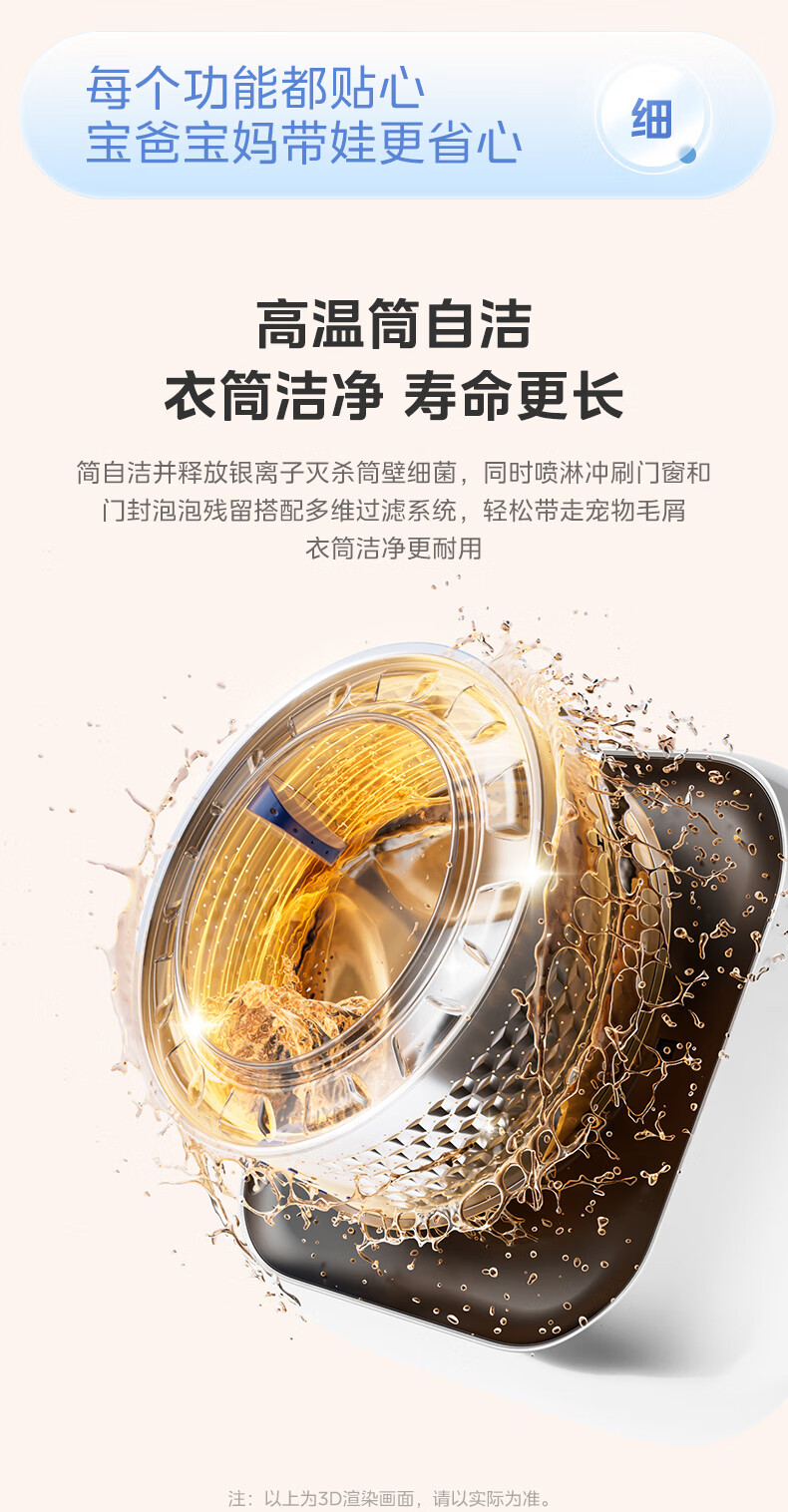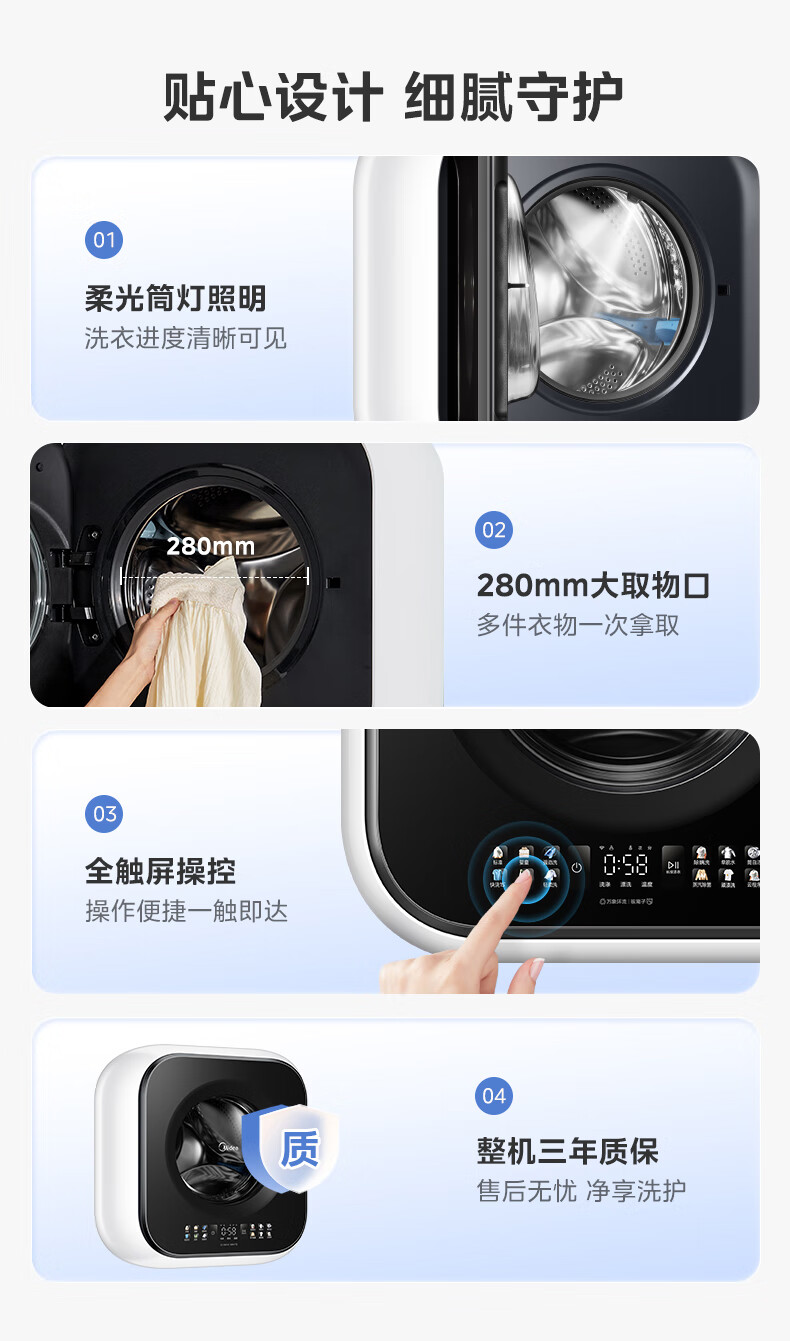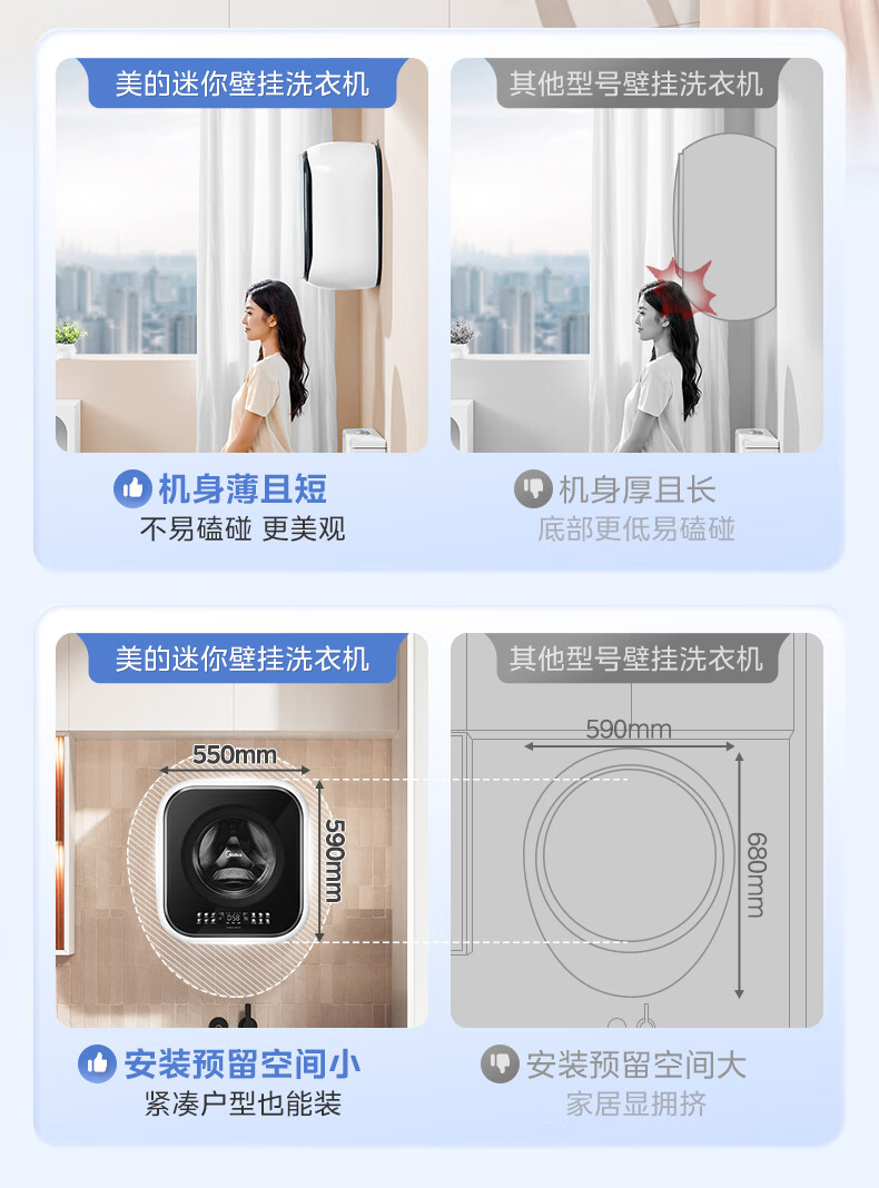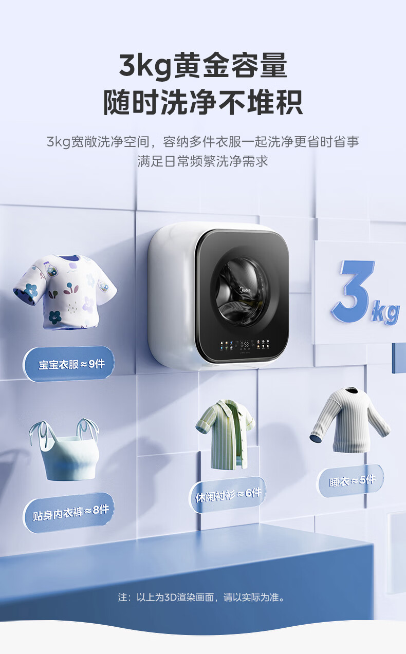 美的(Midea)壁挂滚筒洗衣机全自动3公斤超薄机身银离子除菌高洗净比变频家电一级能效以旧换新 MG30MINIMAX