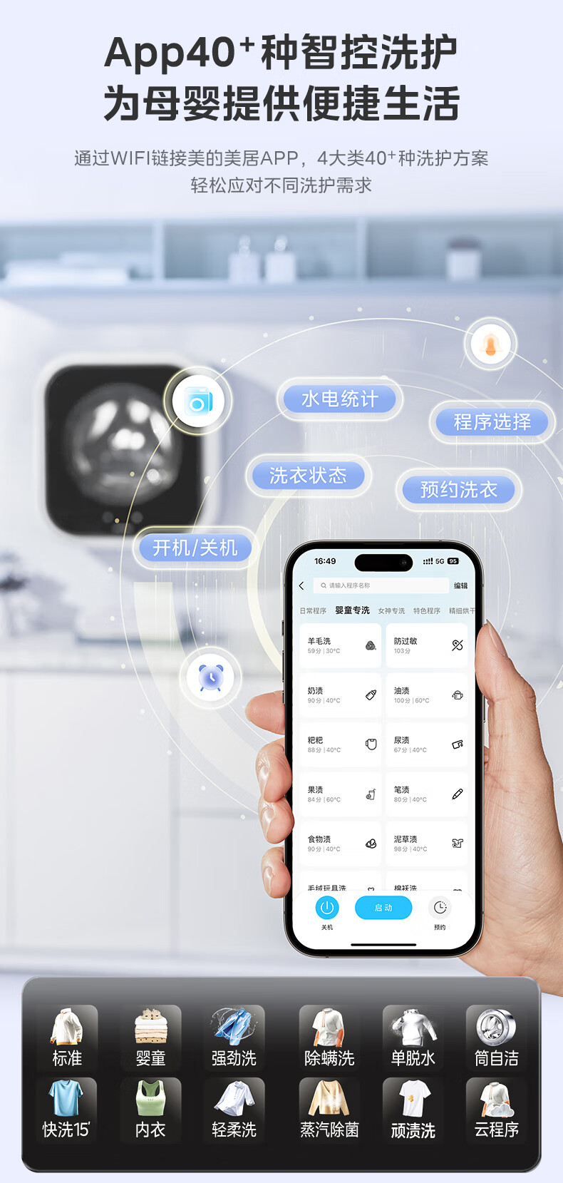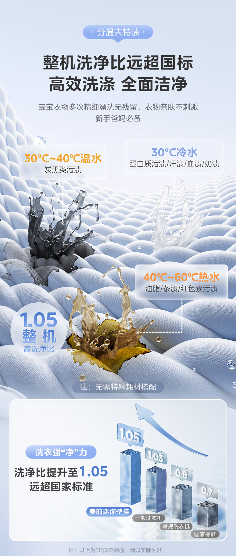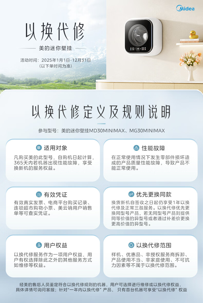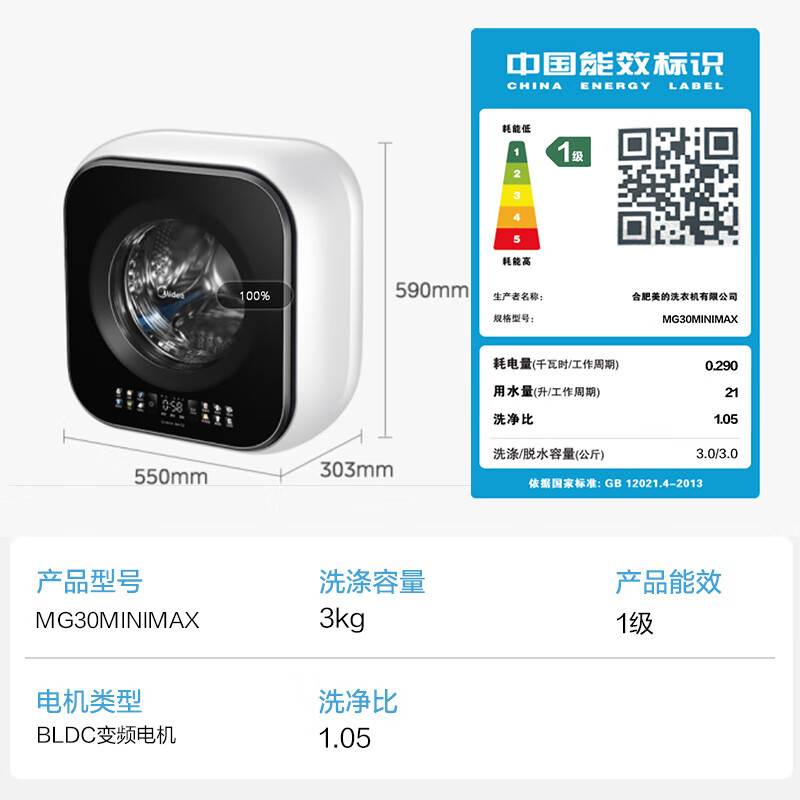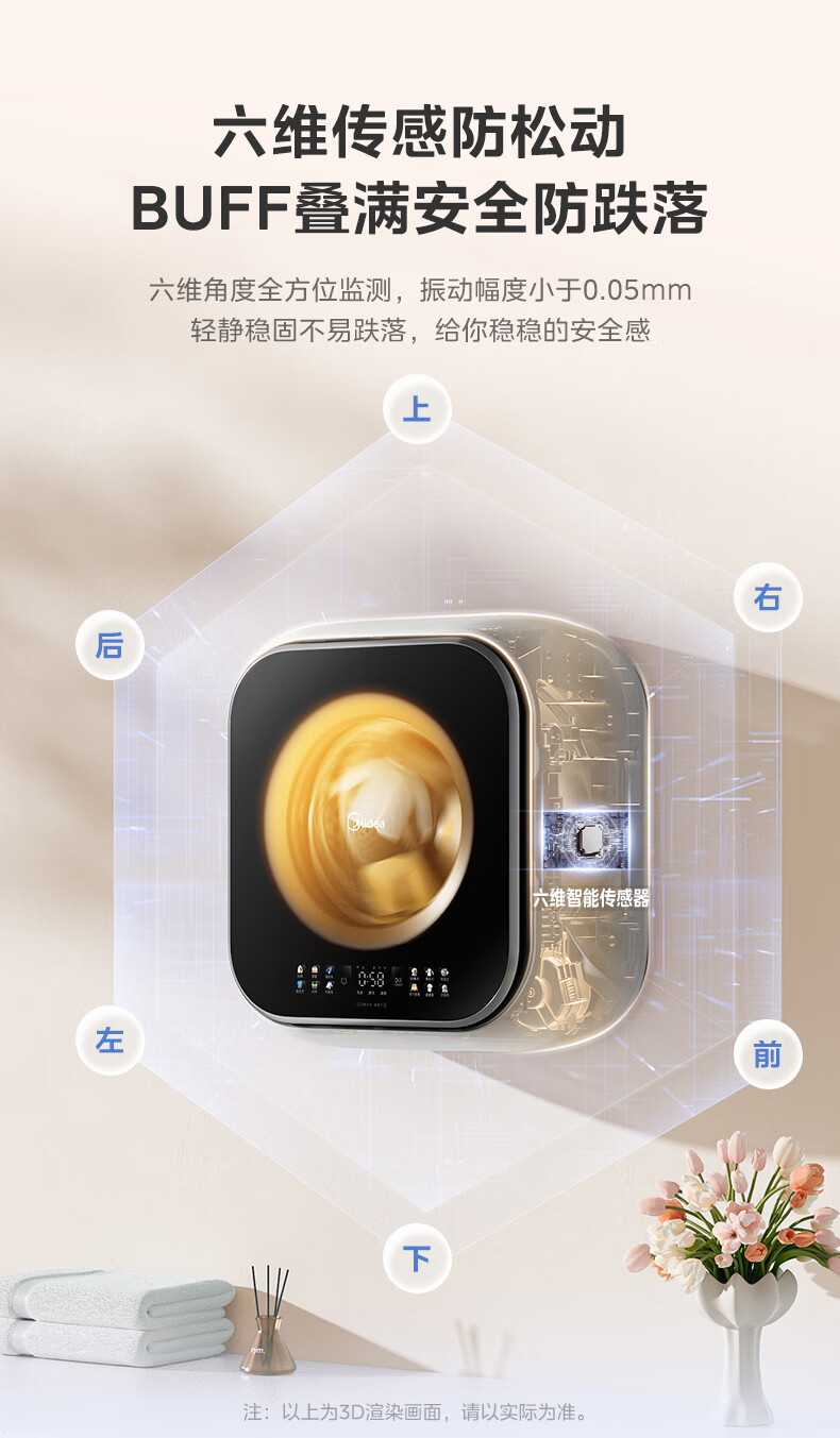 美的(Midea)壁挂滚筒洗衣机全自动3公斤超薄机身银离子除菌高洗净比变频家电一级能效以旧换新 MG30MINIMAX