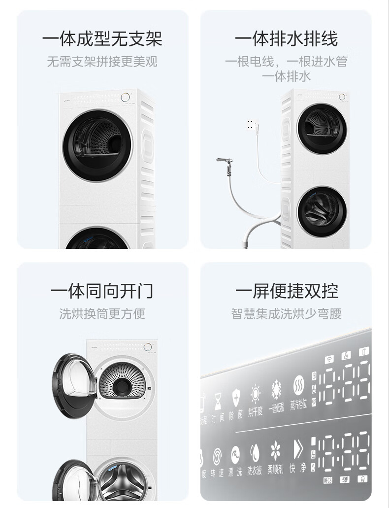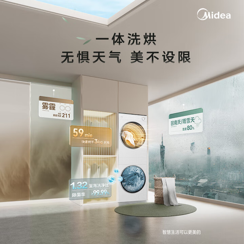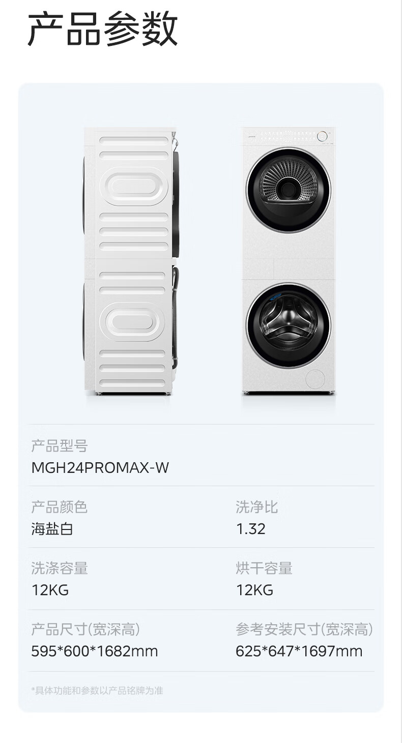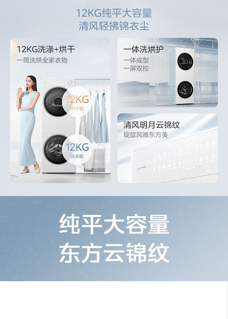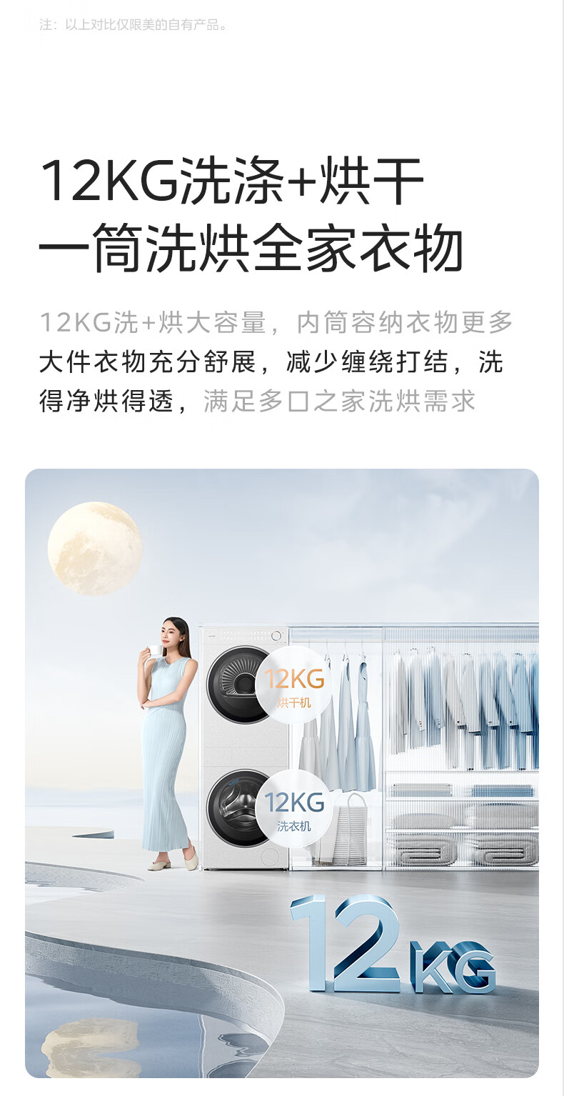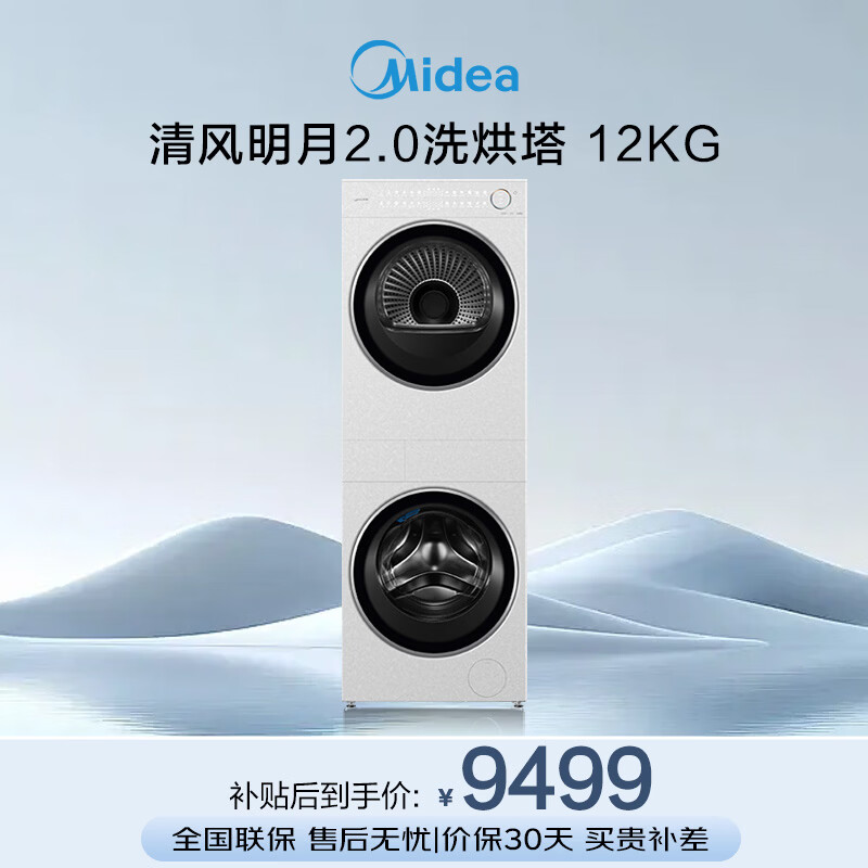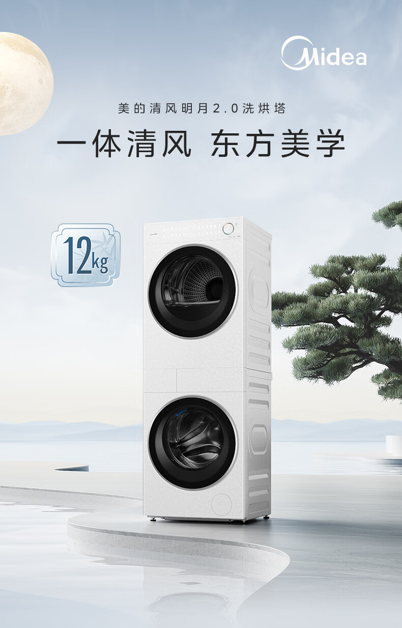 美的(Midea)滚筒洗衣机全自动带烘干洗烘一体12kg热泵烘干机全变频【清风明月2.0洗烘塔】 MGH24PROMAX-W