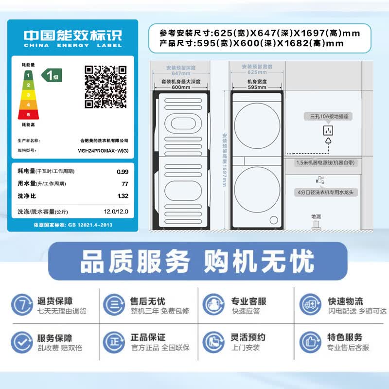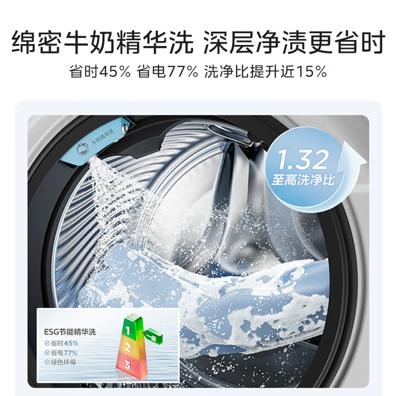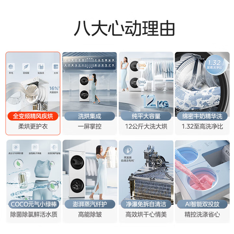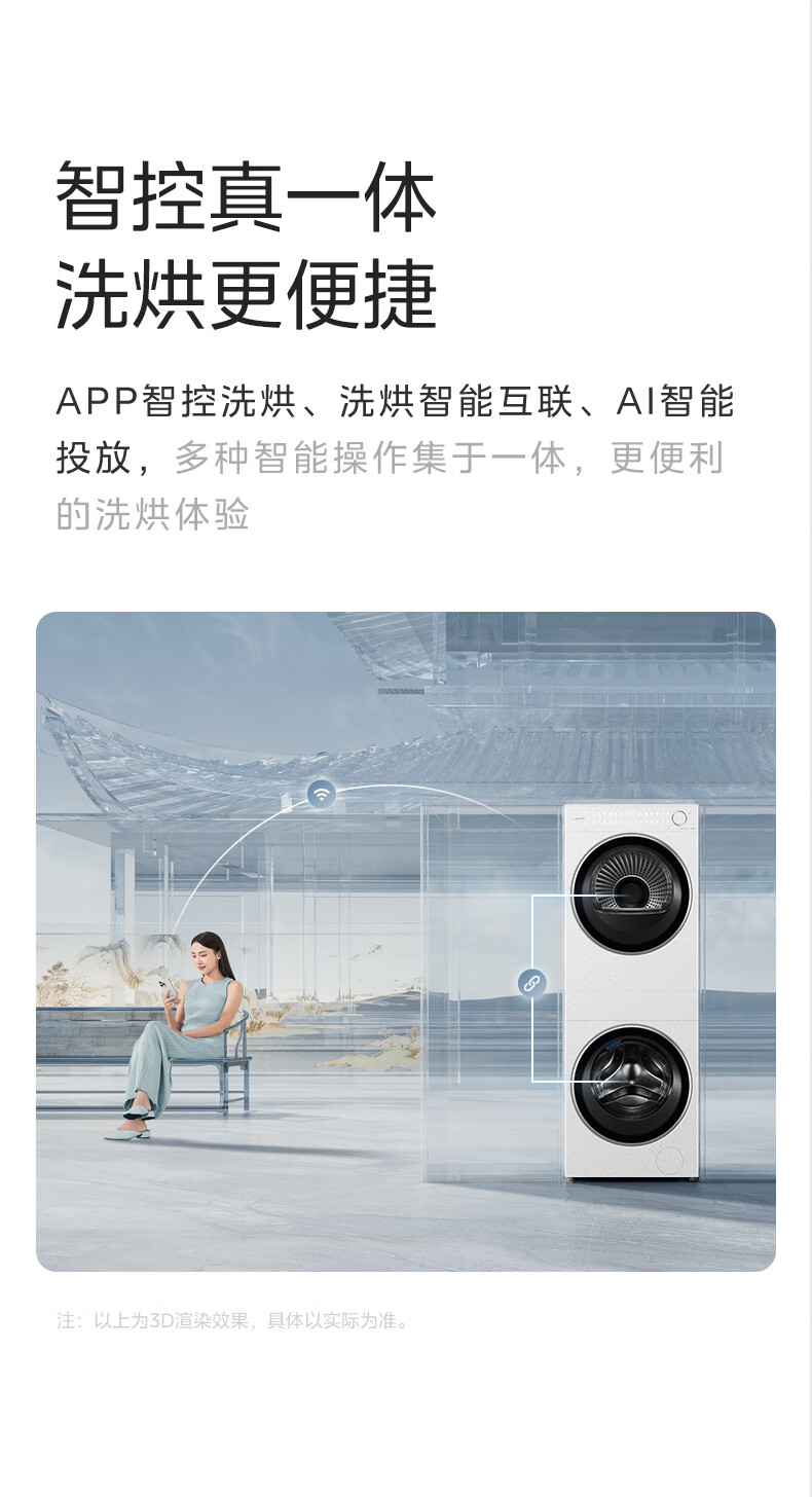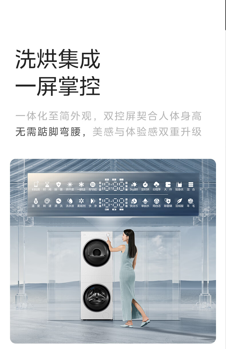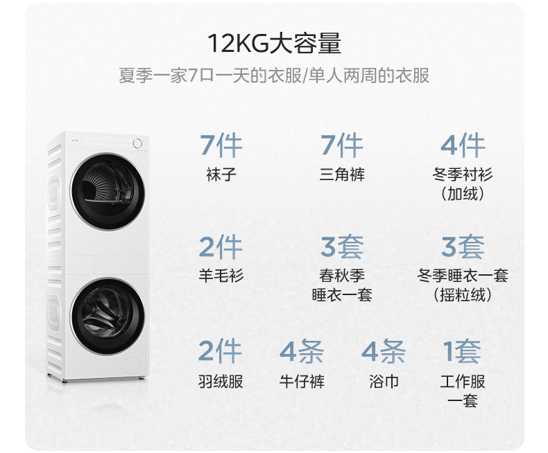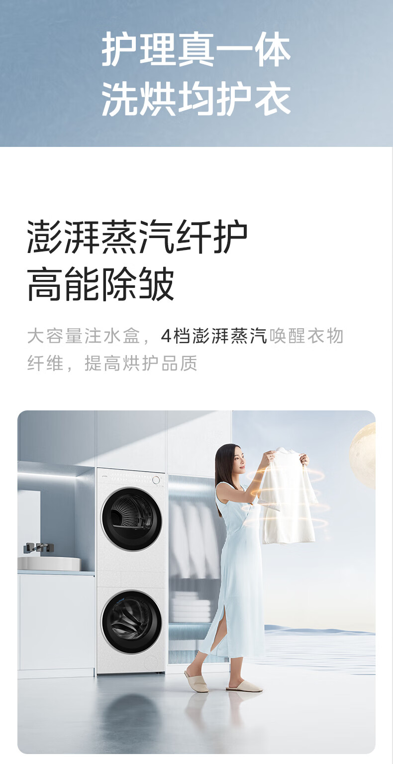 美的(Midea)滚筒洗衣机全自动带烘干洗烘一体12kg热泵烘干机全变频【清风明月2.0洗烘塔】 MGH24PROMAX-W