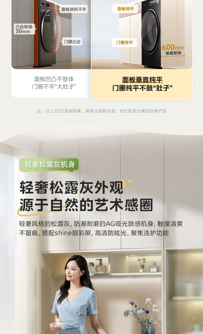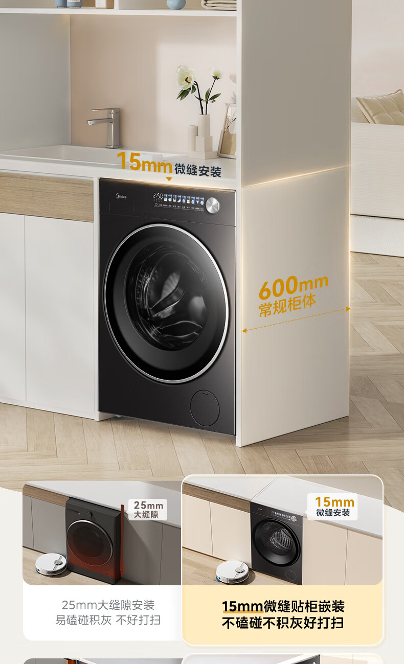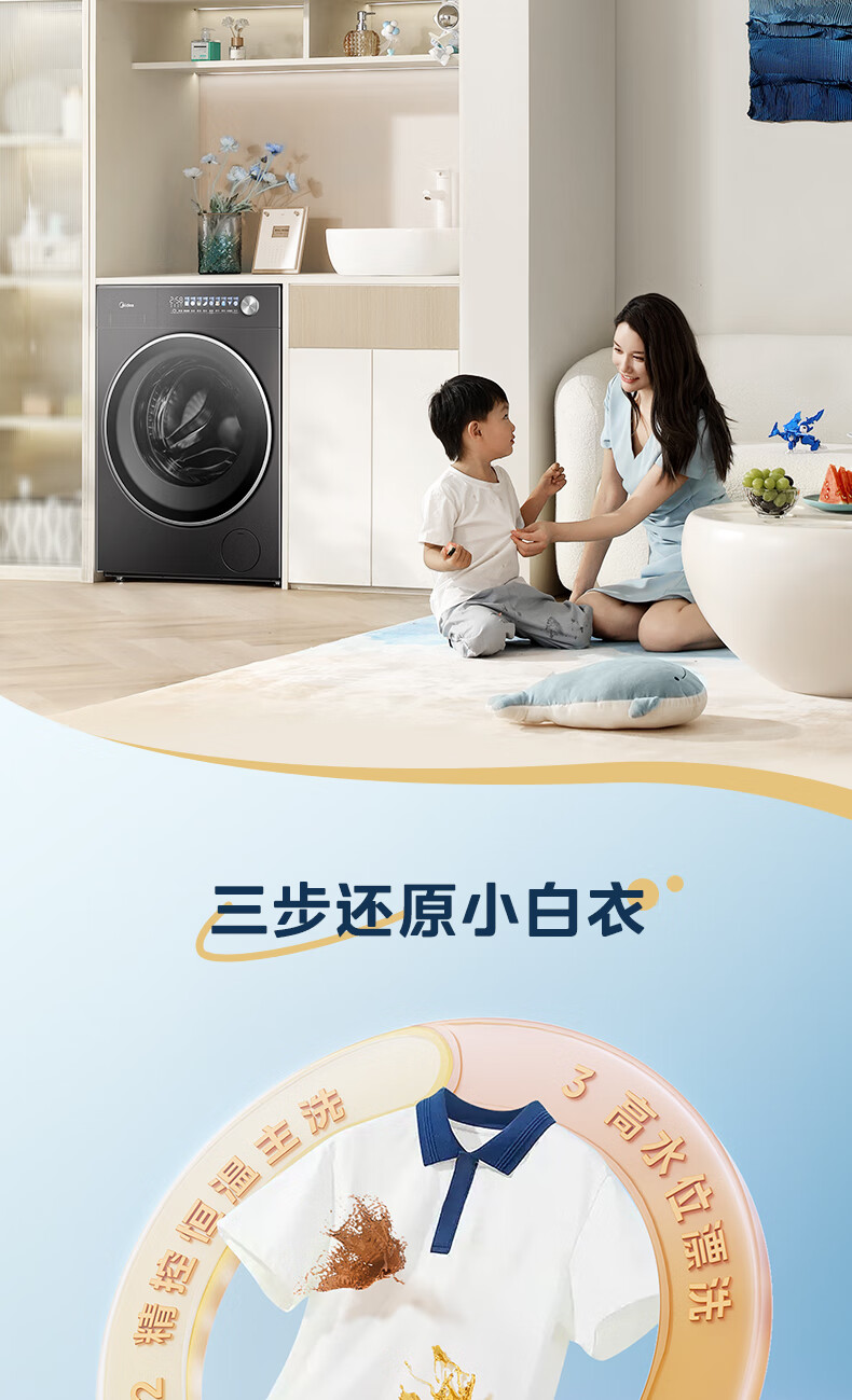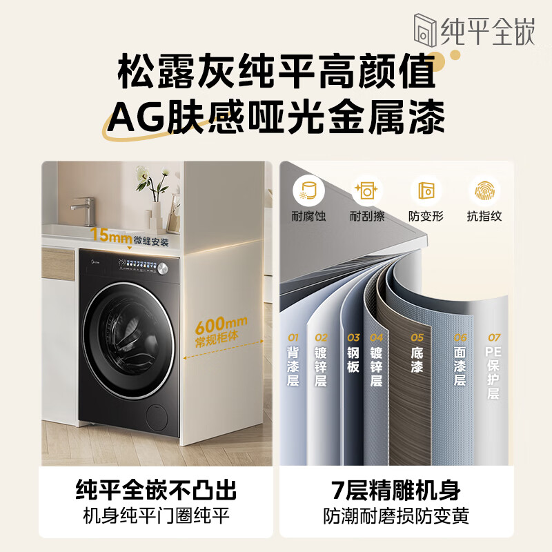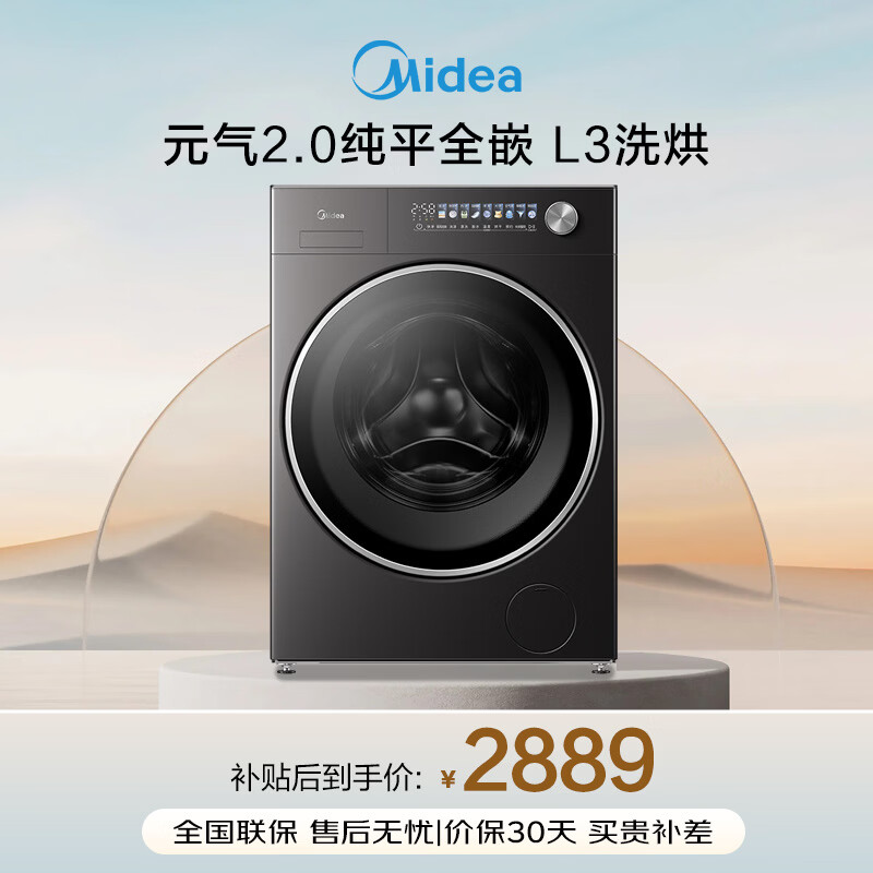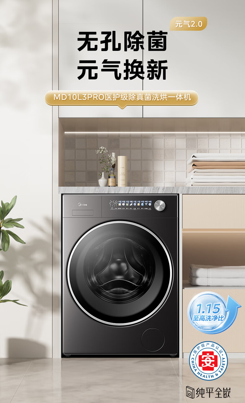 美的(Midea)滚筒洗衣机全自动10公斤带烘干洗烘一体机纯平全嵌1.15洗净比元气2.0以旧换新 家电 MD10L3PRO