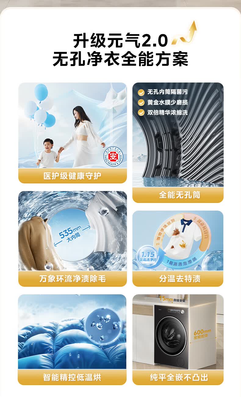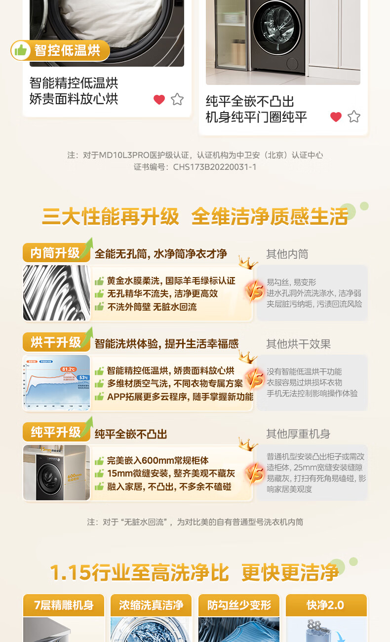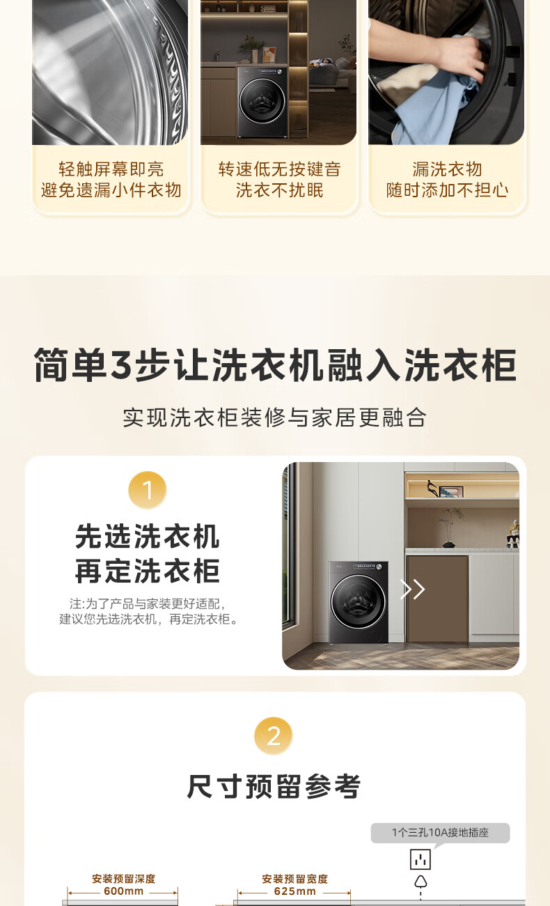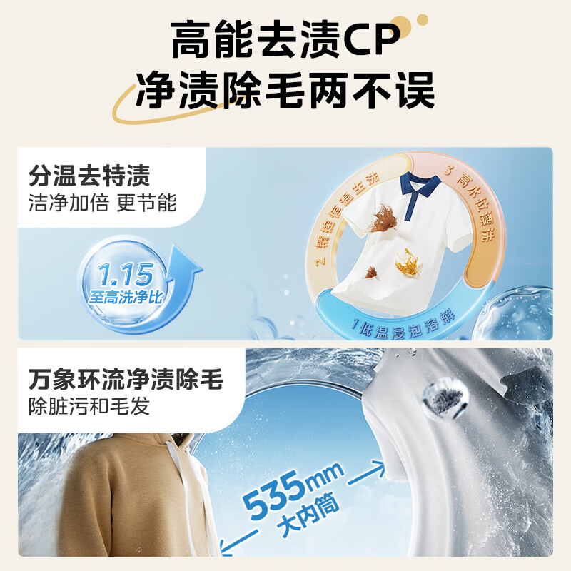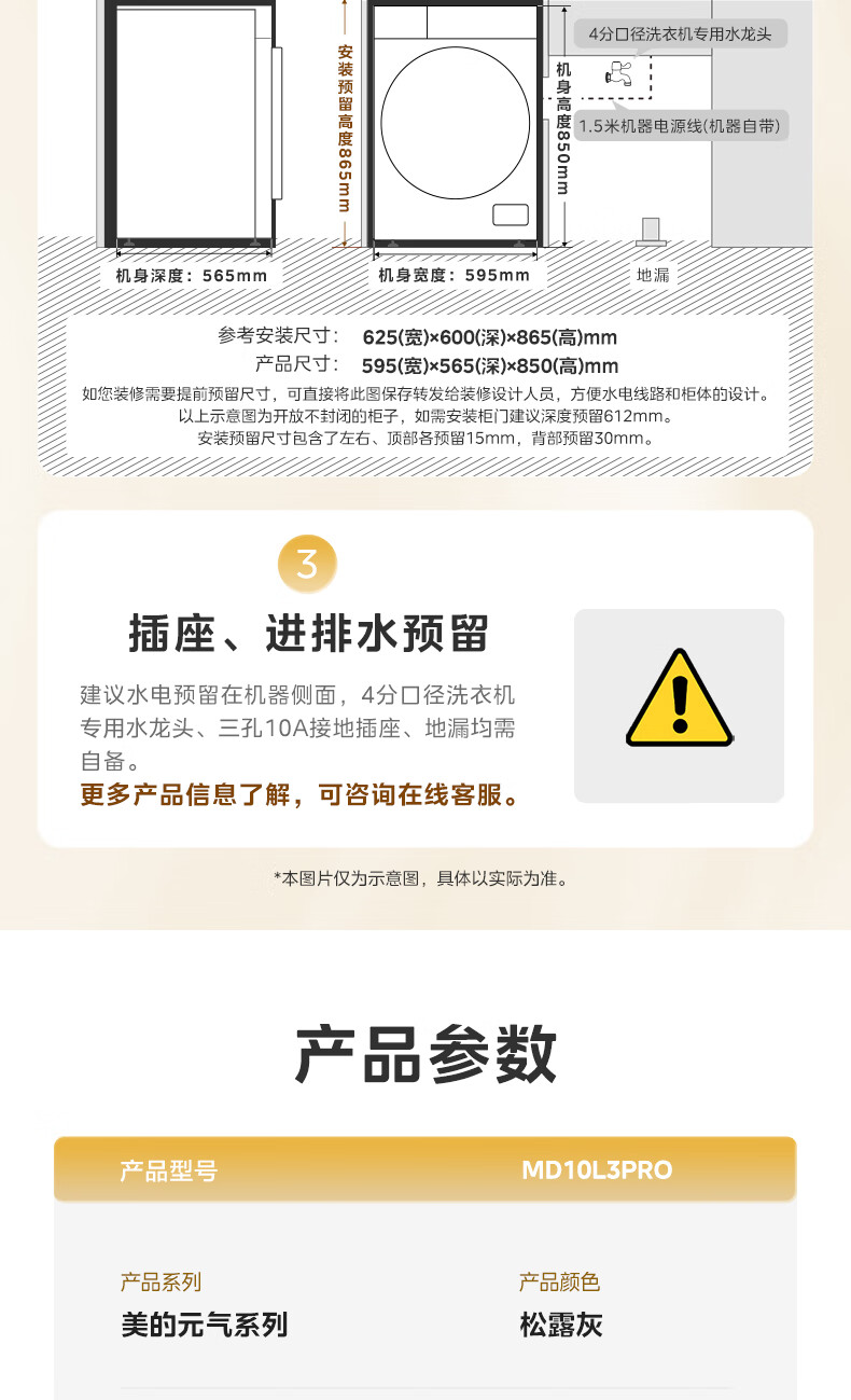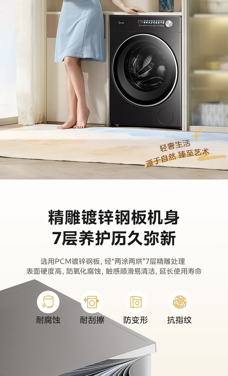 美的(Midea)滚筒洗衣机全自动10公斤带烘干洗烘一体机纯平全嵌1.15洗净比元气2.0以旧换新 家电 MD10L3PRO