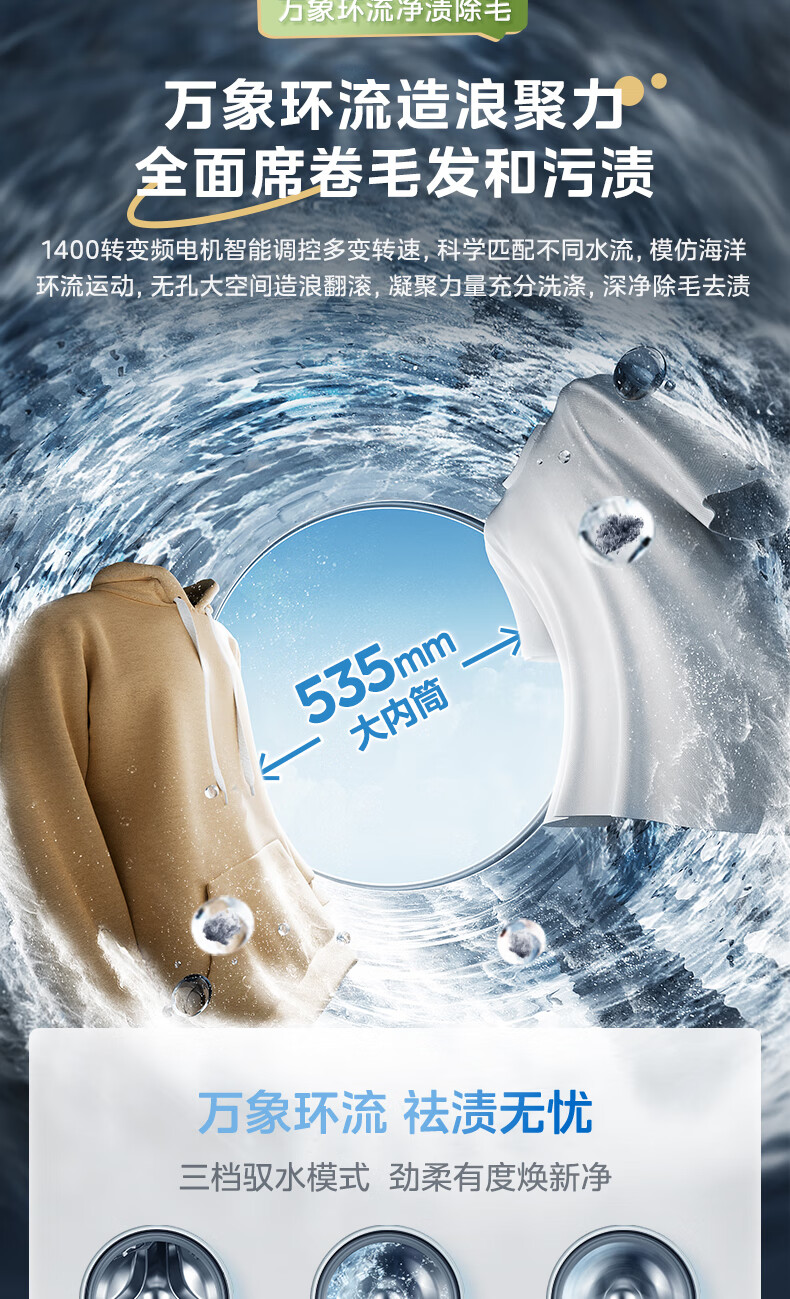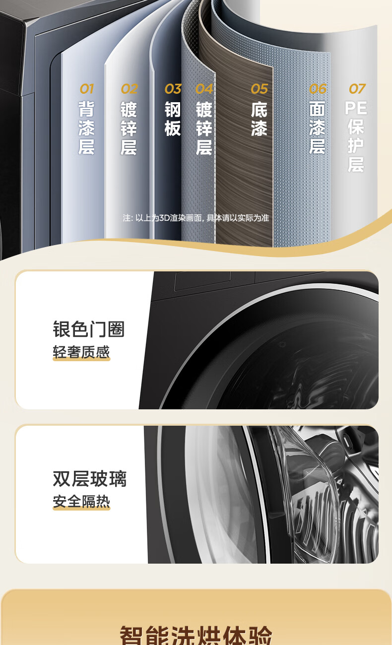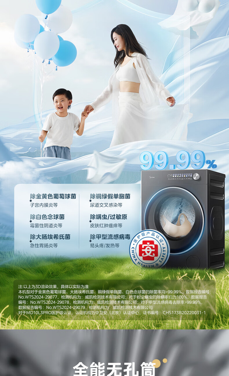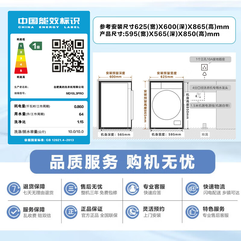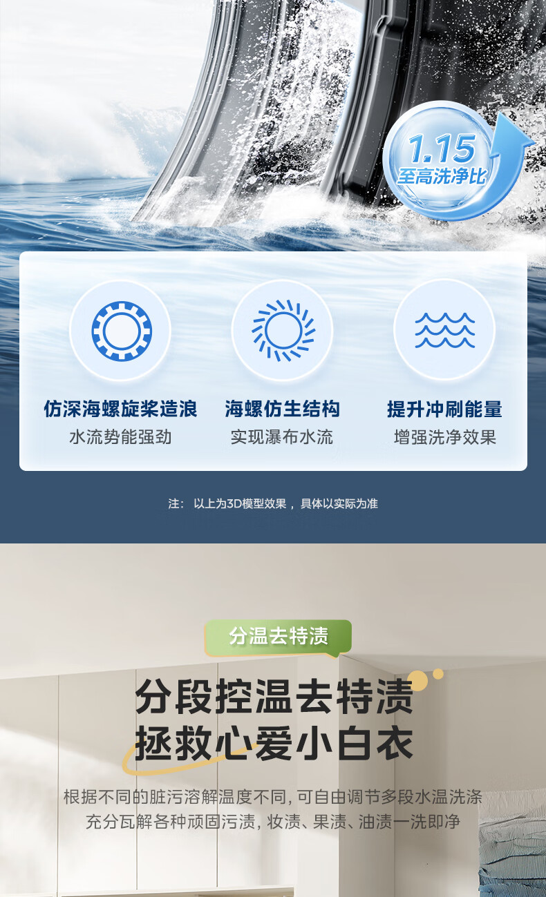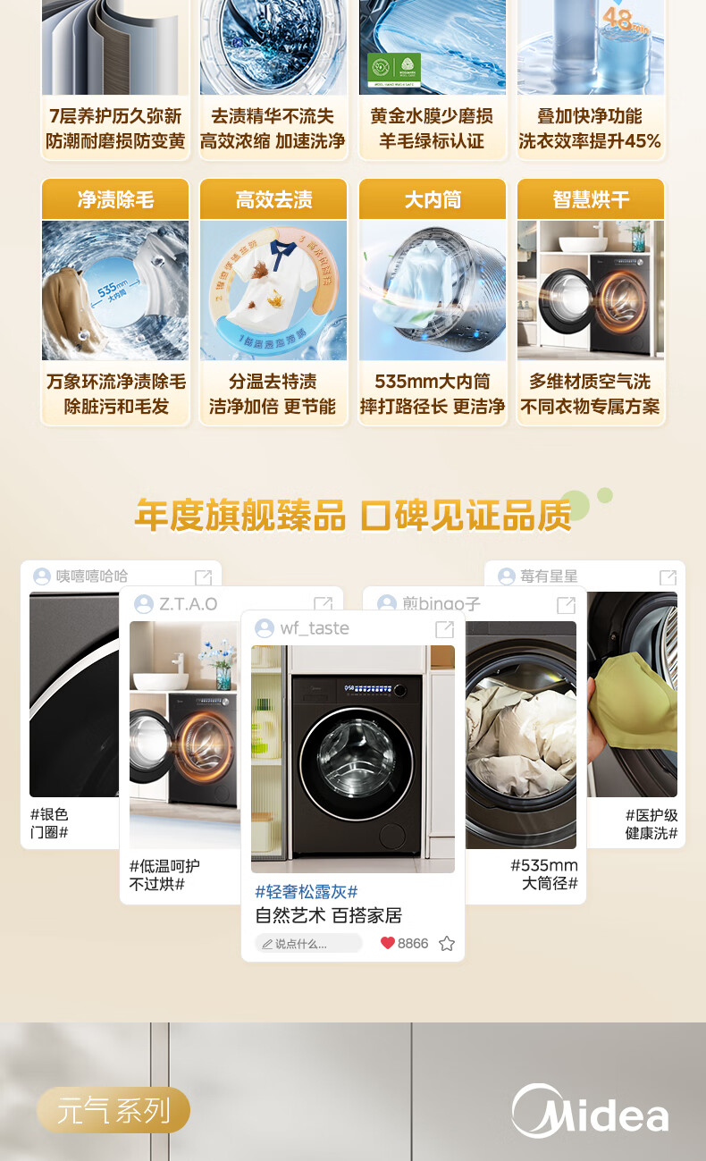 美的(Midea)滚筒洗衣机全自动10公斤带烘干洗烘一体机纯平全嵌1.15洗净比元气2.0以旧换新 家电 MD10L3PRO
