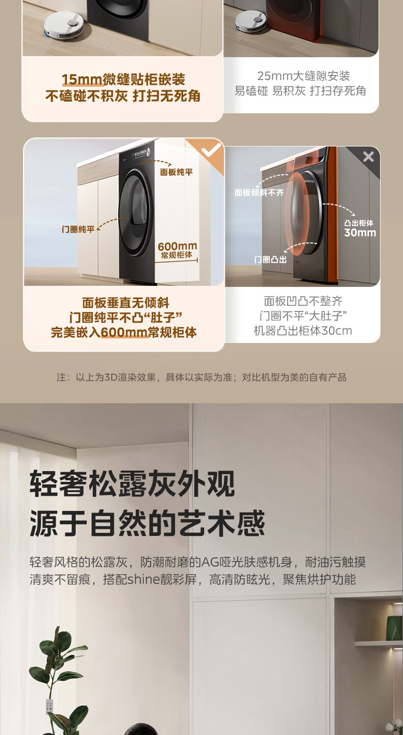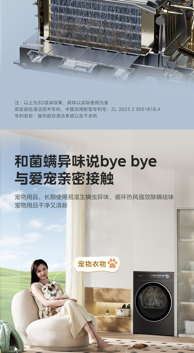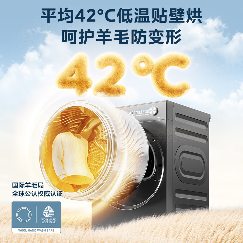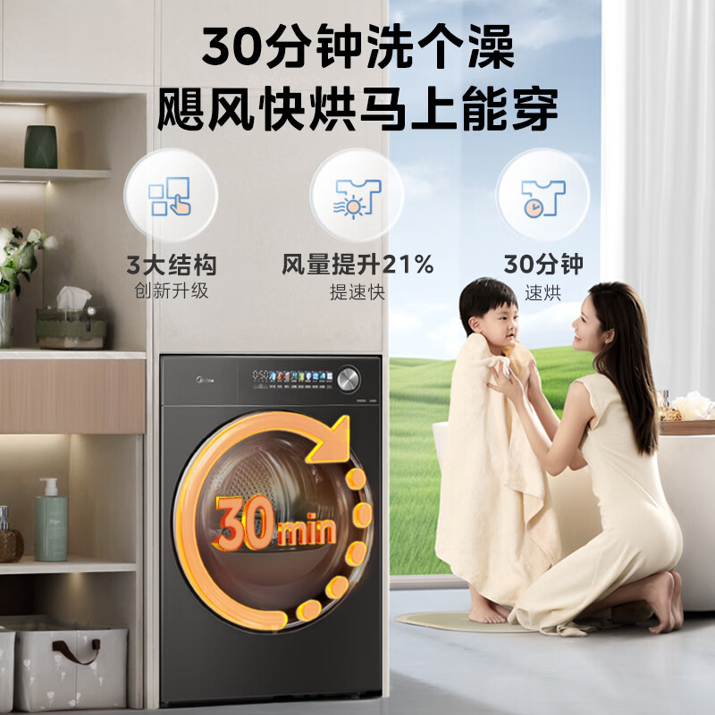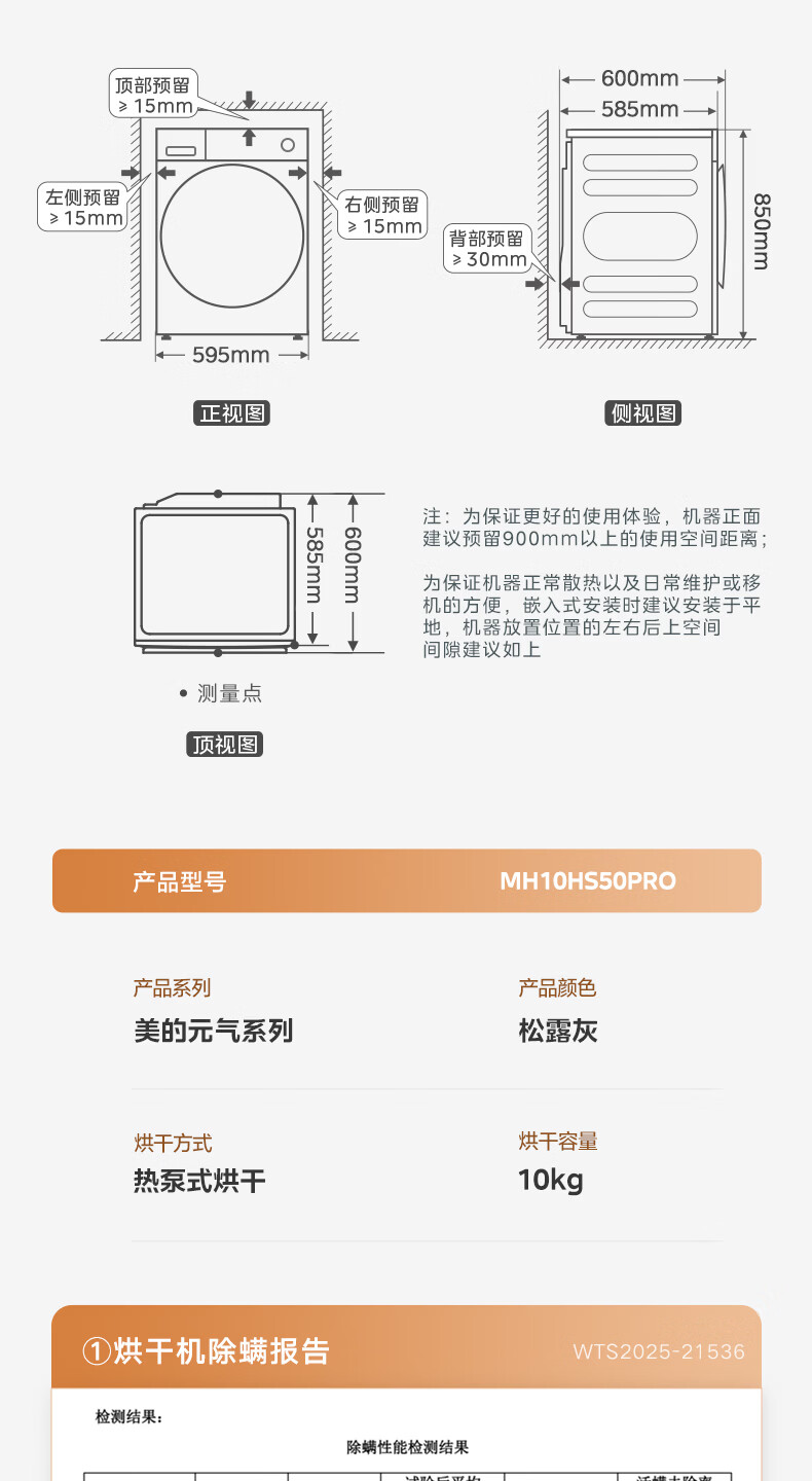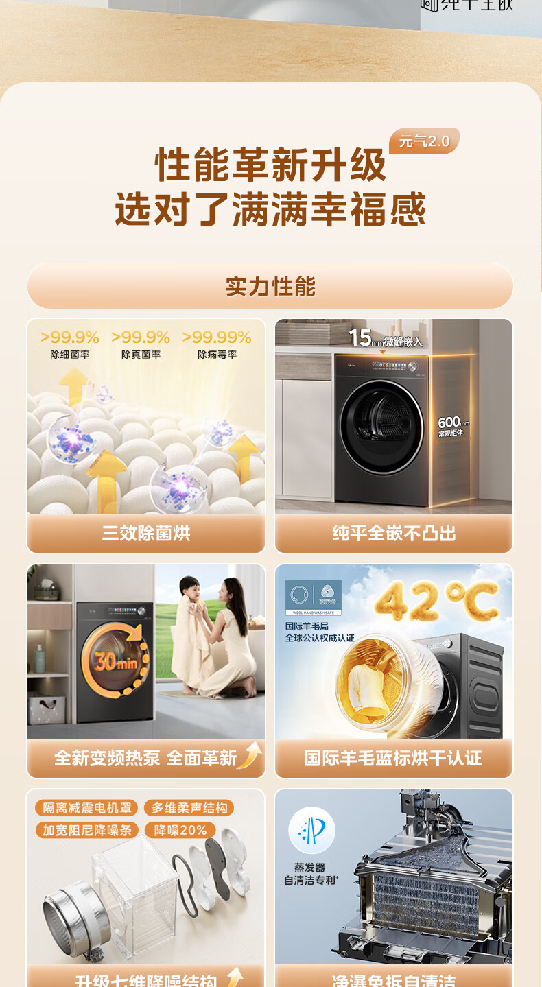 美的(Midea)10公斤热泵烘干机七维降噪智能判干AI正反转UV紫外线除螨变频电机纯平全嵌回南天 MH10HS50PRO